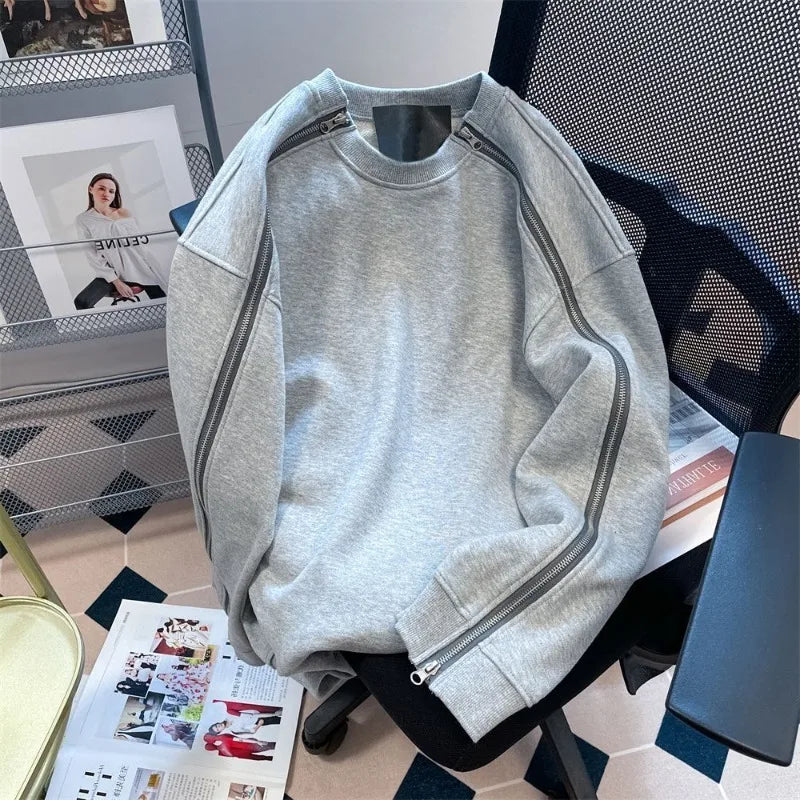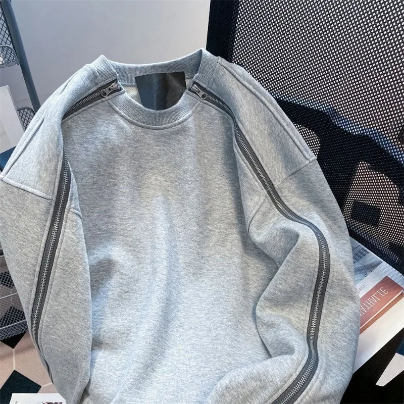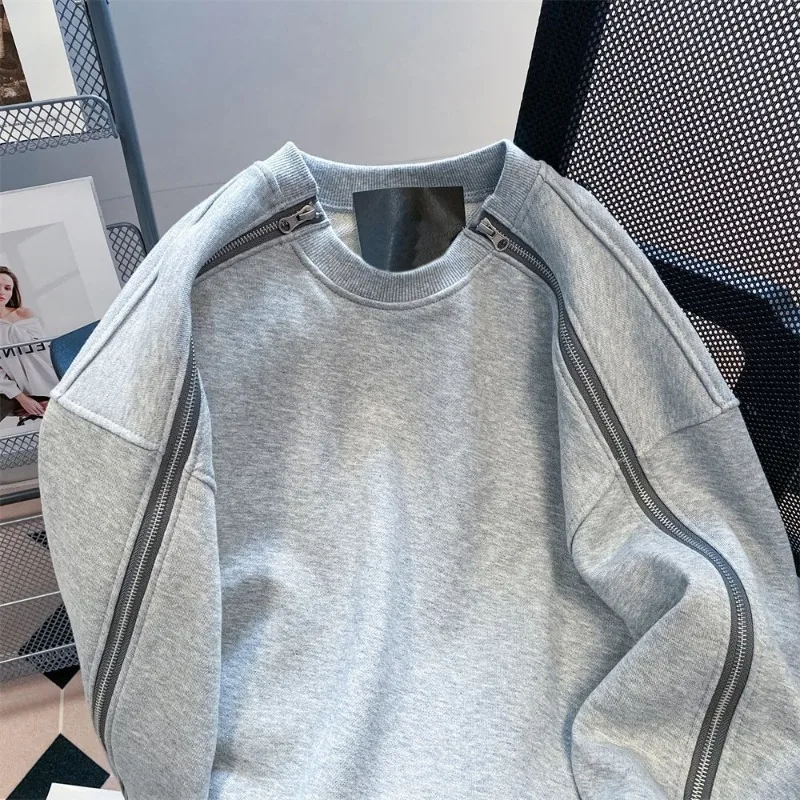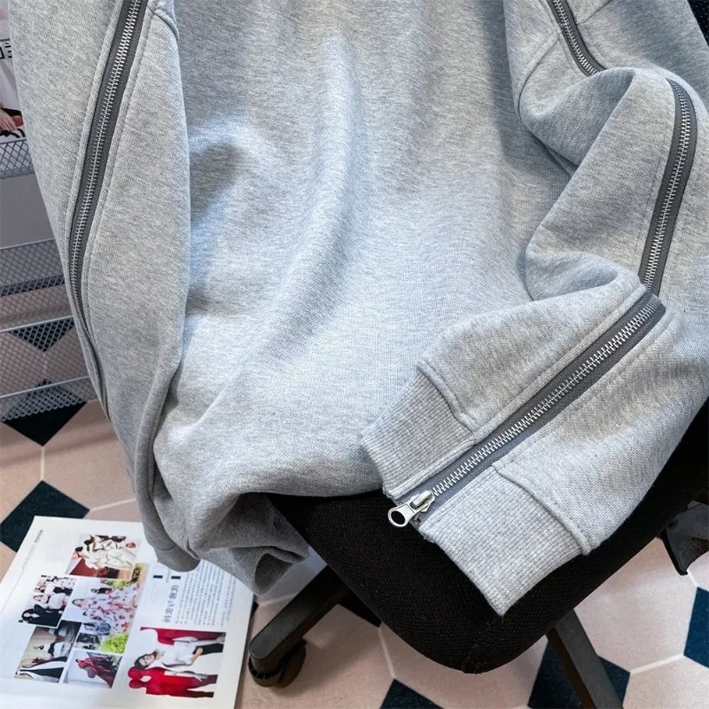 Aidase Grey Double Zipper Design Sweatshirt for Men in Autumn and Winter. Heavy Weight Firm Oversized Pullover Cleanfit Jacket