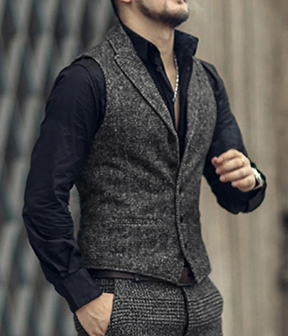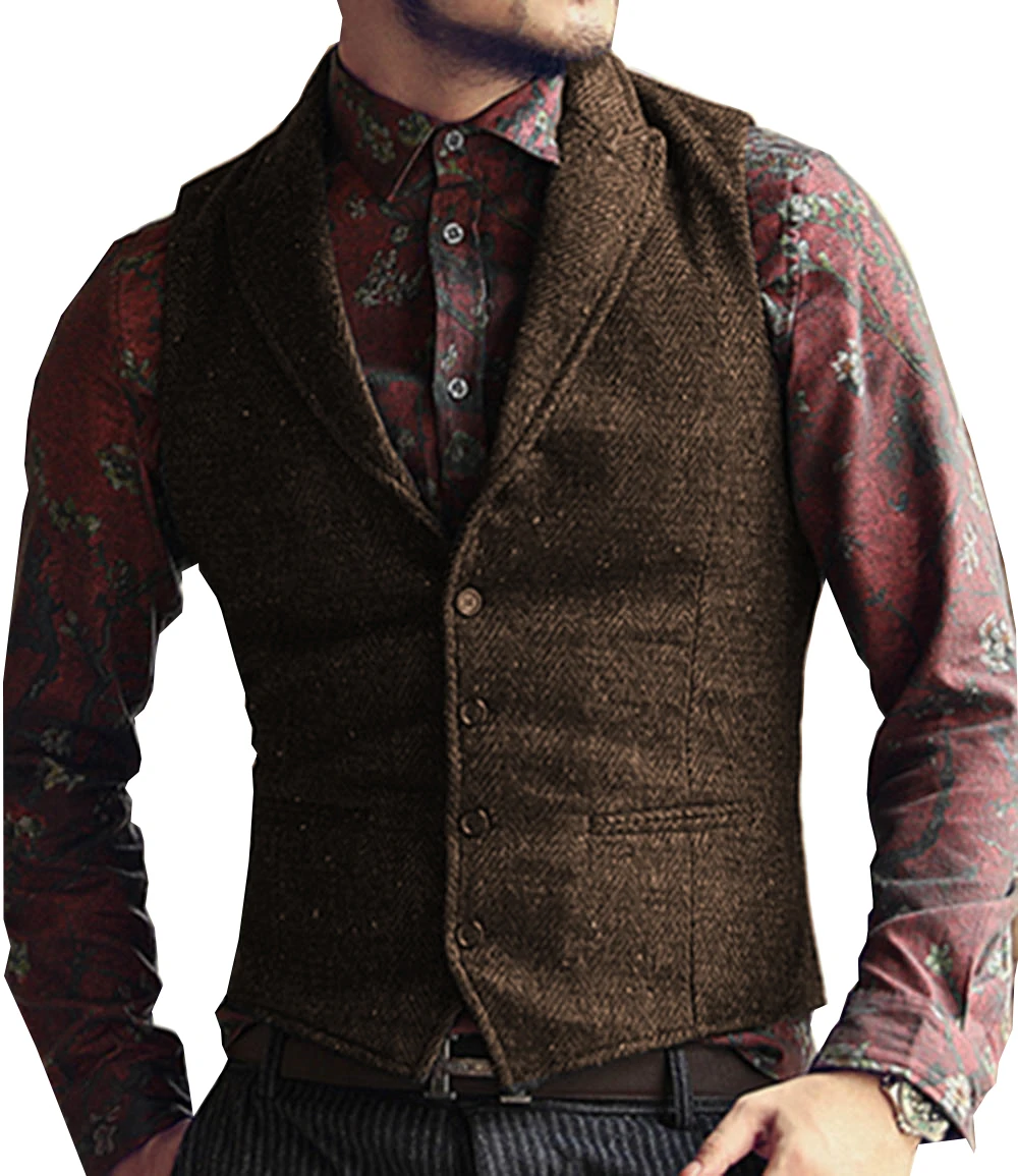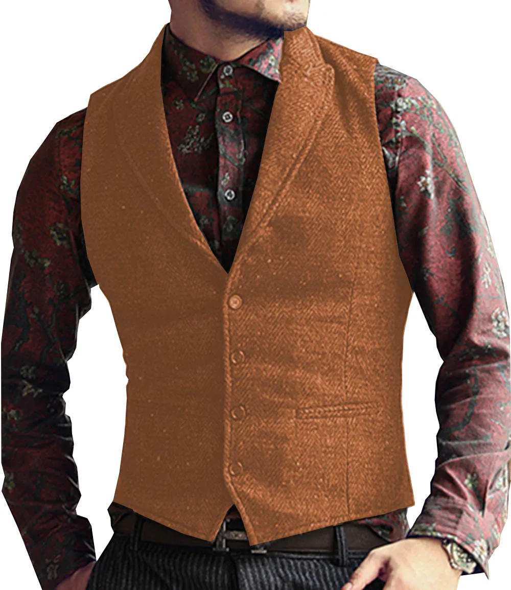 Grey Herringbone Men's Vests Lapel V Neck Wool Casual Formal Business Vest Slim Fit Gilet Waistcoat Groomman