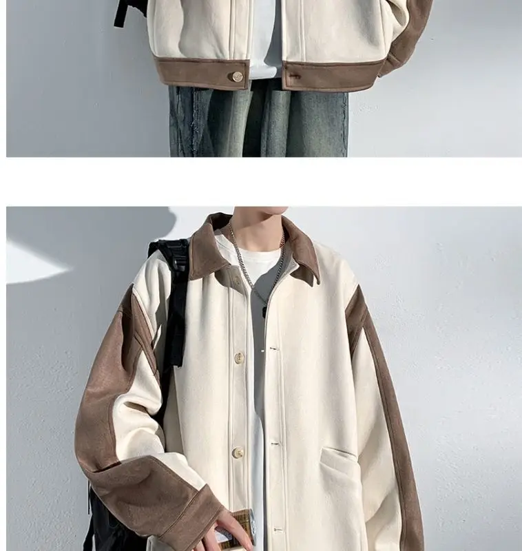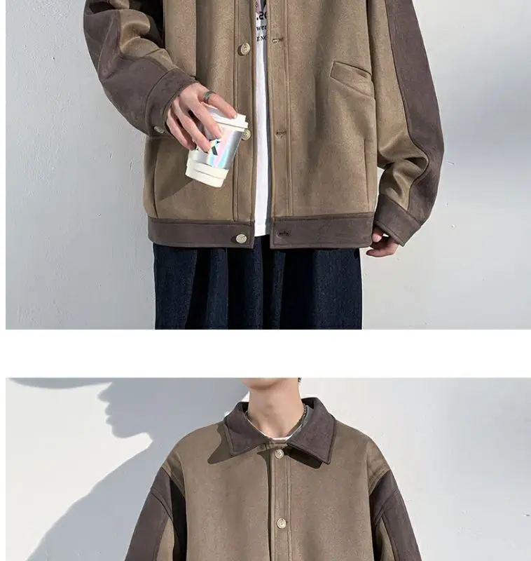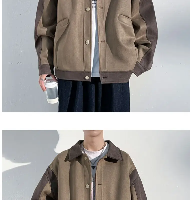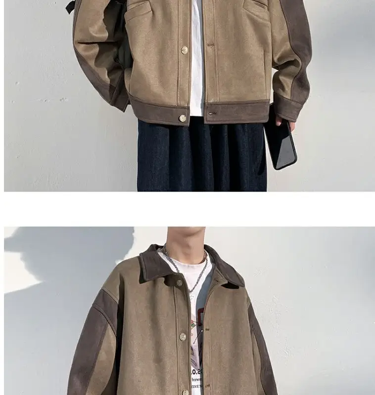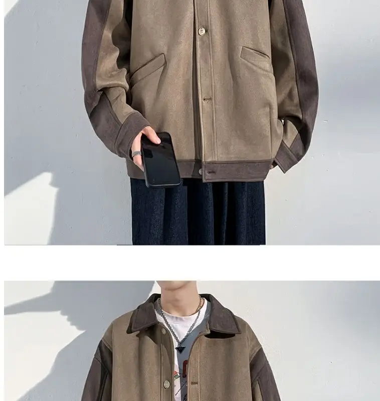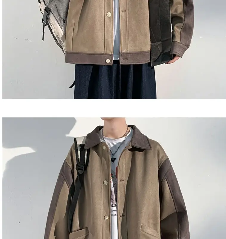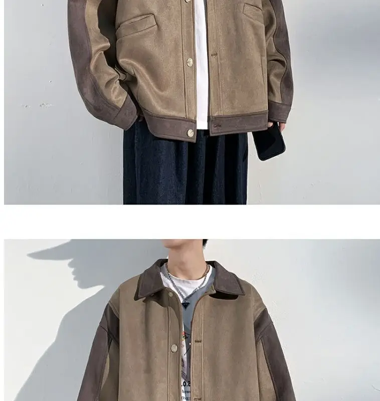 Aidase mens outfits Harajuku Loose Fitting Suede Jacket for Men Spring And Autumn Long Sleeve Fashion Oversized Cargo Jacket Trendy Outerwear