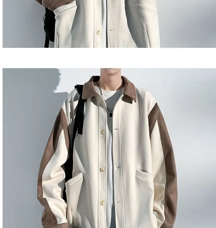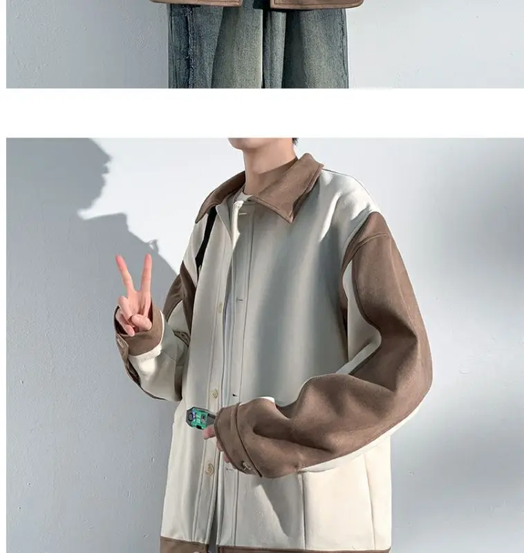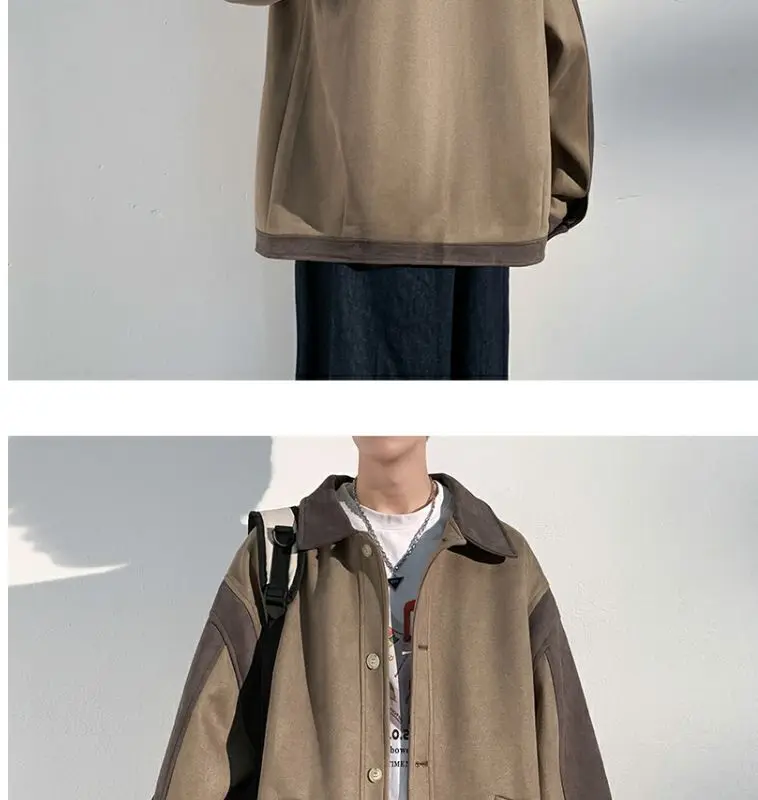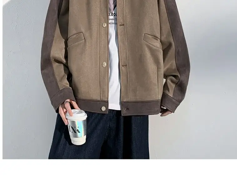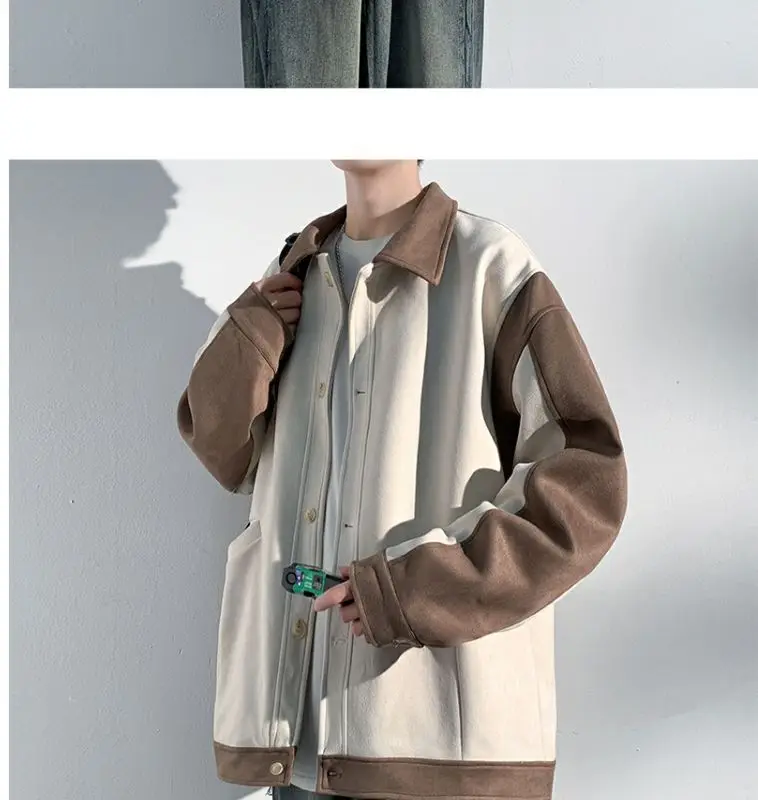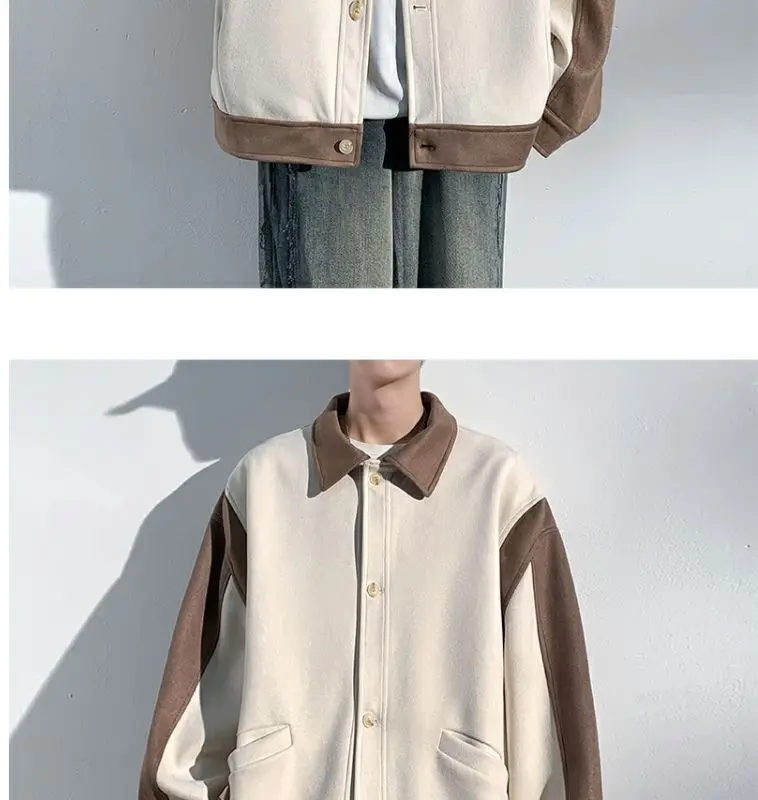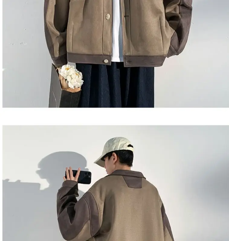 Aidase mens outfits Harajuku Loose Fitting Suede Jacket for Men Spring And Autumn Long Sleeve Fashion Oversized Cargo Jacket Trendy Outerwear