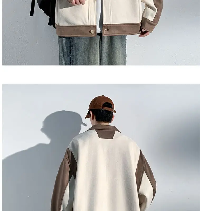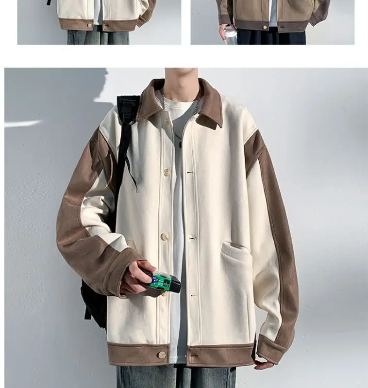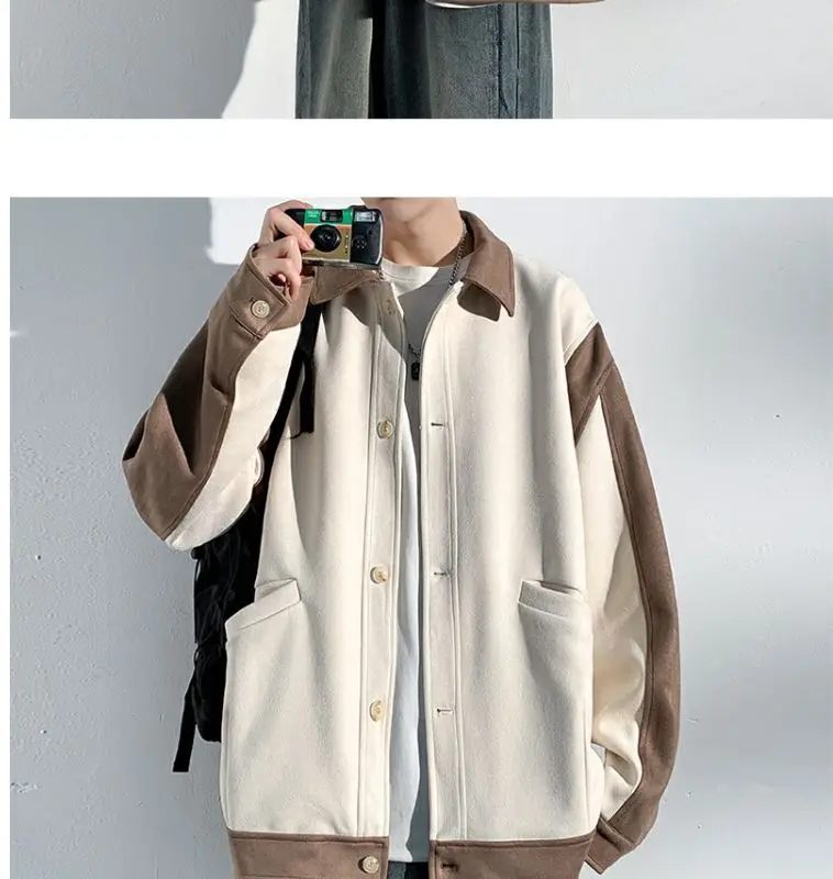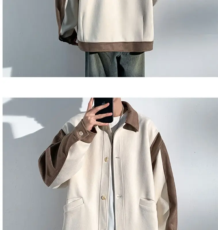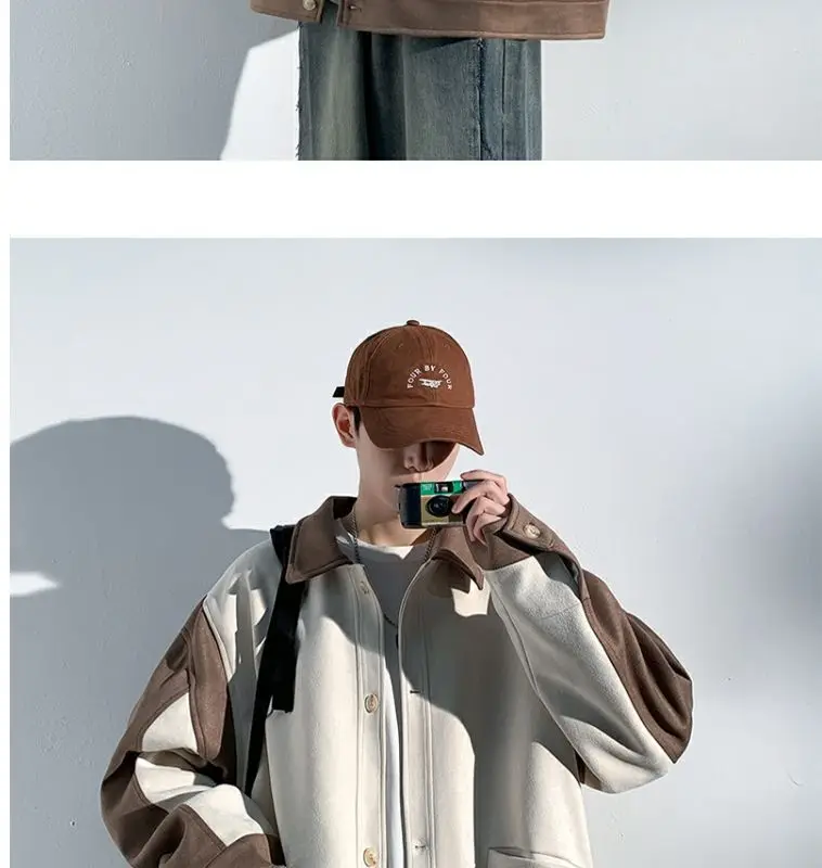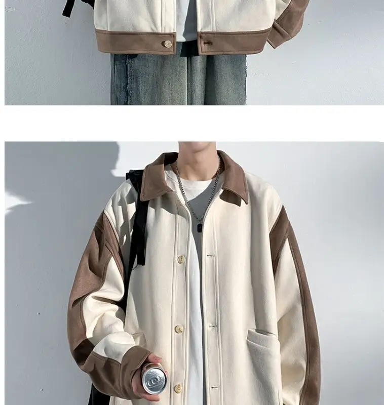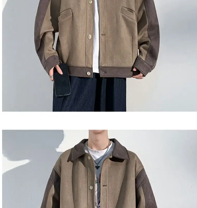 Aidase mens outfits Harajuku Loose Fitting Suede Jacket for Men Spring And Autumn Long Sleeve Fashion Oversized Cargo Jacket Trendy Outerwear