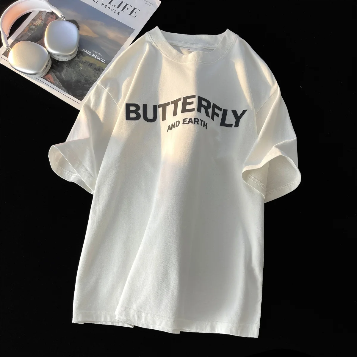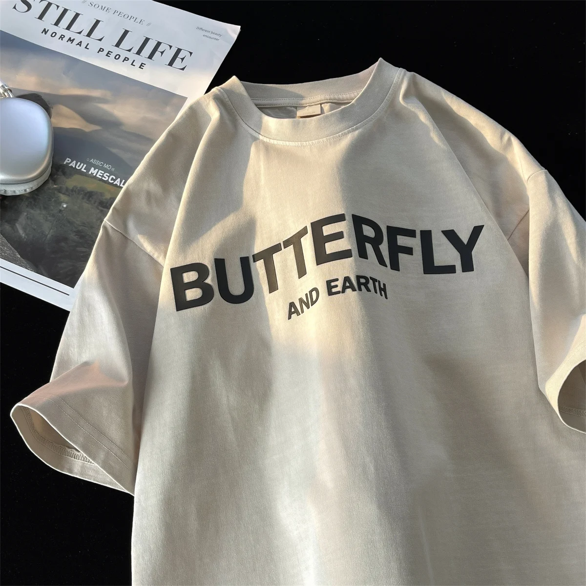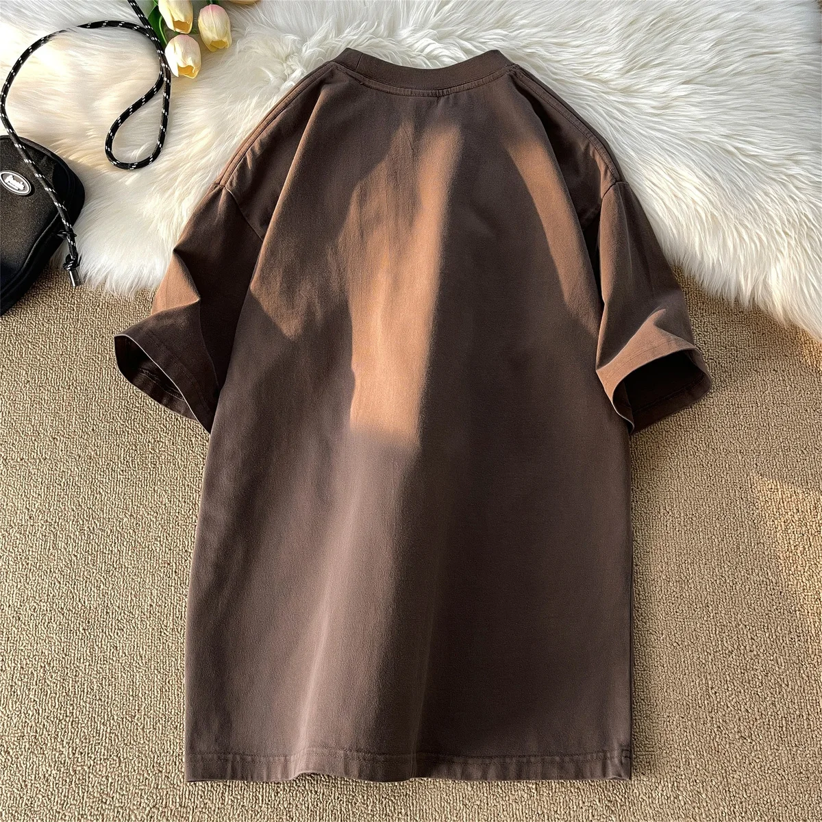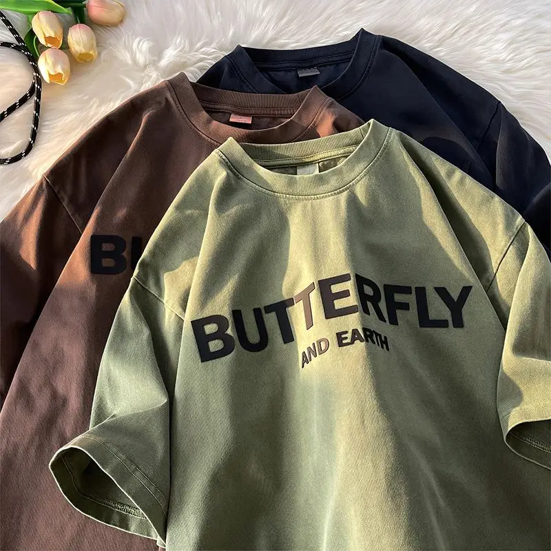 AIDASE - Heavy Cotton Short-sleeved Male T-shirt American Retro Casual Top Half-sleeve Oversized Tees Versatile O-neck Letter Print Shirt