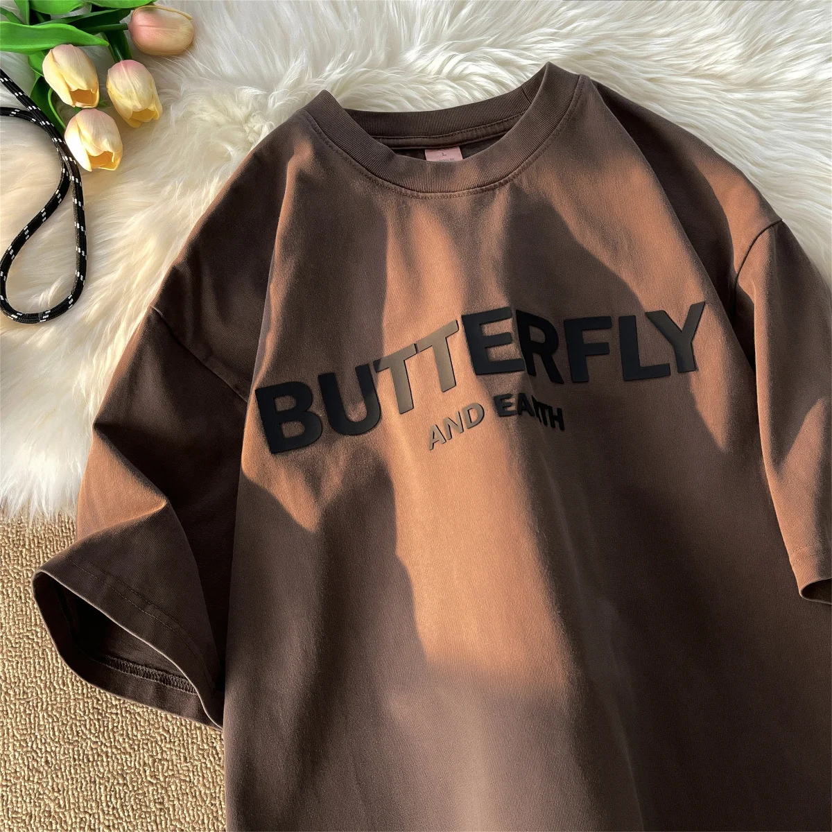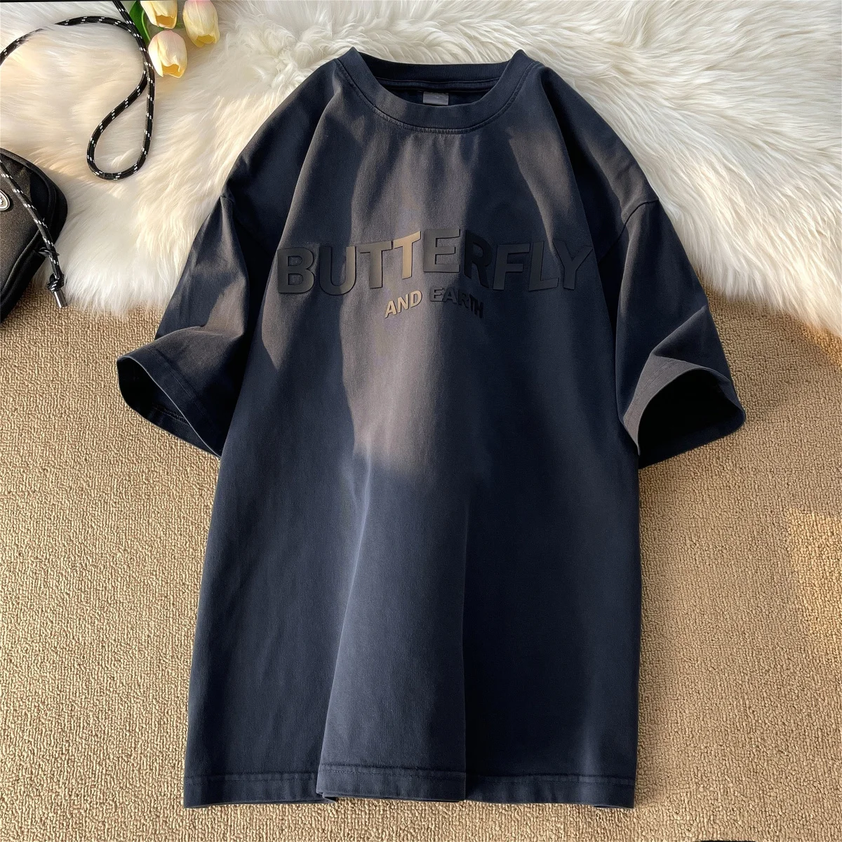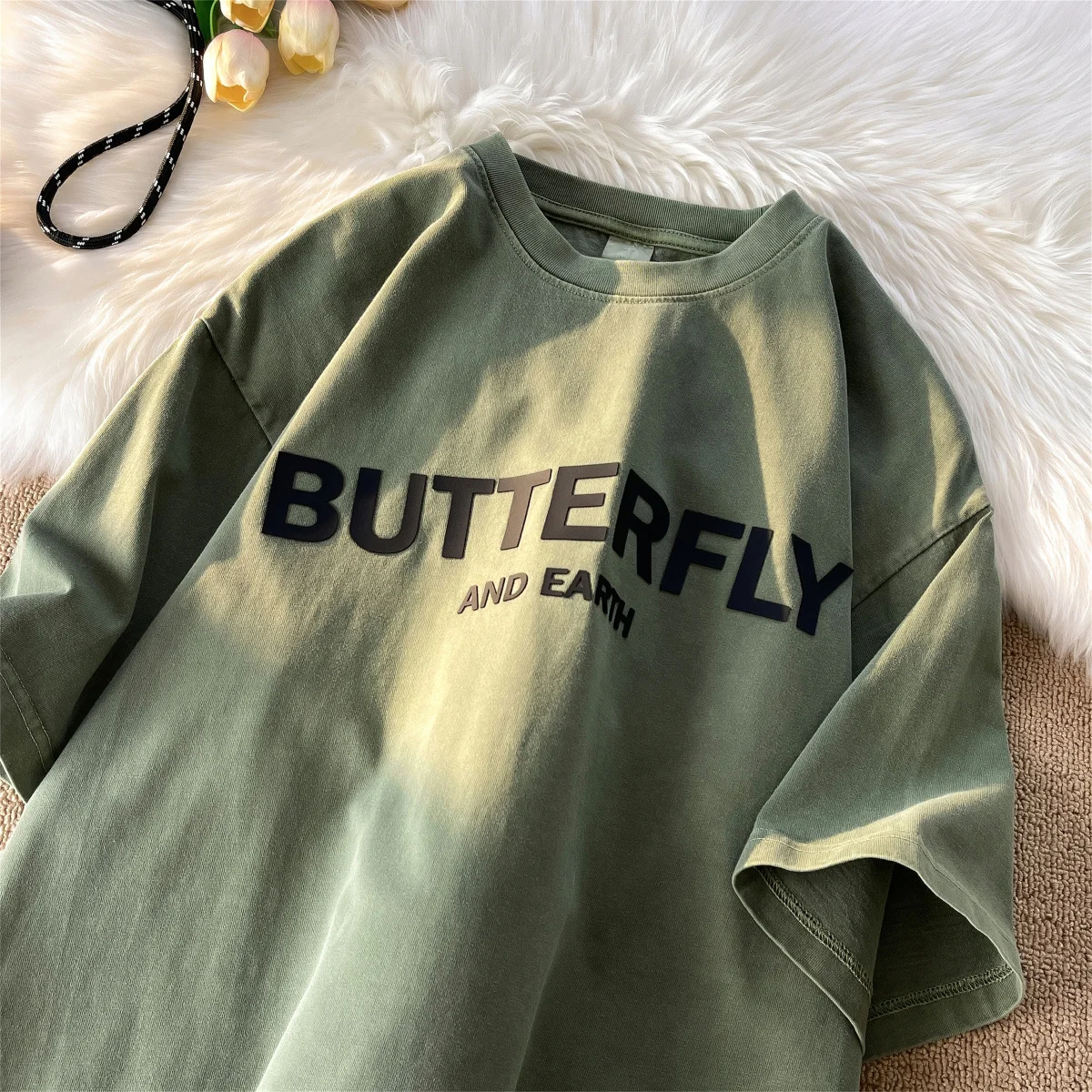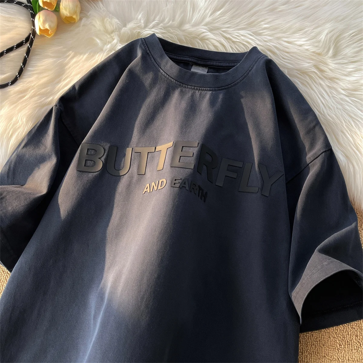 AIDASE - Heavy Cotton Short-sleeved Male T-shirt American Retro Casual Top Half-sleeve Oversized Tees Versatile O-neck Letter Print Shirt