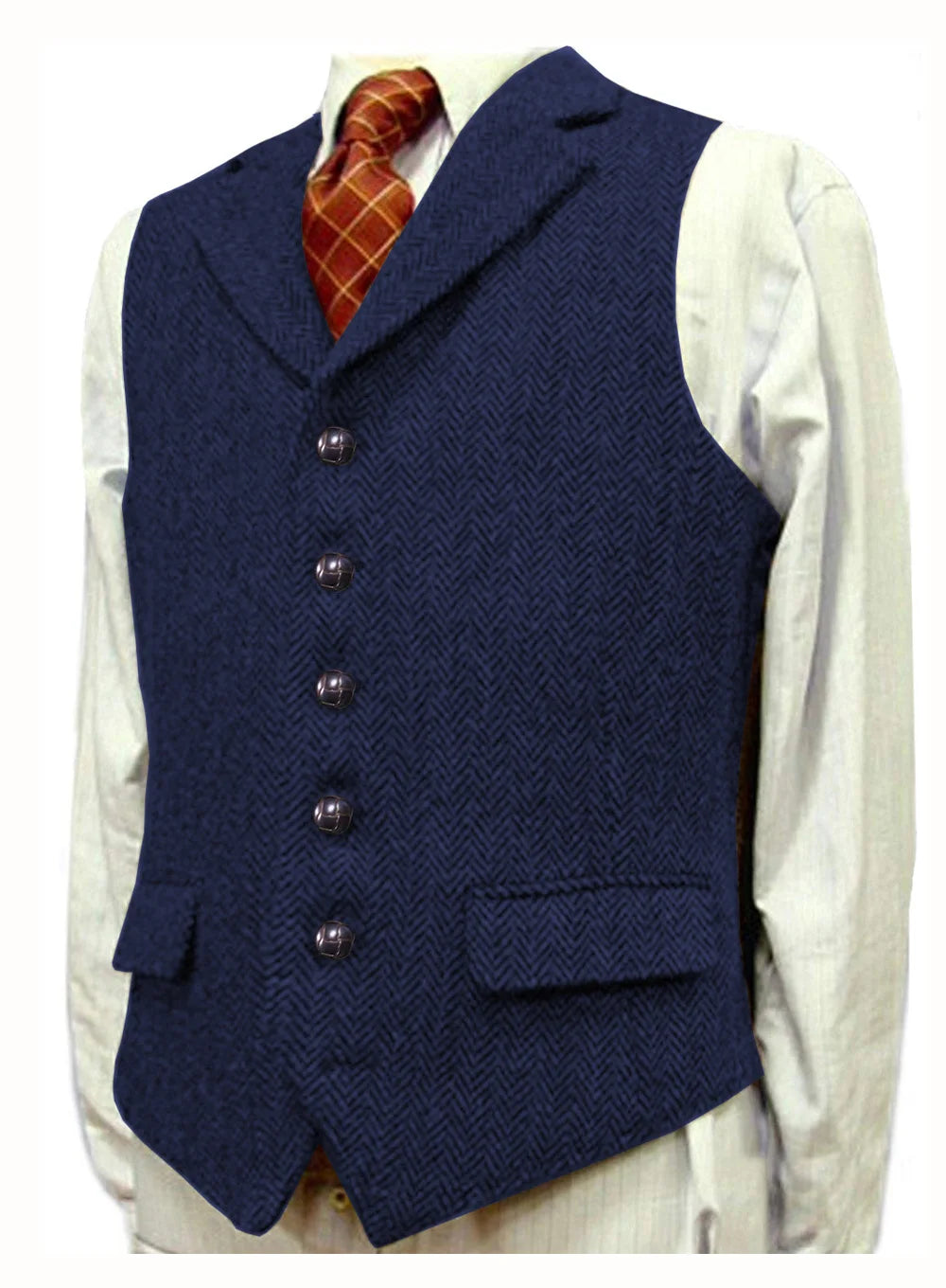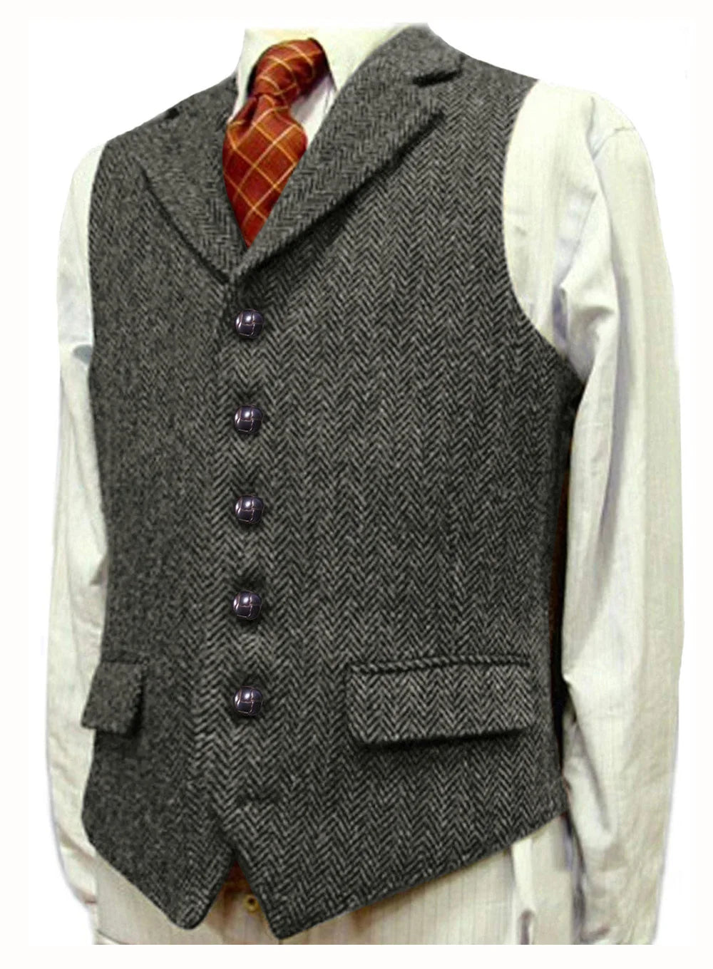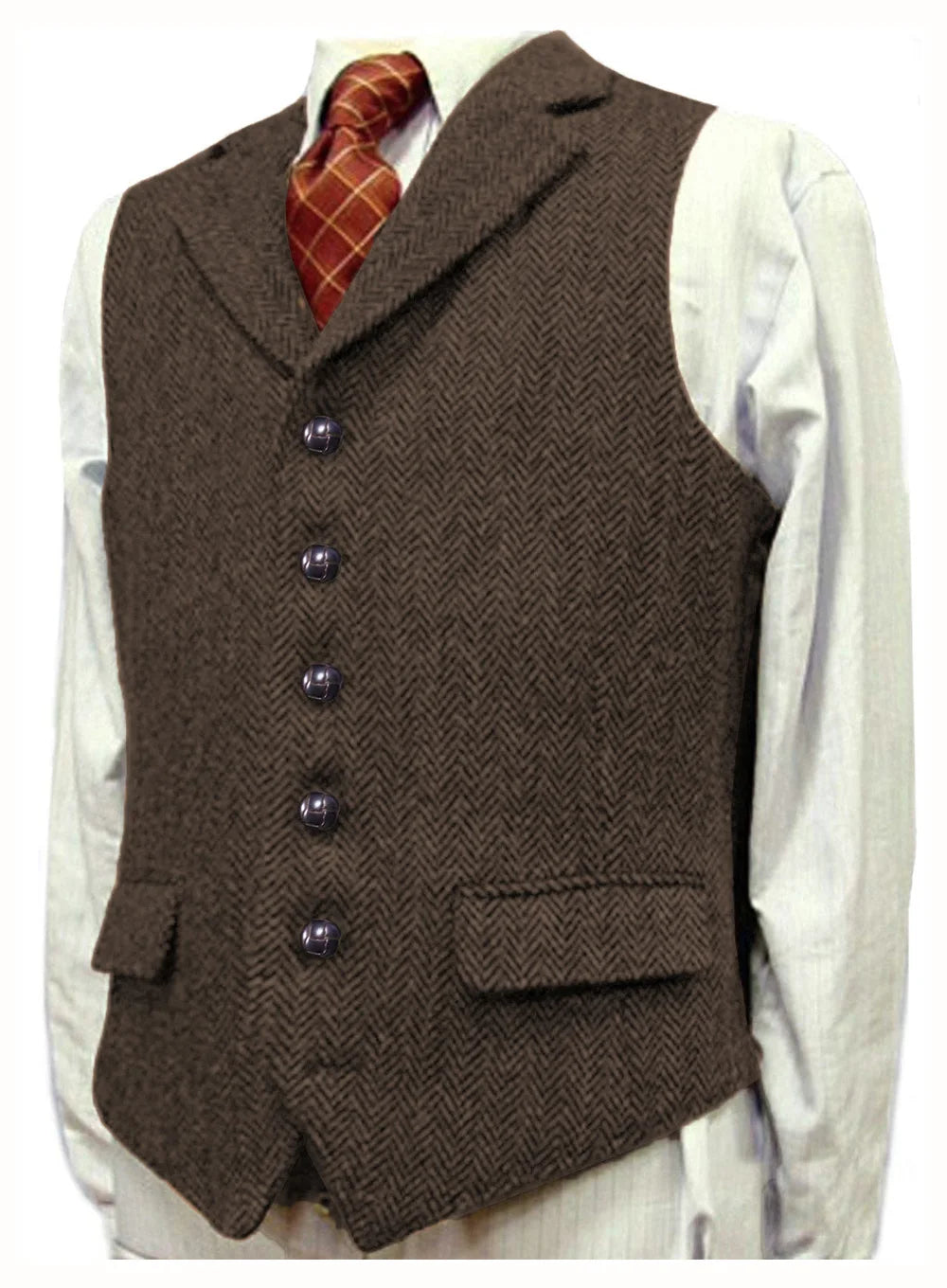 Aidase Herringbone Men's Vests V Neck Boutique Herringbone Wool Tweed Slim Fit Waistcoat Casual Formal Business Groomman for Wedding