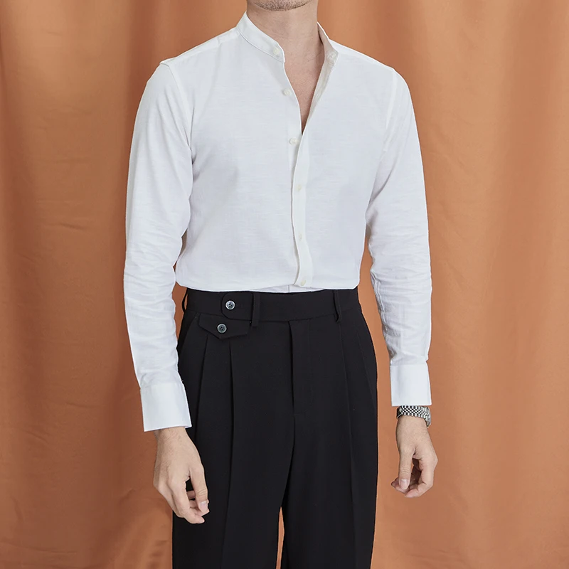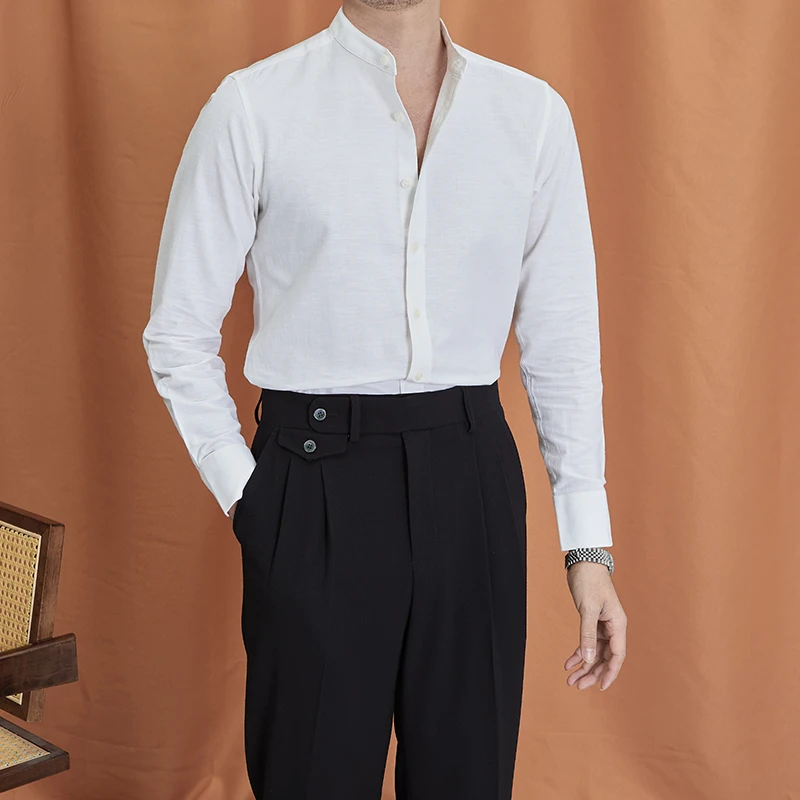 Aidase High Quality Cotton Linen Stand Collar Shirt Men Long Sleeve Blue Green White Breathable Shirt Business British Solid DressTop