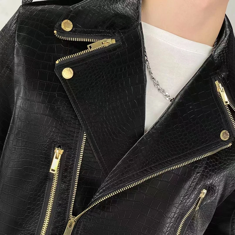High Quality European Men Slim Jacket Fall Winter Men Lapel Coat Male Punk Faux Leather Jacket For Men Motorcycle Clothes