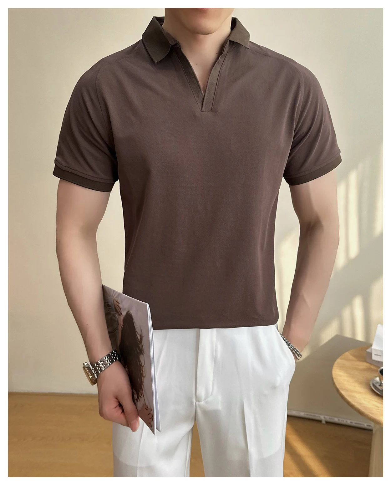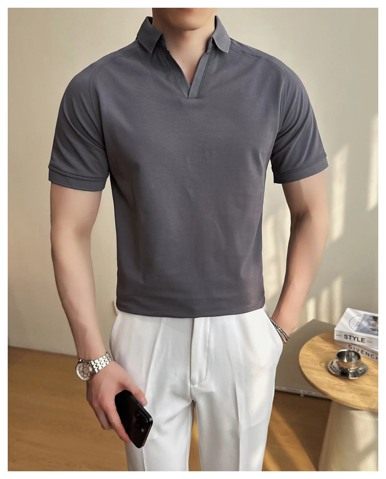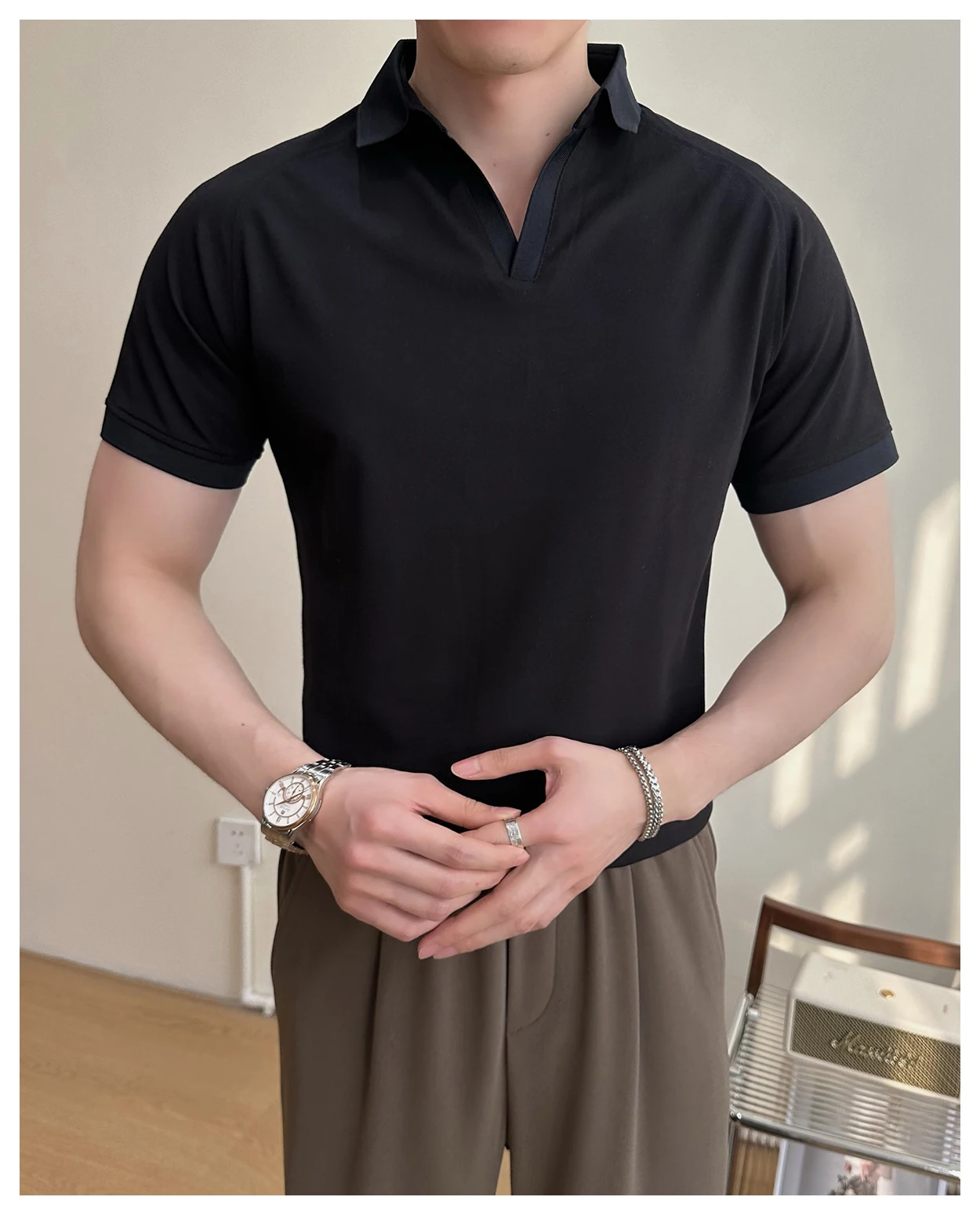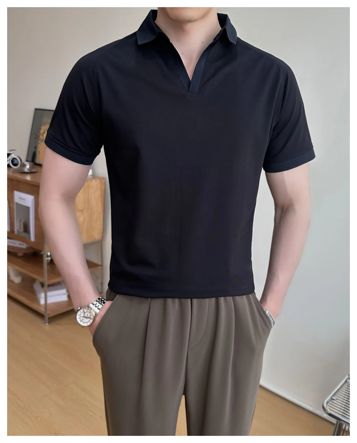 AIDASE  -  High-quality Solid Color V-neck Men's Breathable Moisture-wicking Polo Shirt, Stretchable T-shirt for Casual Business Wear M-6XL