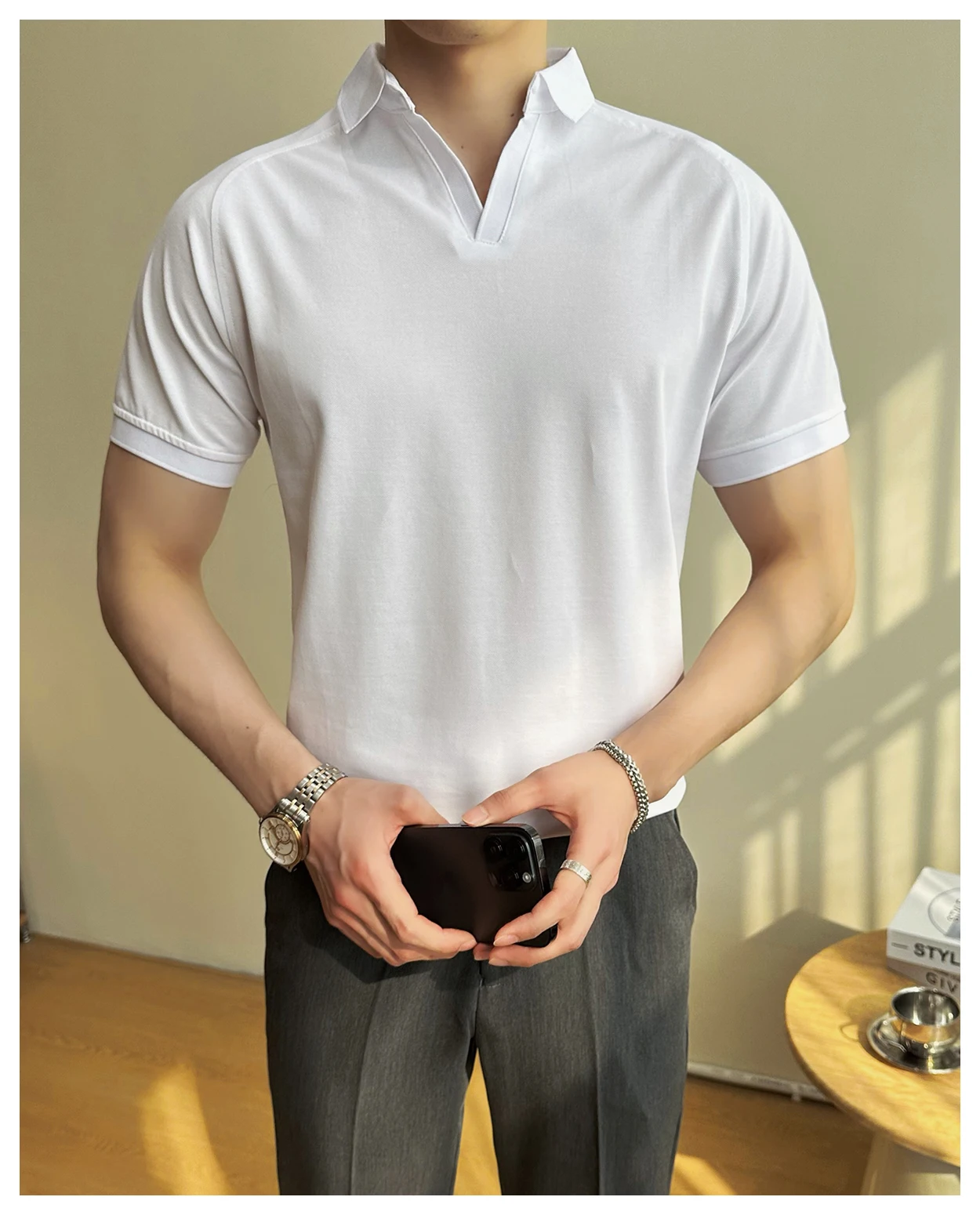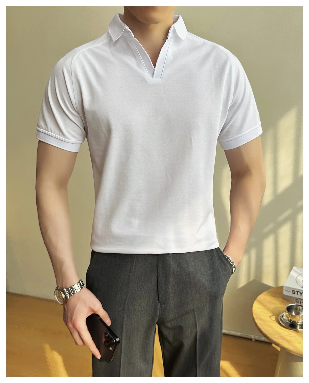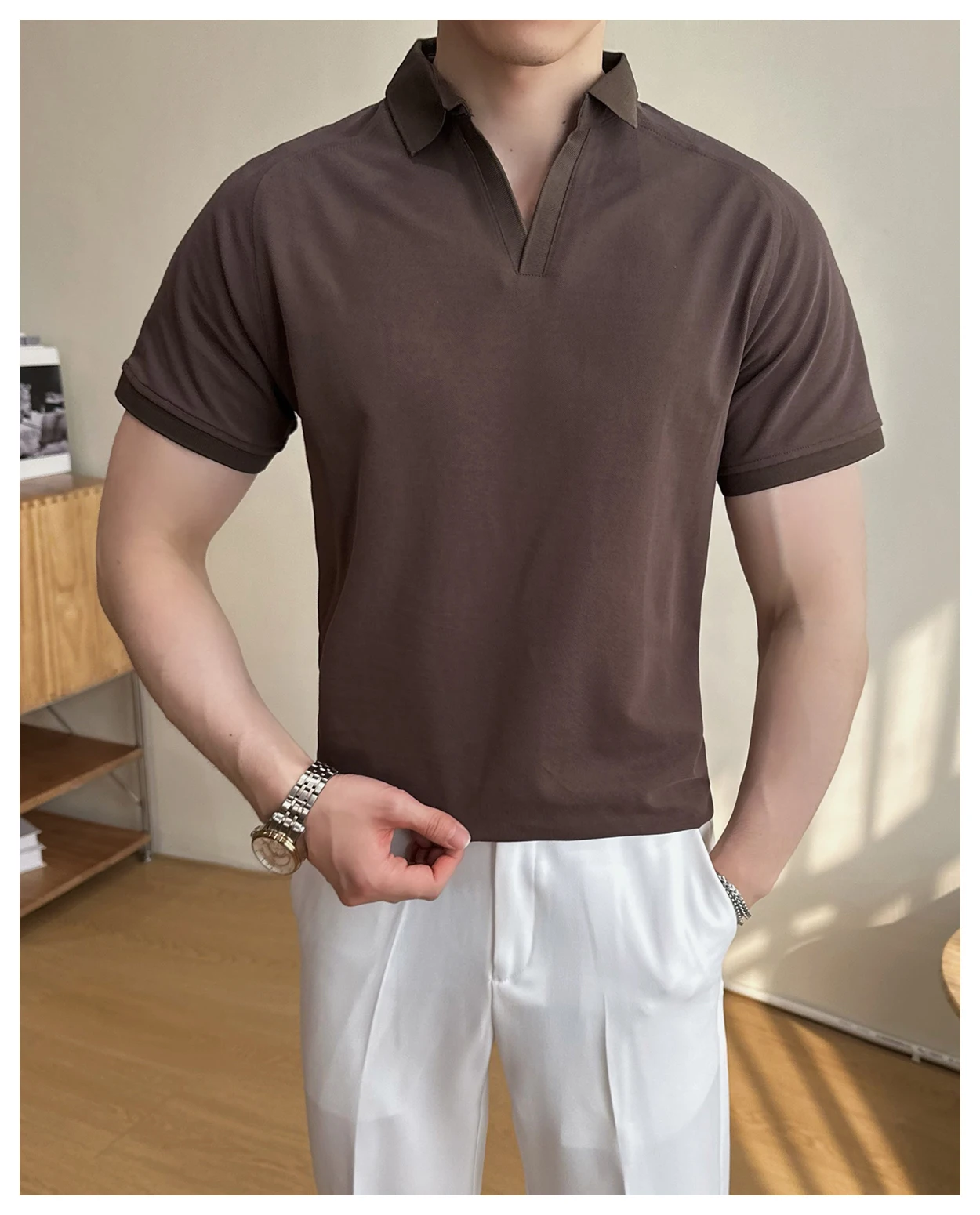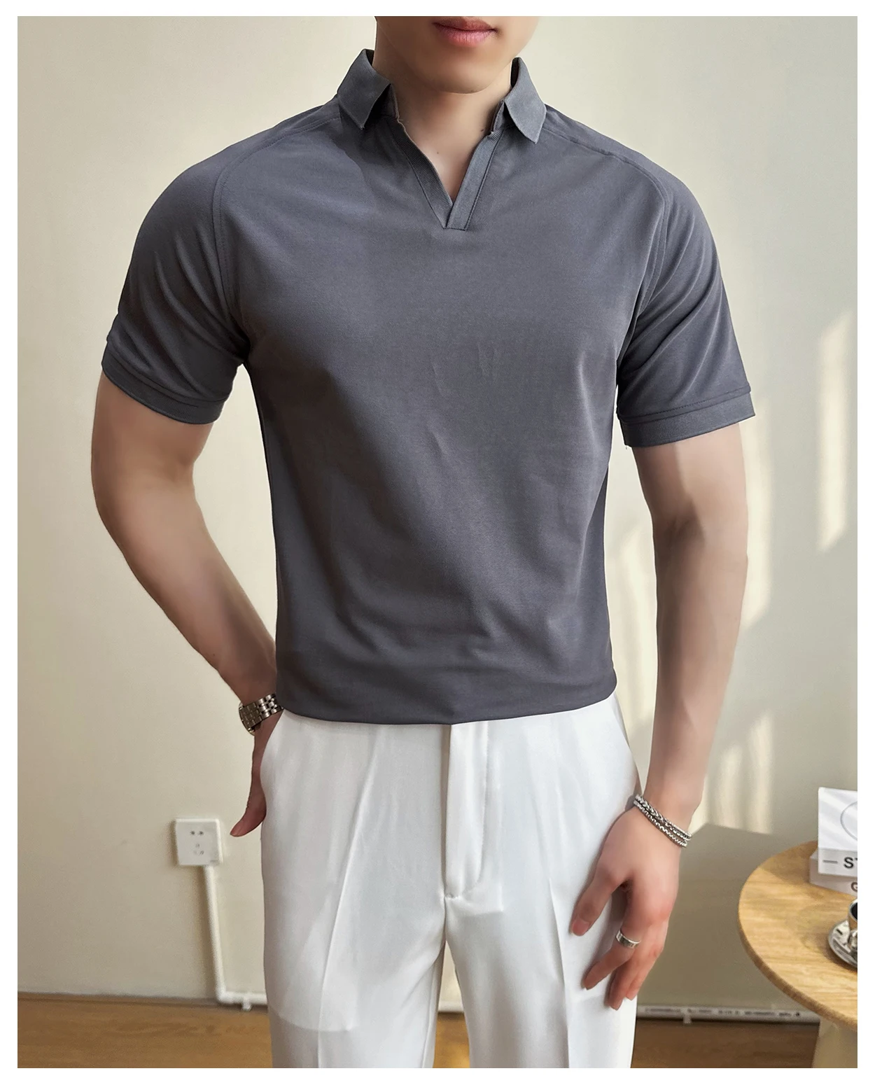 AIDASE  -  High-quality Solid Color V-neck Men's Breathable Moisture-wicking Polo Shirt, Stretchable T-shirt for Casual Business Wear M-6XL