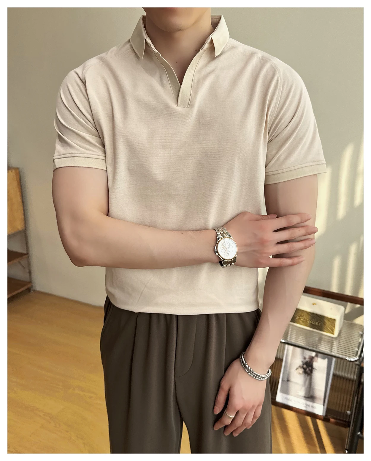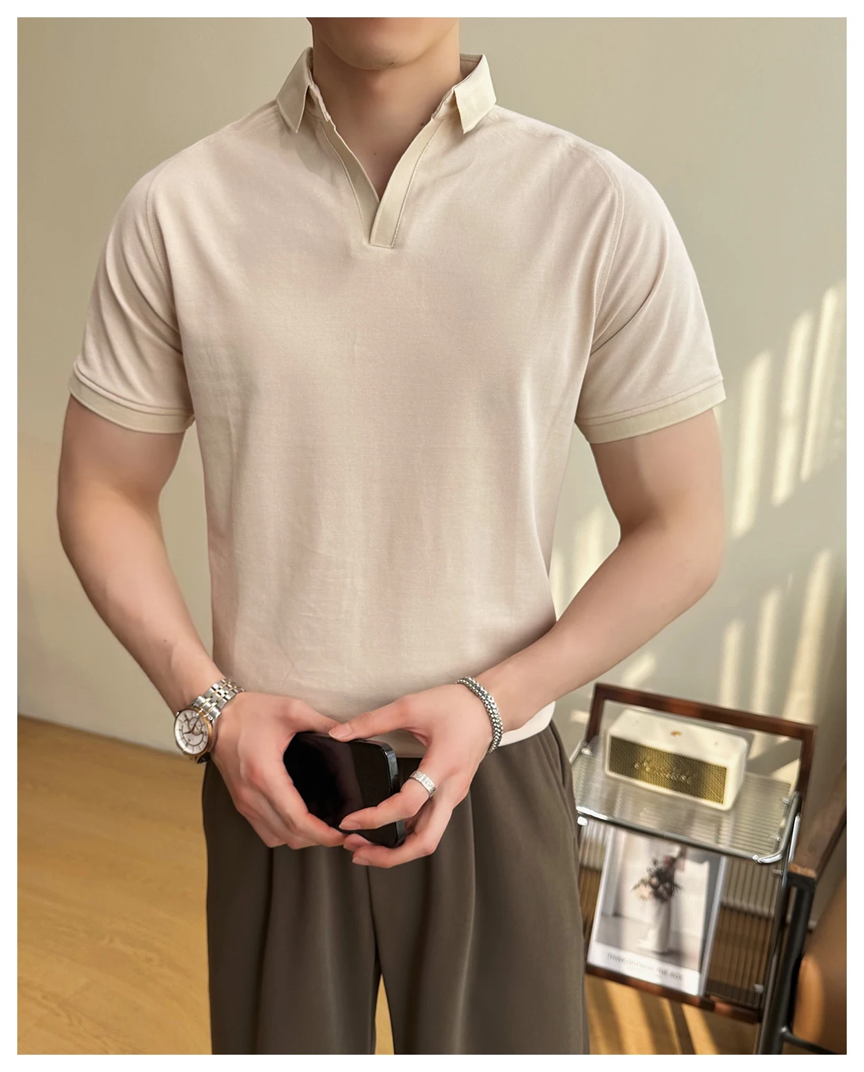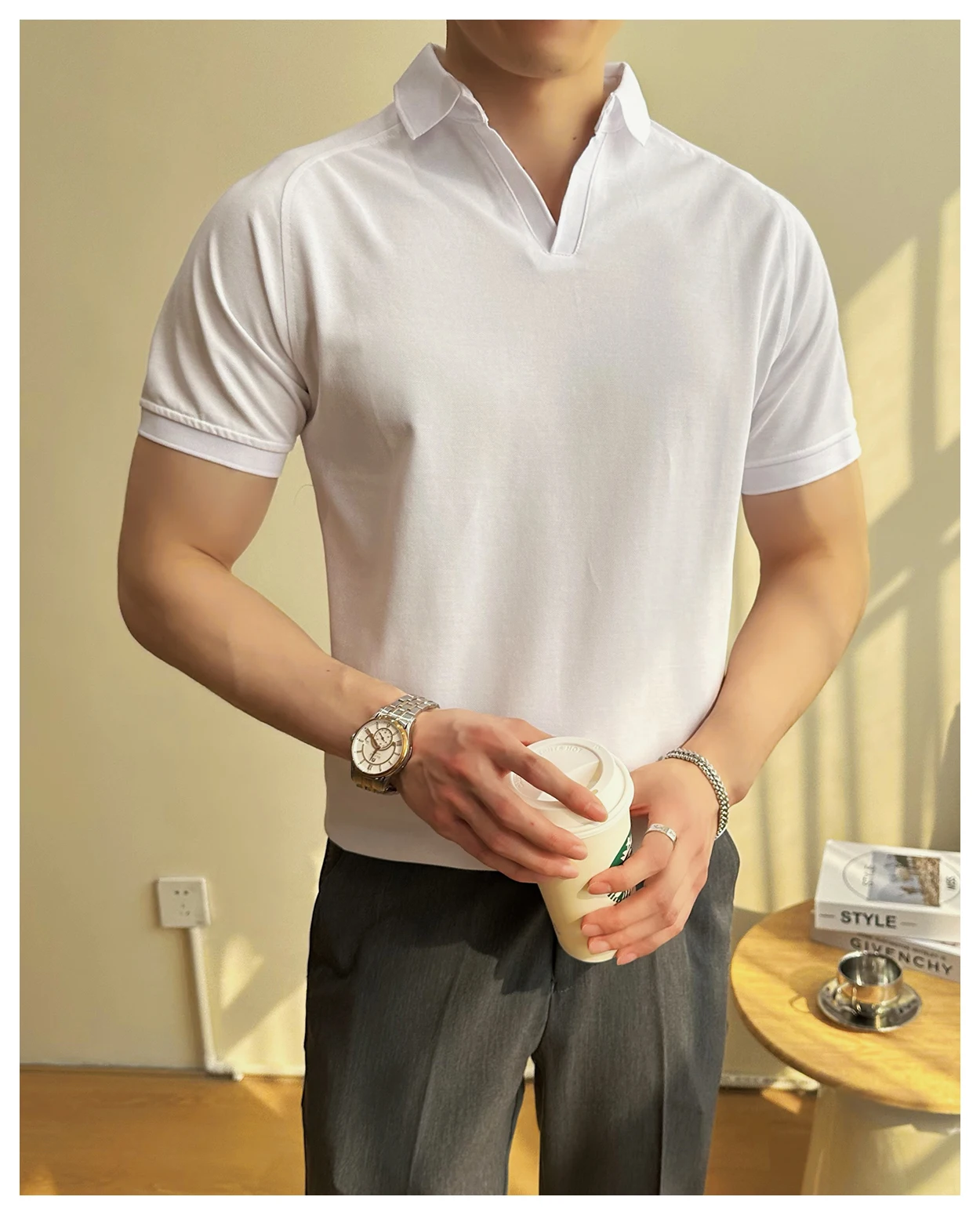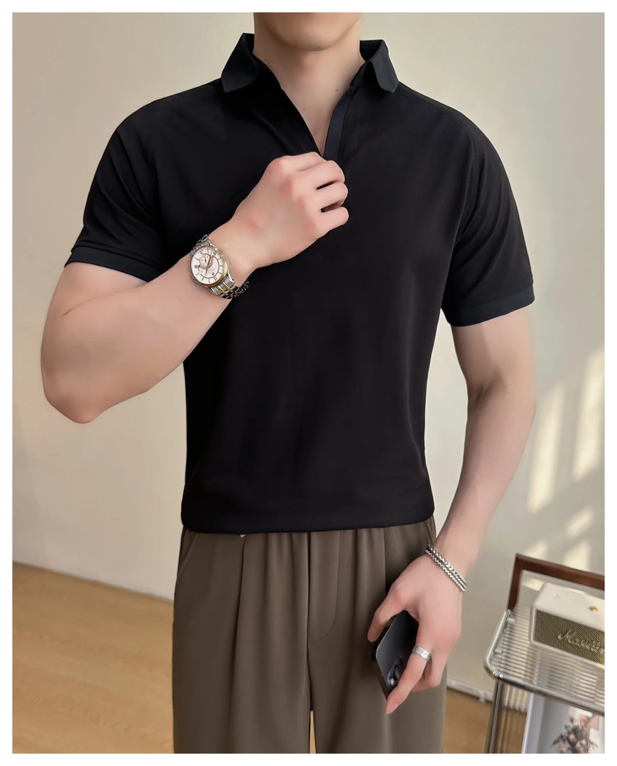 AIDASE  -  High-quality Solid Color V-neck Men's Breathable Moisture-wicking Polo Shirt, Stretchable T-shirt for Casual Business Wear M-6XL