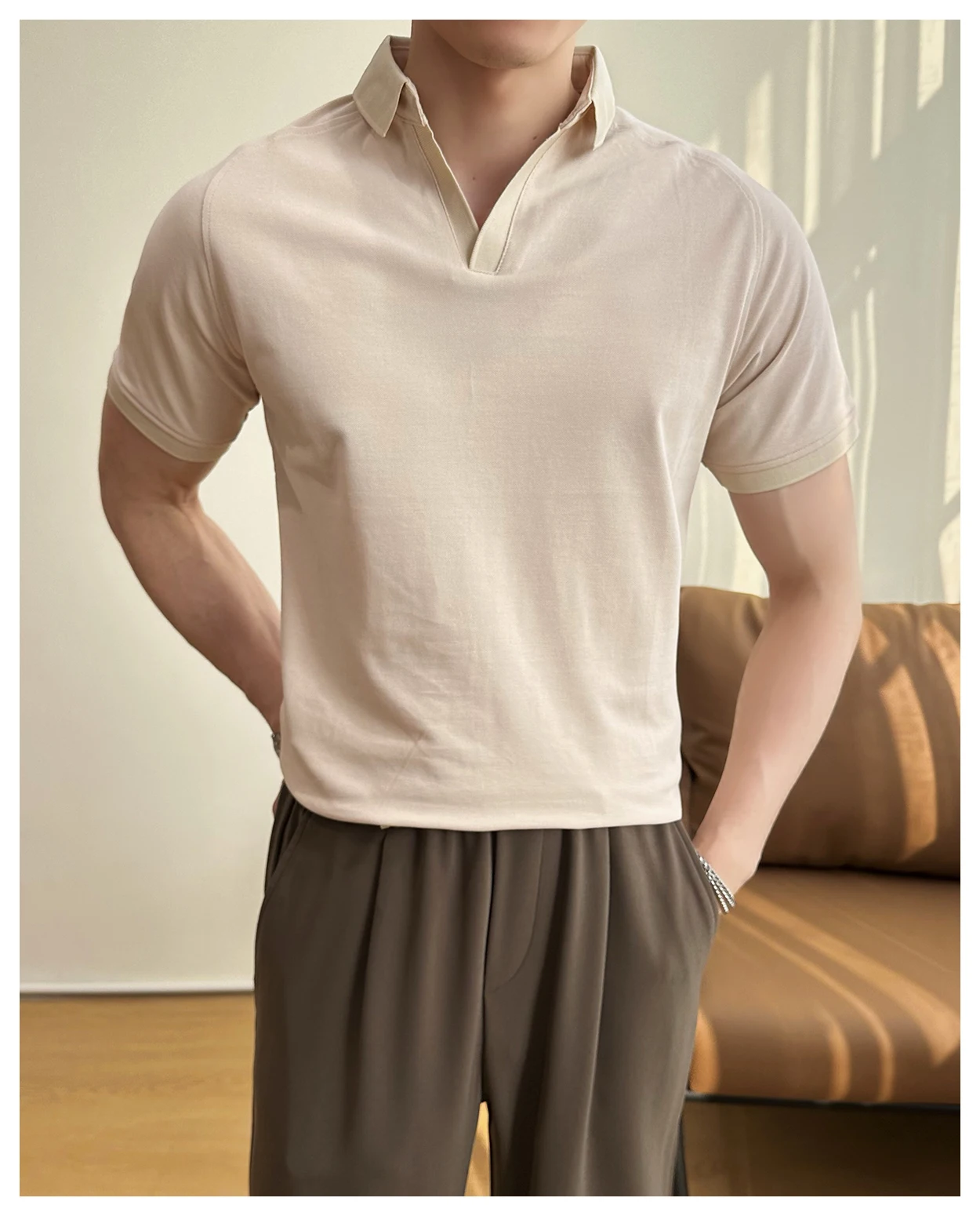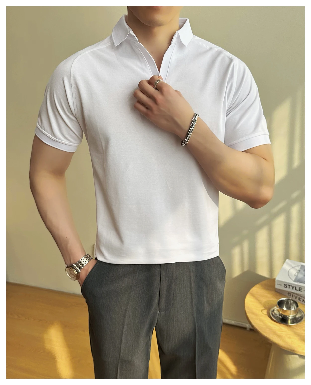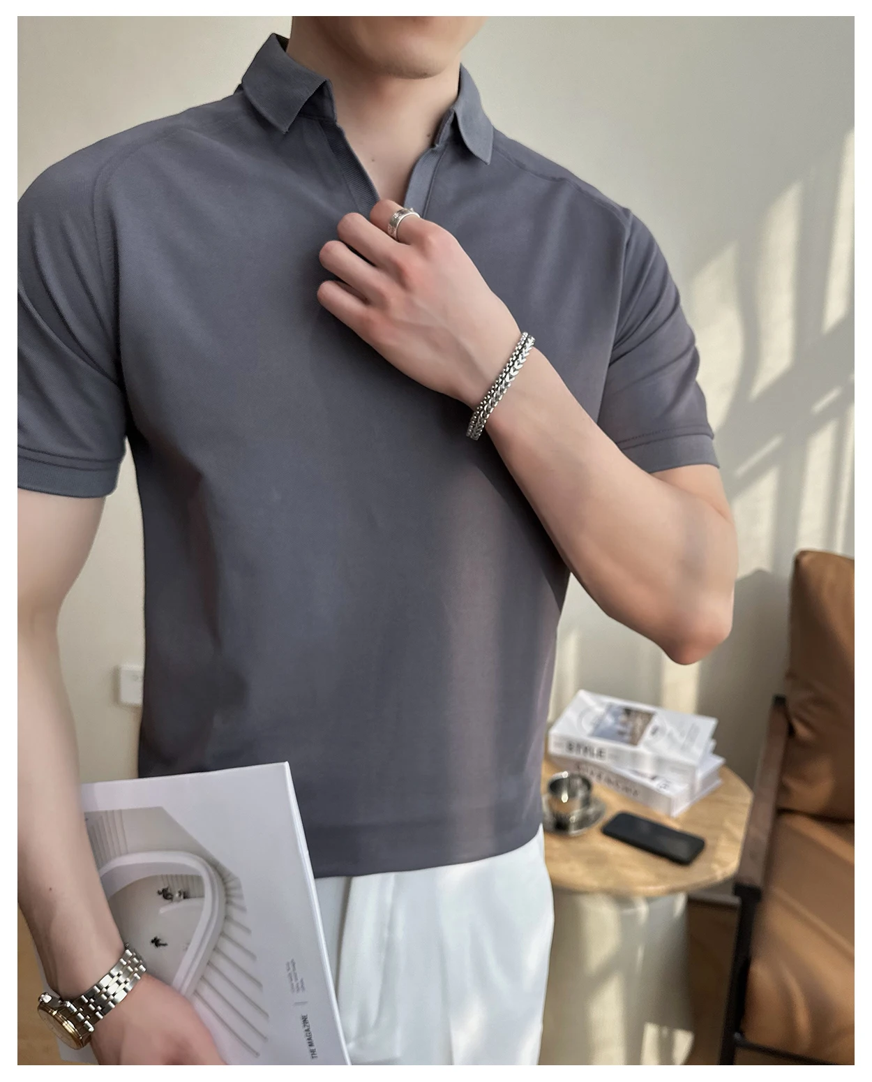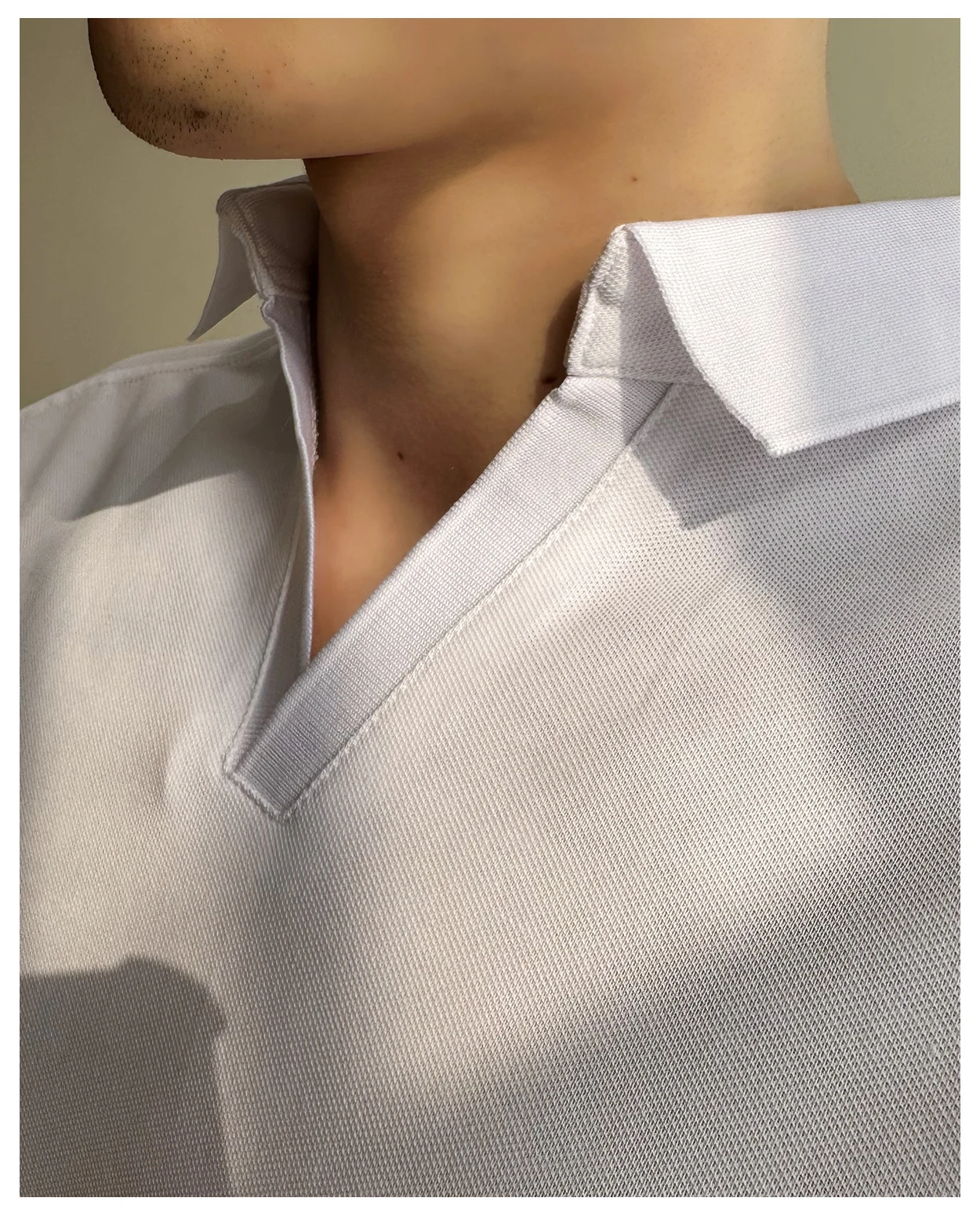 AIDASE  -  High-quality Solid Color V-neck Men's Breathable Moisture-wicking Polo Shirt, Stretchable T-shirt for Casual Business Wear M-6XL