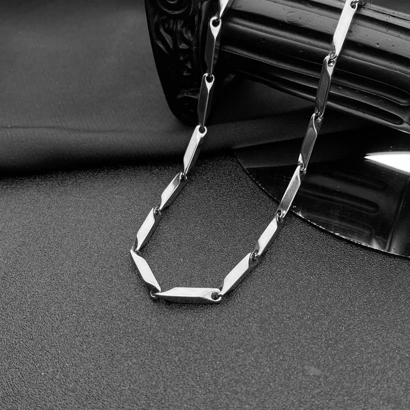 AIDASE - Hip Hop Unisex Bamboo Chain Women Necklace Choker Stainless Steel Herringbone Silver Color Chain Necklace For Women Jewelry