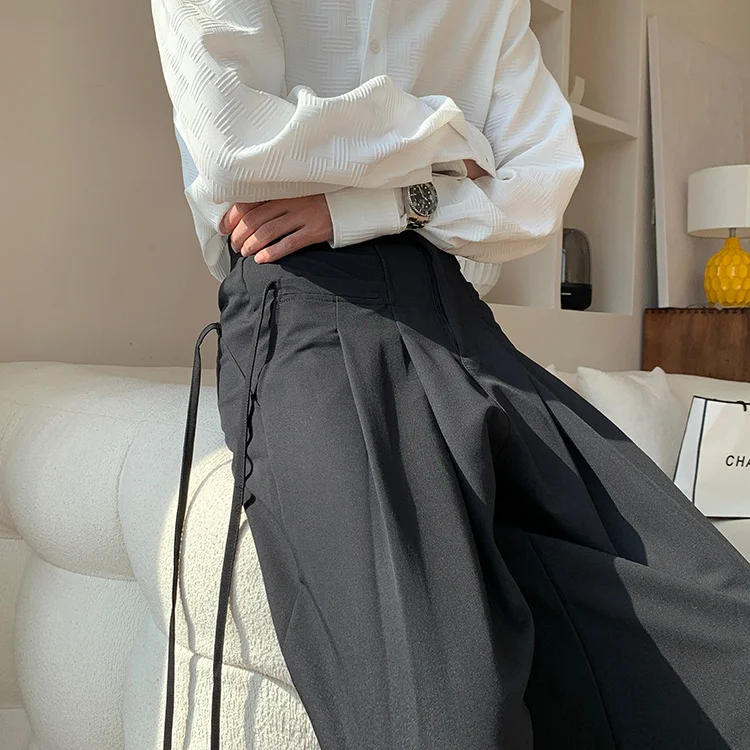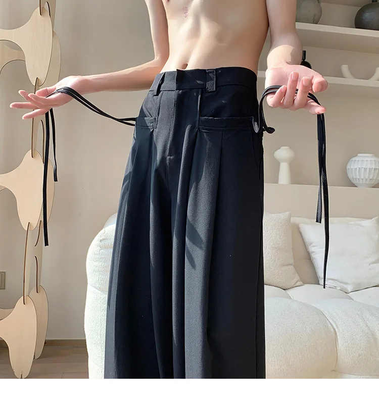 AIDASE - Japanese Ruffian High School Pants Men Niche Double Rope Naples Trousers Yamamoto Straight Loose Drop Feeling Wide Leg Pants