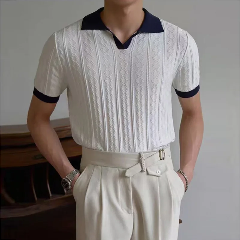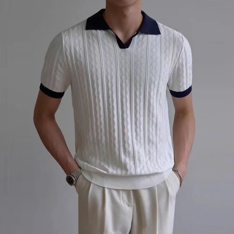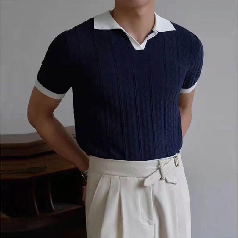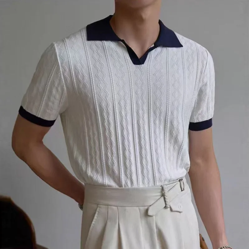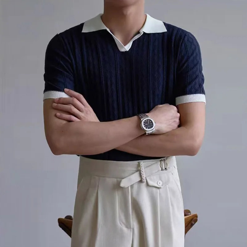 AIDASE - Knitting Short Sleeve Turn-down Collar Polos Men Summer New Casual Breathable Knit Polo Shirt Classic Mens Patchwork Polo Shirts