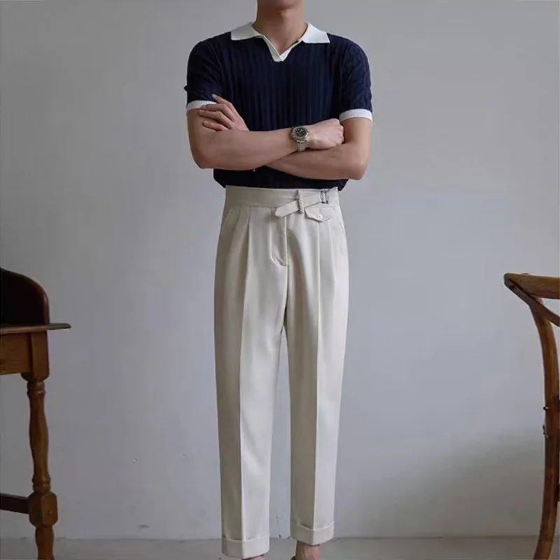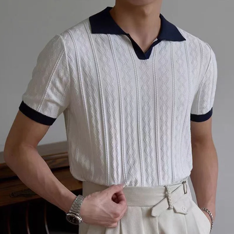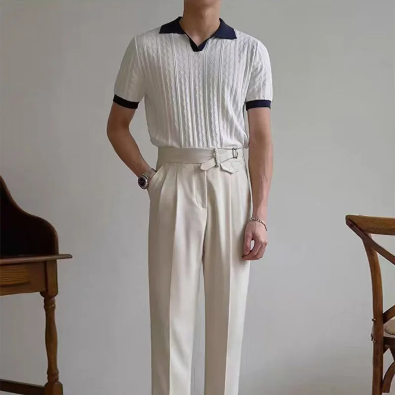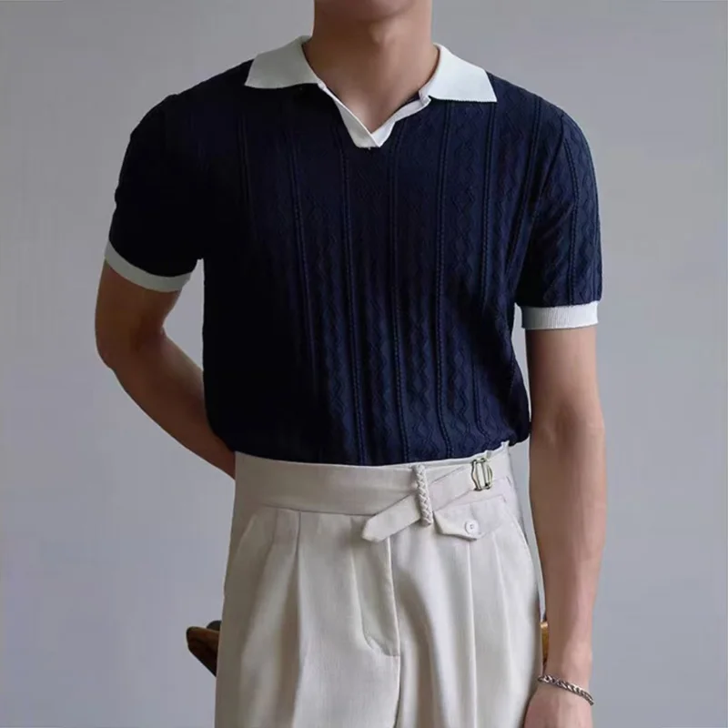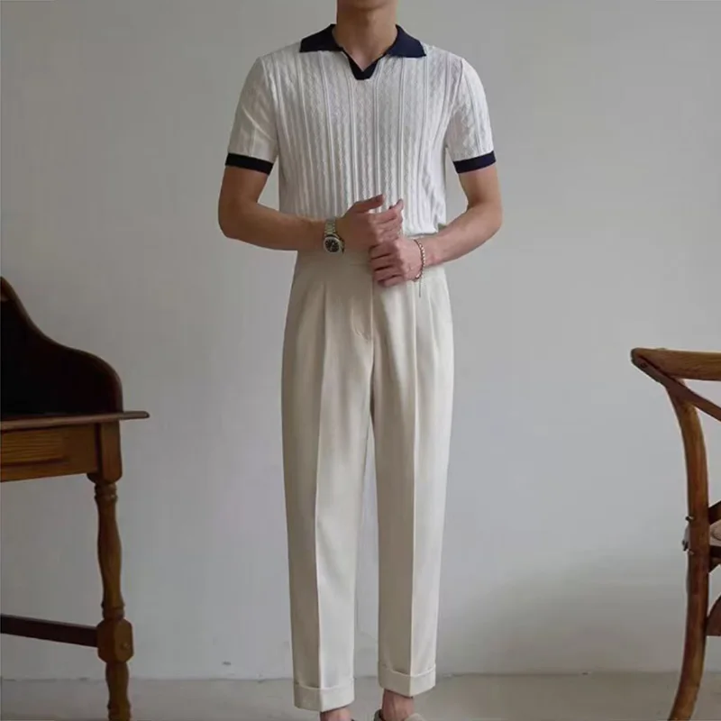 AIDASE - Knitting Short Sleeve Turn-down Collar Polos Men Summer New Casual Breathable Knit Polo Shirt Classic Mens Patchwork Polo Shirts