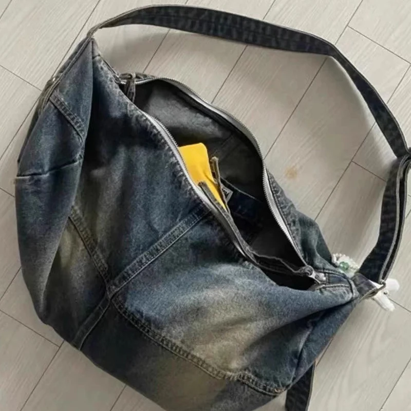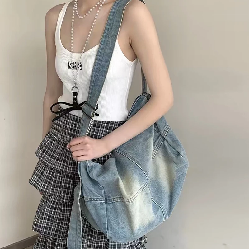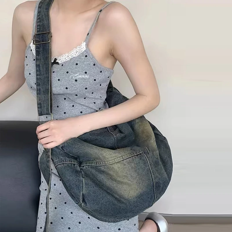 AIDASE  -  Korean Casual Large Capacity hobos denim Bags For Women Luxury Designer Handbag And Purse In Wide Straps Cloth Shoulder