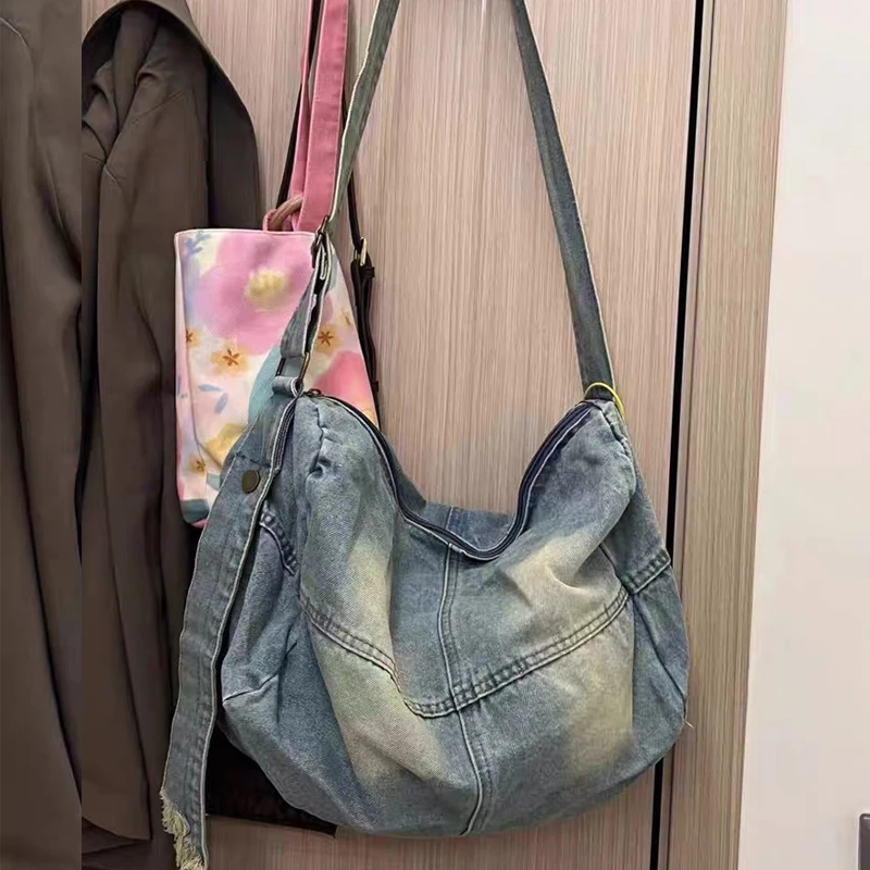 AIDASE - Korean Casual Large Capacity hobos denim Bags For Women Luxury Designer Handbag And Purse In Wide Straps Cloth Shoulder