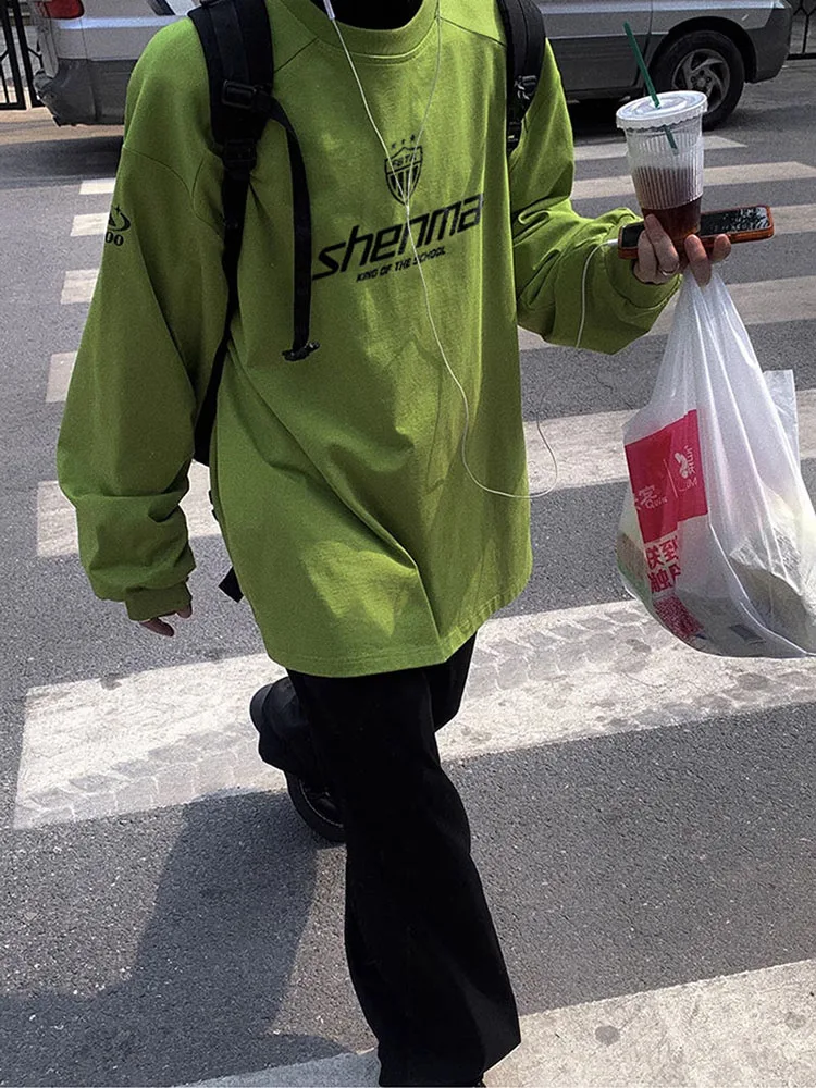 AIDASE  -  Korean Harajuku O-neck Letter Printed Loose Long Sleeved Men's High Street Gothic Sports Casual Fashion Retro Couple Pullover