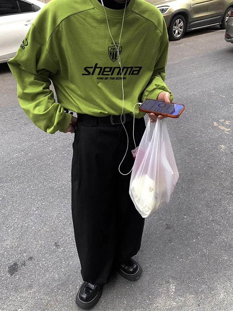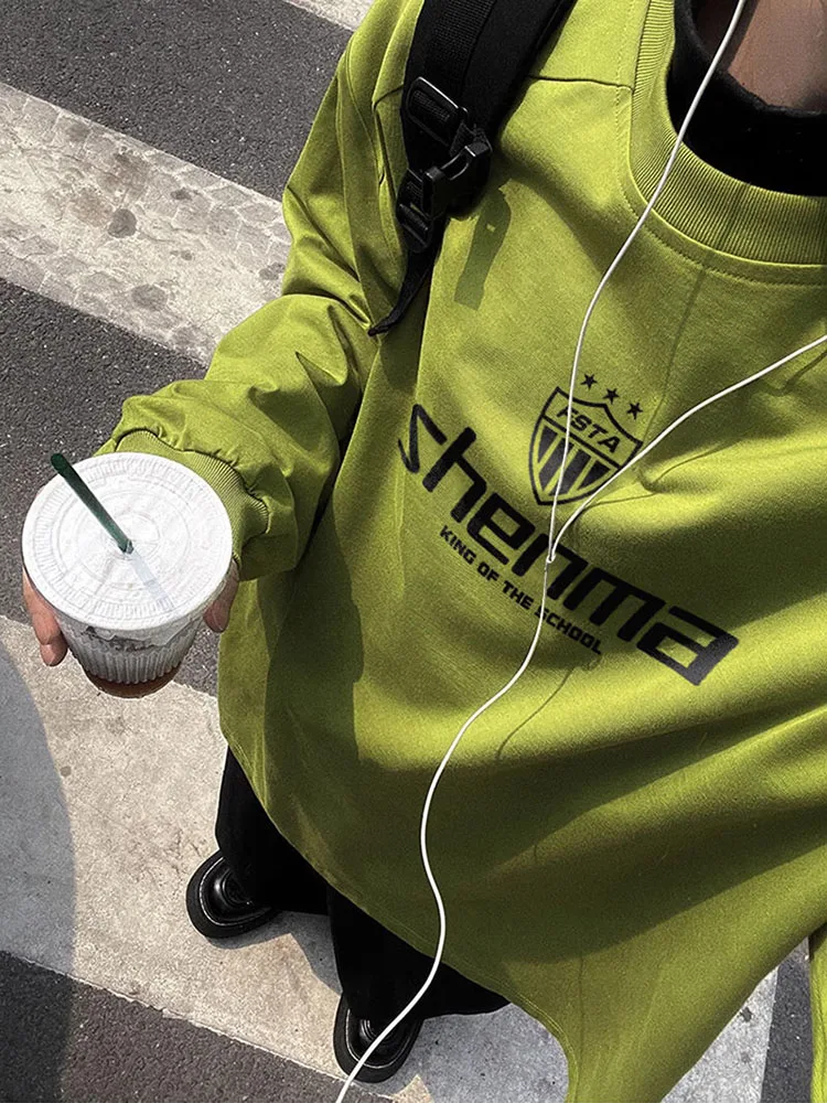 AIDASE - Korean Harajuku O-neck Letter Printed Loose Long Sleeved Men's High Street Gothic Sports Casual Fashion Retro Couple Pullover