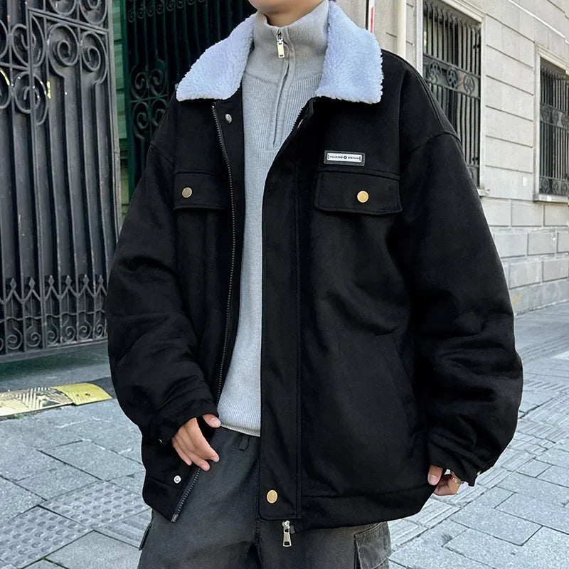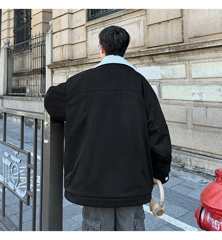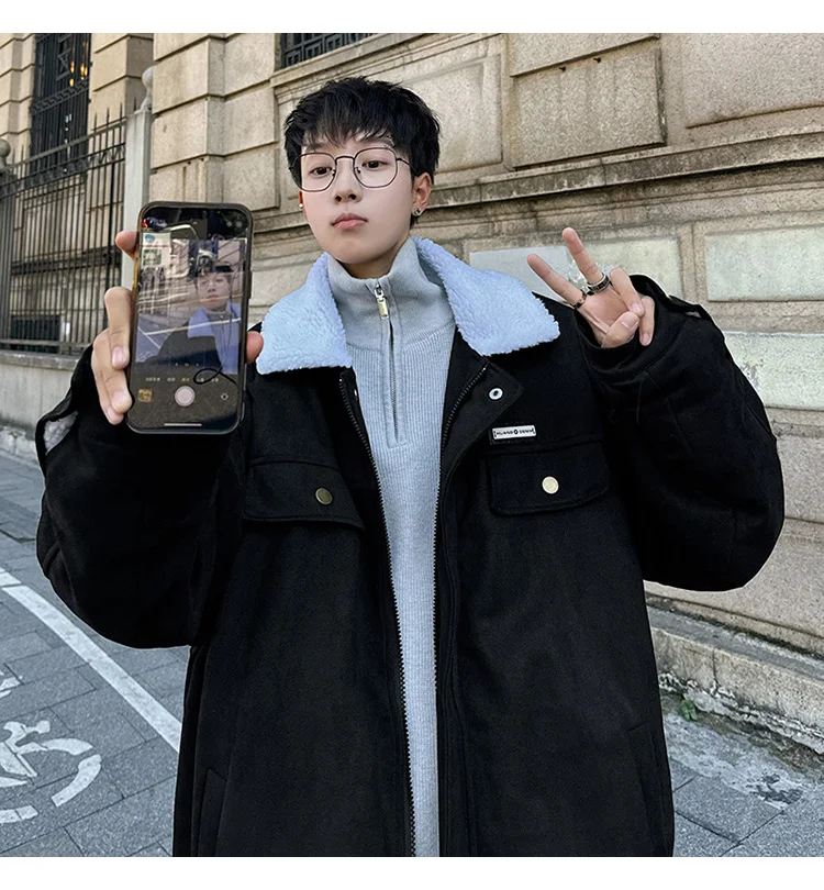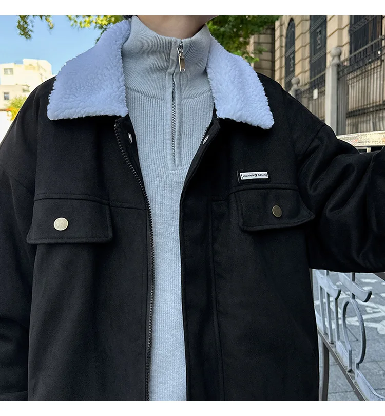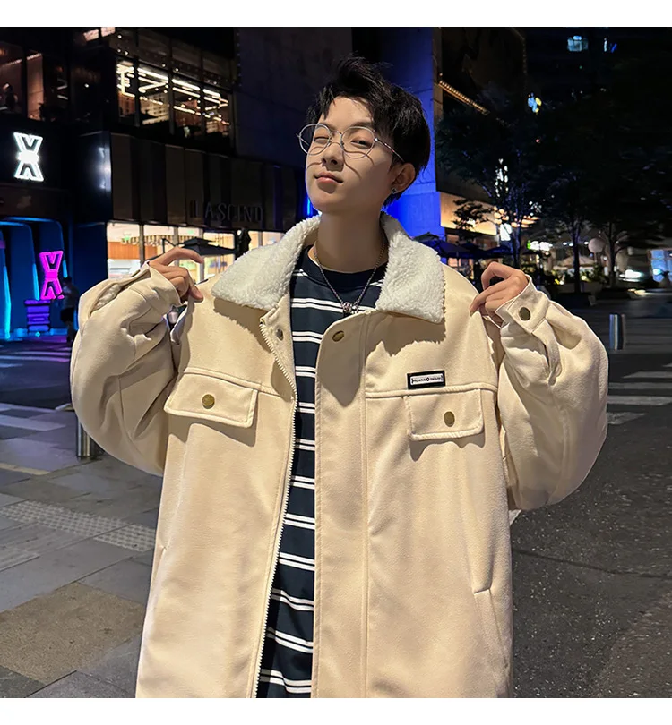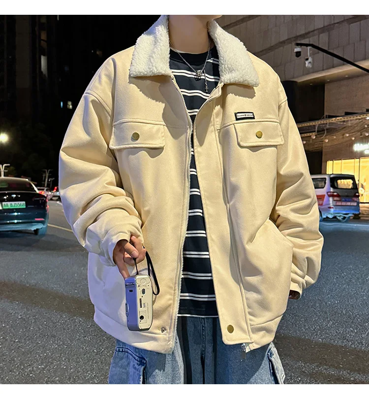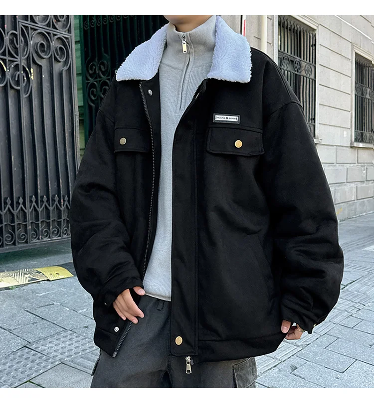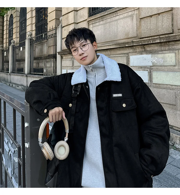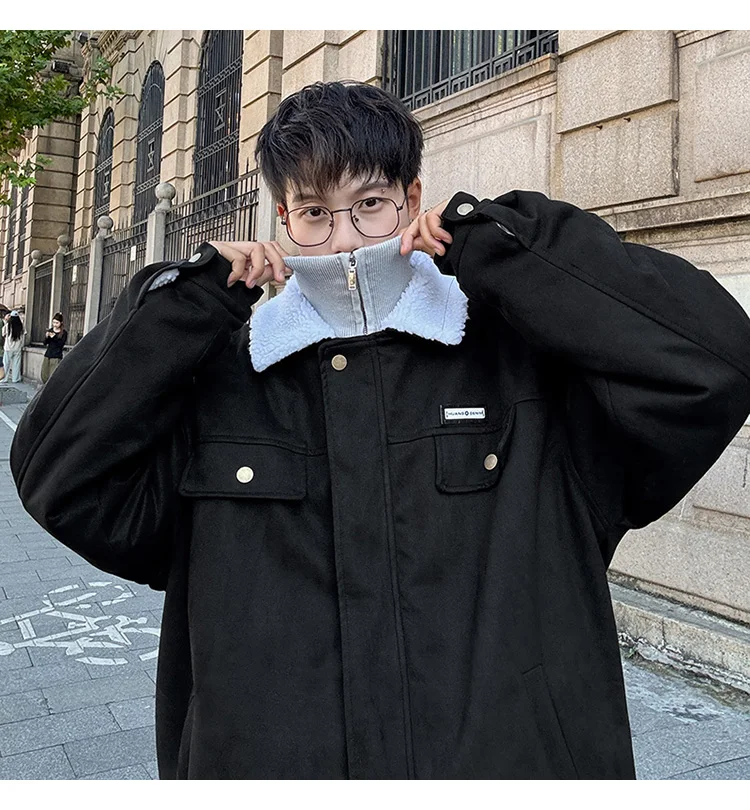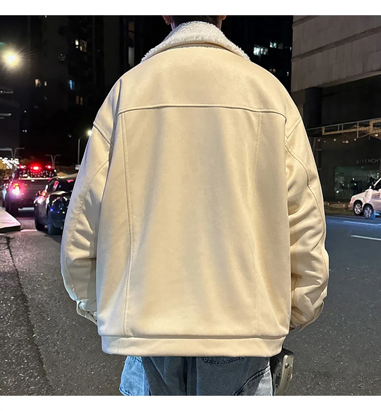 Aidase Korean Mens Lamb Wool Jacket Winter Velvet Thick Padded Parka Coat Streetwear Fashion Trend High Street Hip Hop Fur Collar Coats