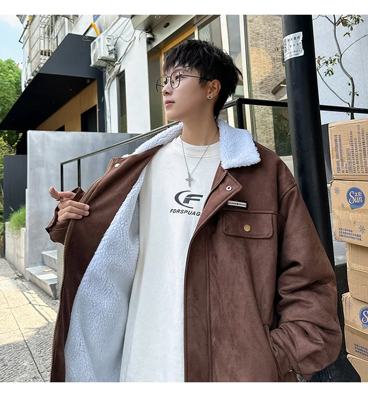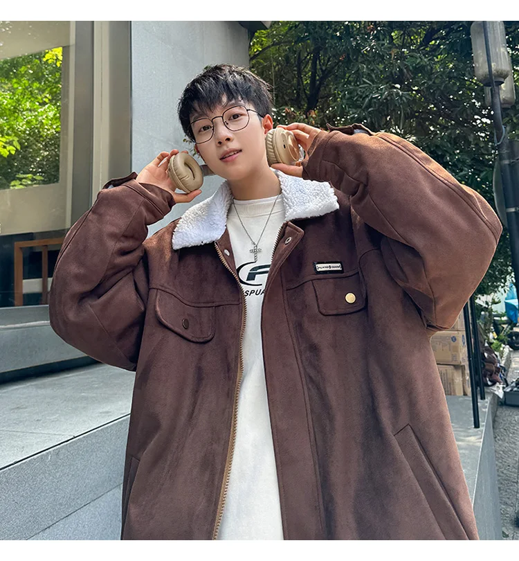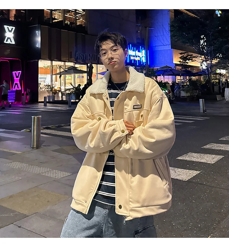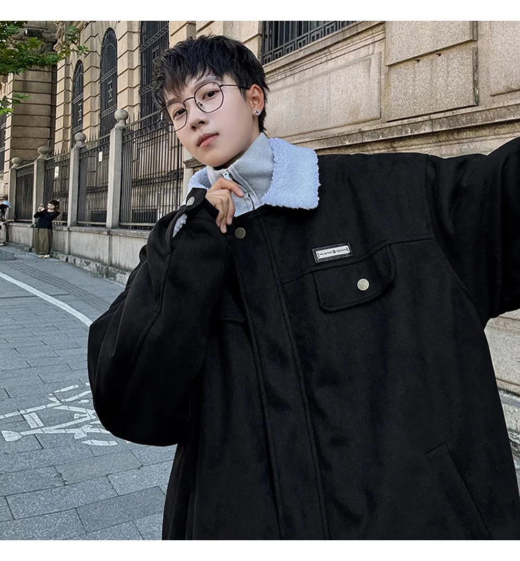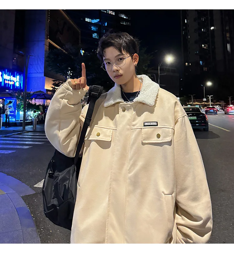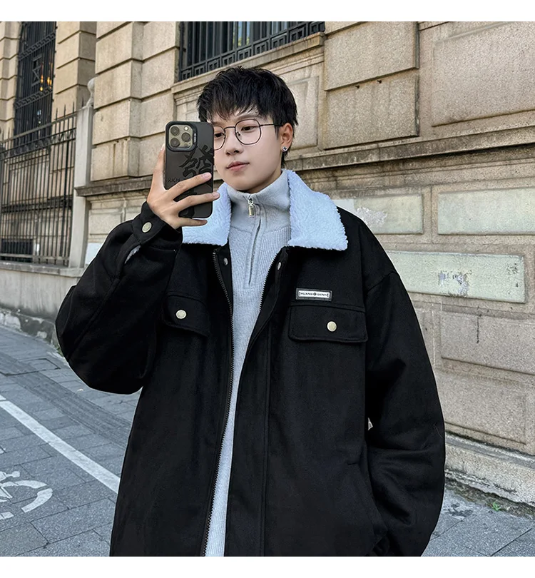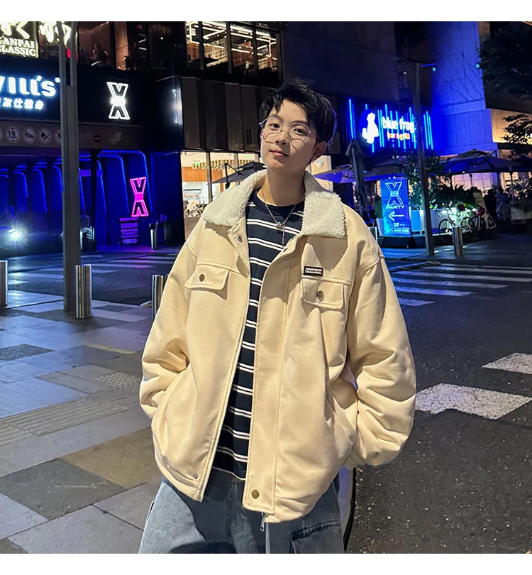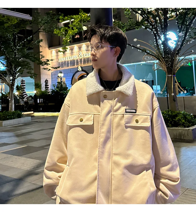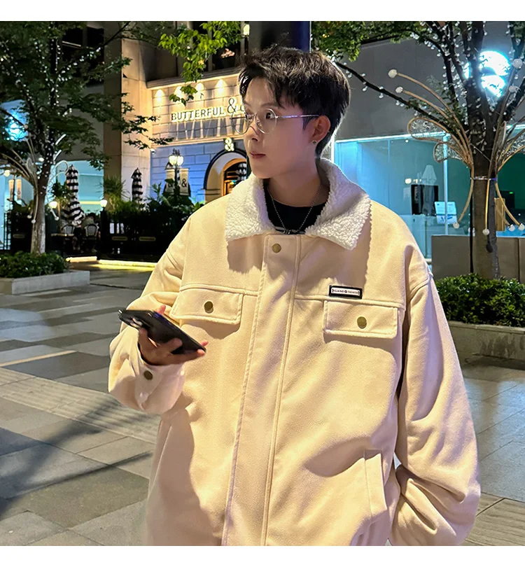 Aidase Korean Mens Lamb Wool Jacket Winter Velvet Thick Padded Parka Coat Streetwear Fashion Trend High Street Hip Hop Fur Collar Coats