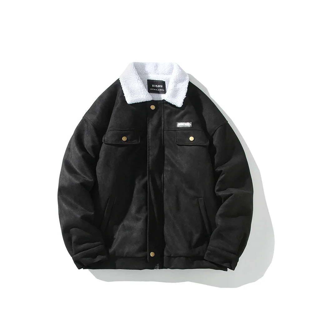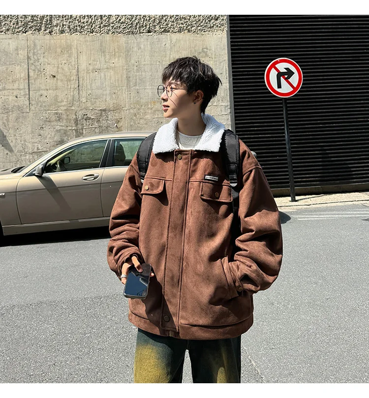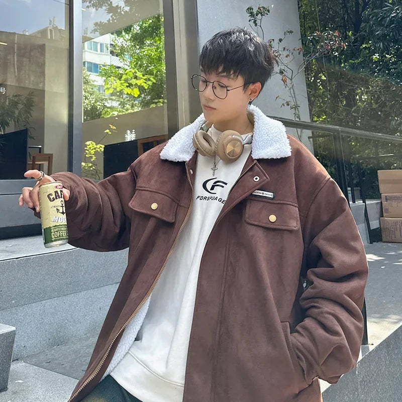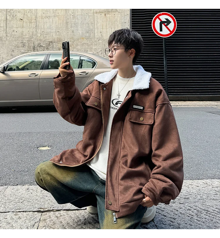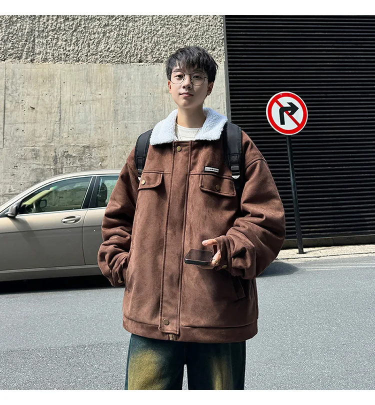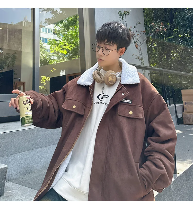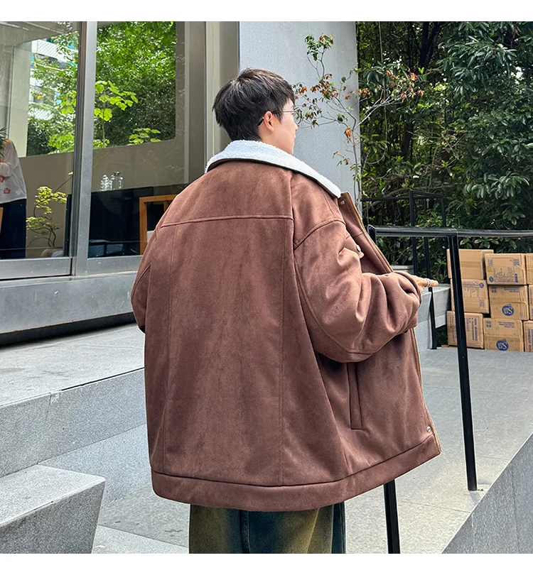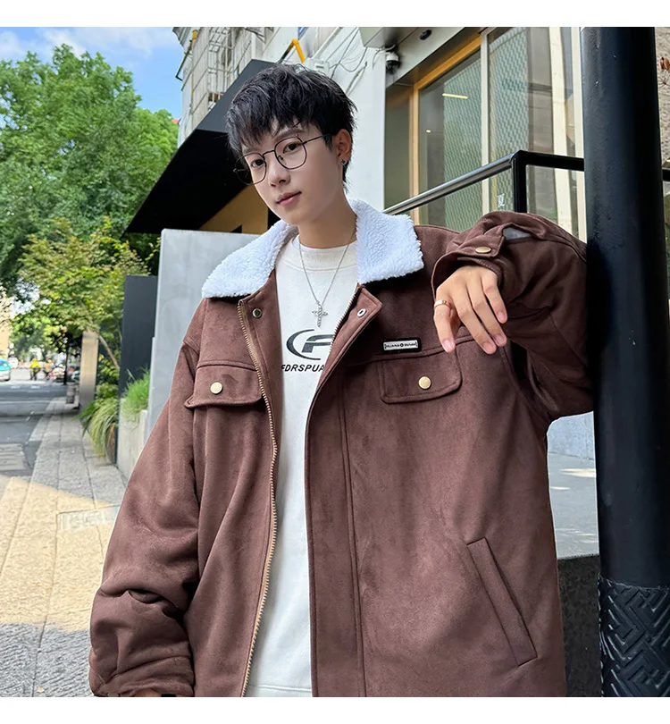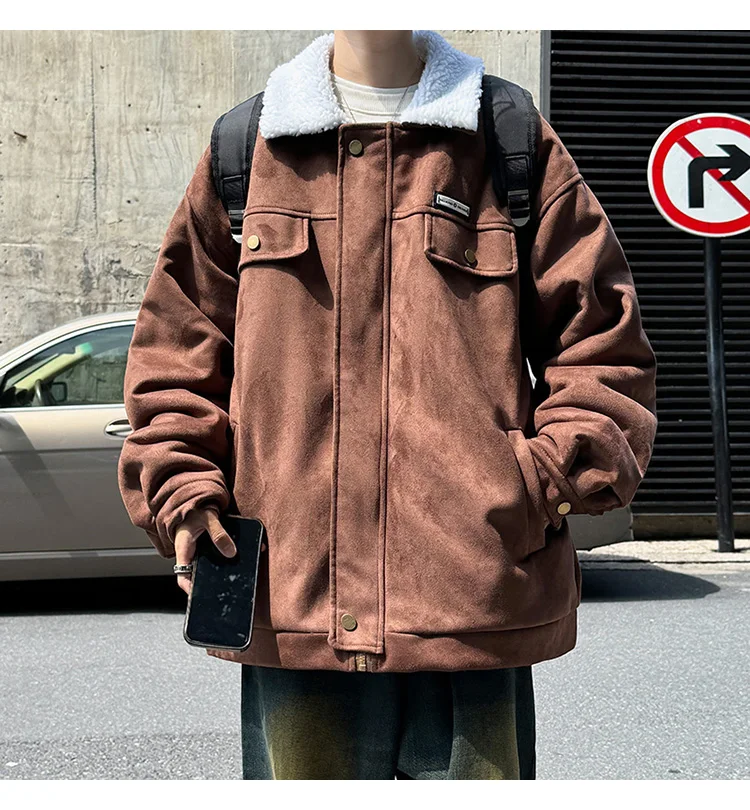 Aidase Korean Mens Lamb Wool Jacket Winter Velvet Thick Padded Parka Coat Streetwear Fashion Trend High Street Hip Hop Fur Collar Coats