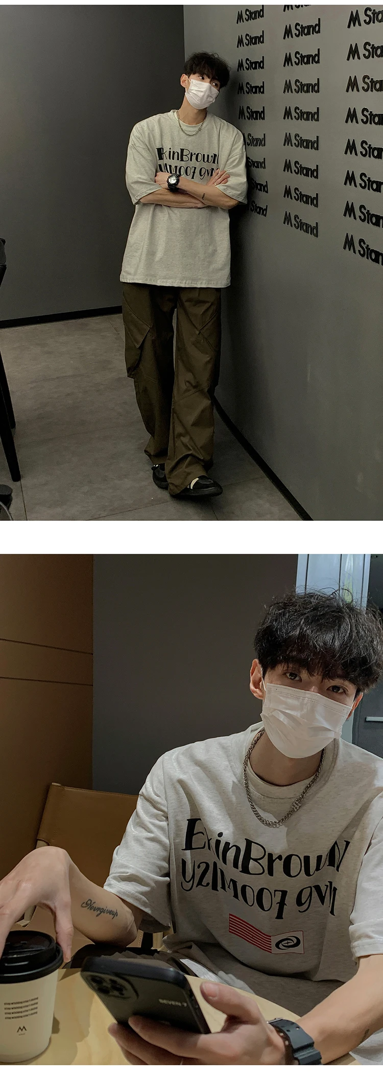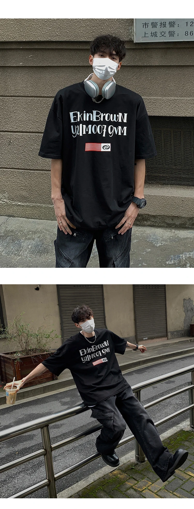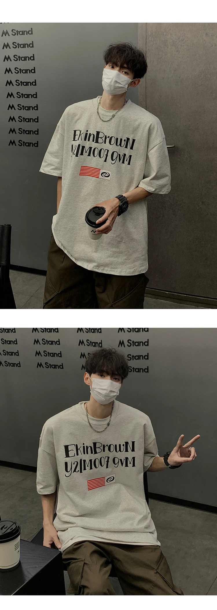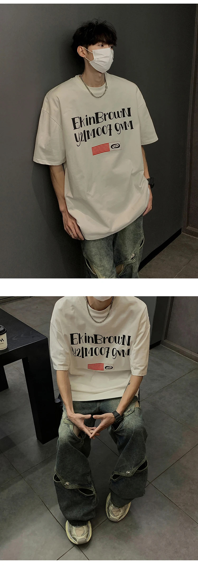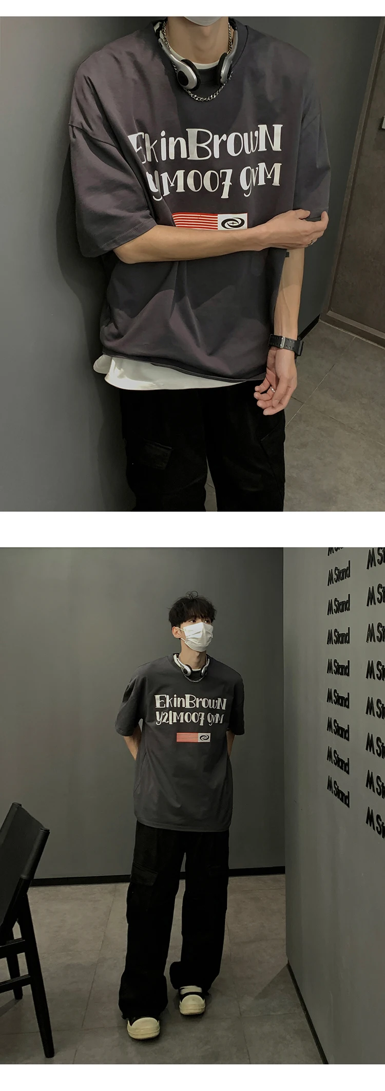 AIDASE - Korean Style Men's Crewneck Letter TShirt Short Sleeve Casual Baggy Short Sevee Tops Summer Streetwear Party Couple