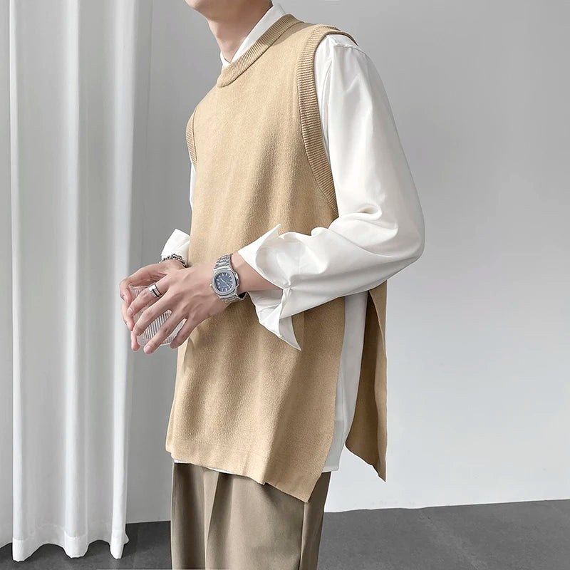 Korean Sweater Vest Men Slim Fit Fashion Solid Color Casual O-neck Knitted Pullover Men Knitting Sweaters Mens Jumper Clothes