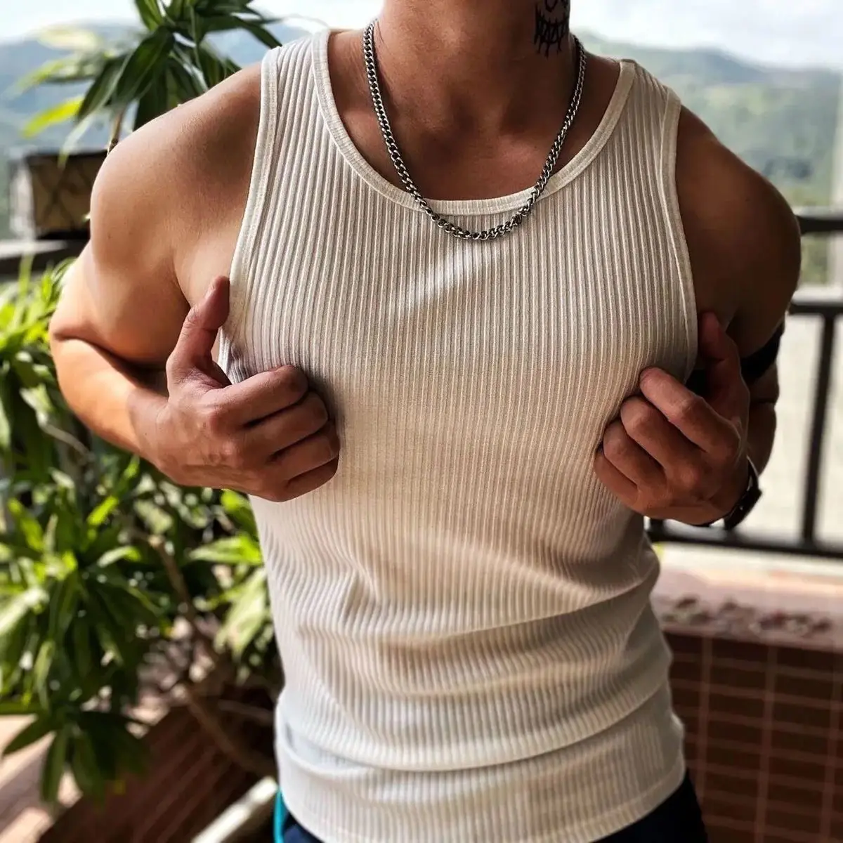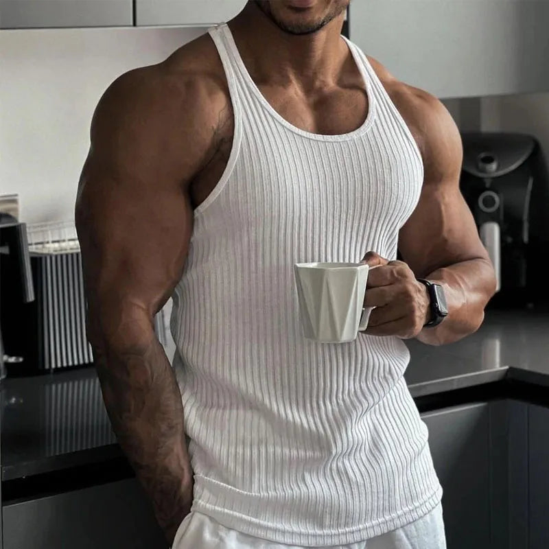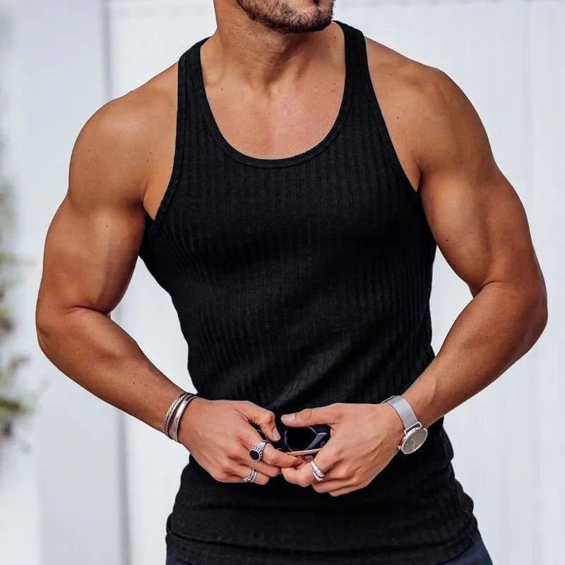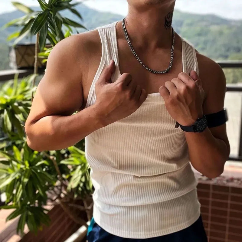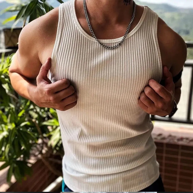 Korean Tops New Men Fashion Knitting Elastic Vest the Male Sex Solid Color Summer Tank Tops