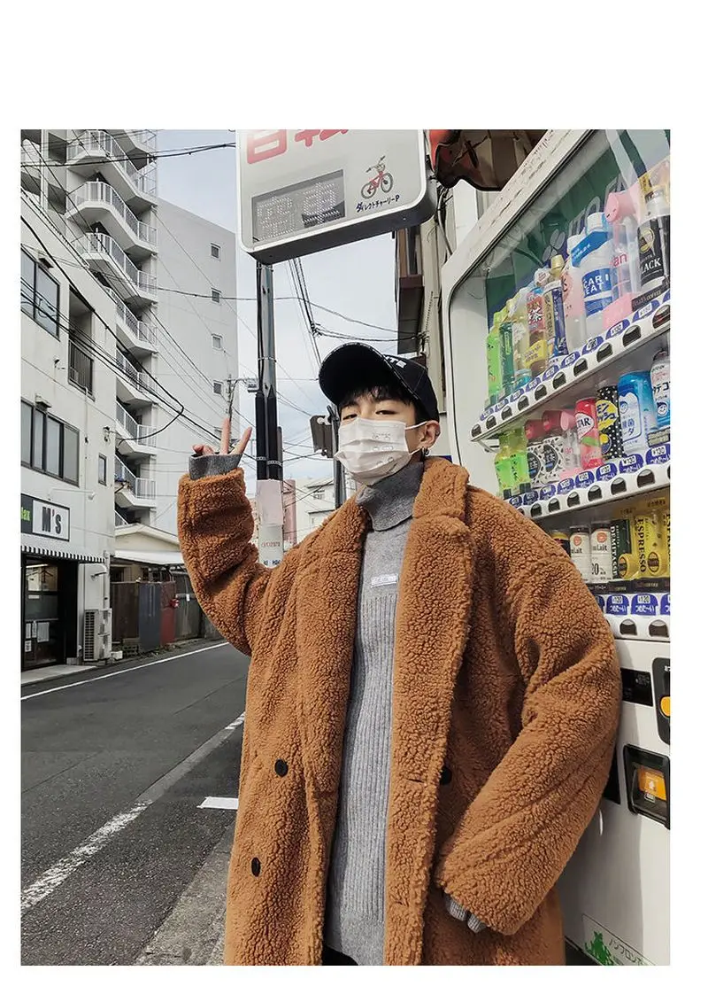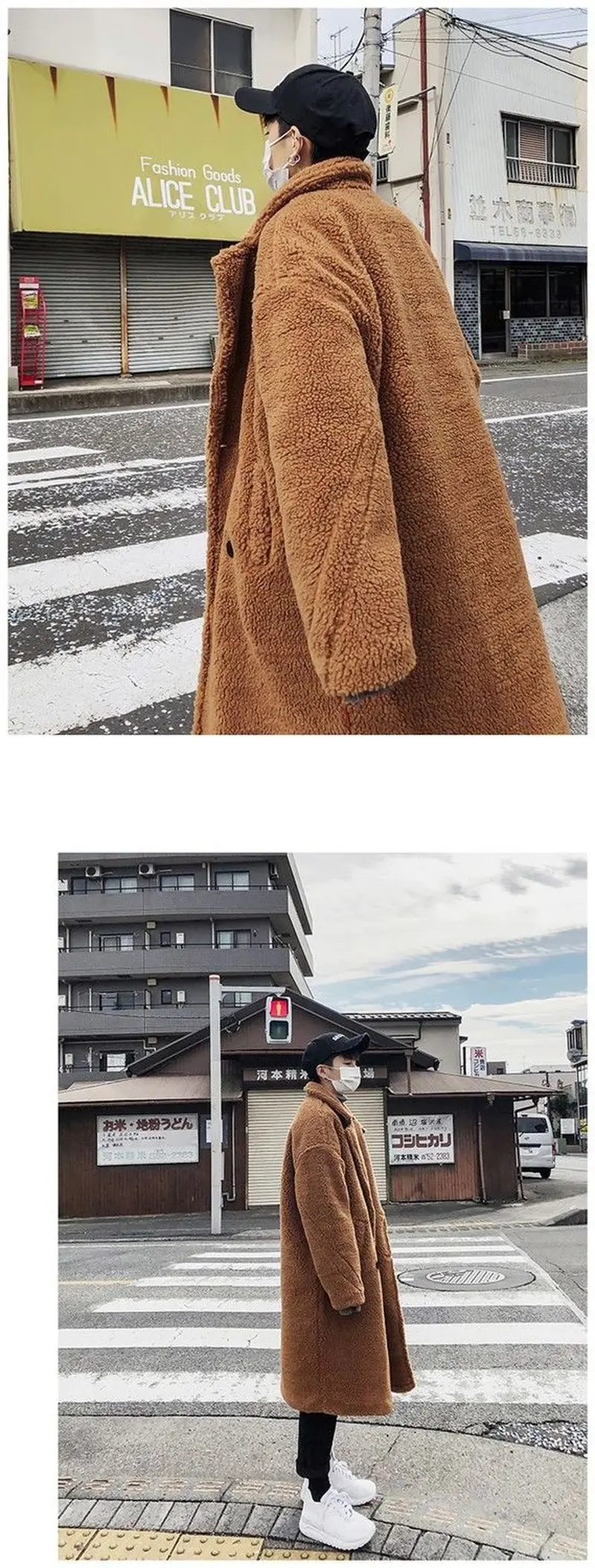 Aidase Lamb Wool Big Thickened Long Coat Men's Winter Particle Wool Large Size Padded Jacket Hong Kong Style Unisex Warm Windbreaker