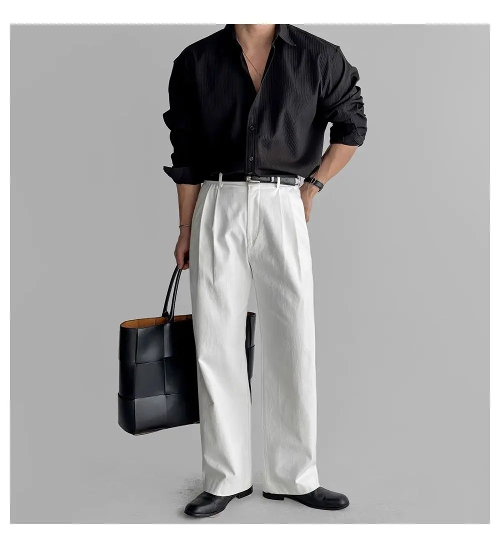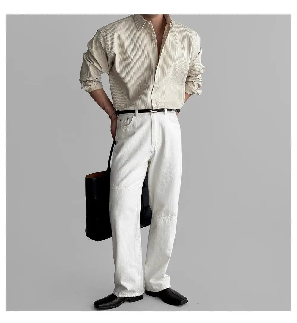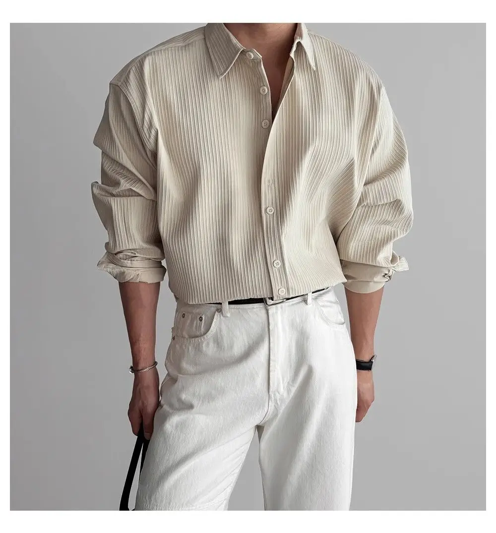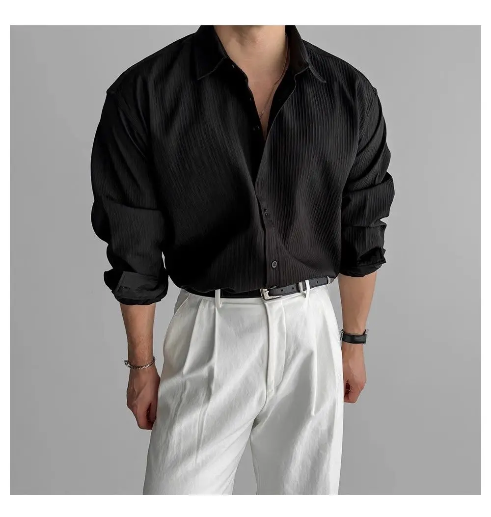 AIDASE - Lapel Pit Stripe Texture Long Sleeve Shirt Men's Casual Business Shirt High-end Drapery Light Versatile Top Male Blouse