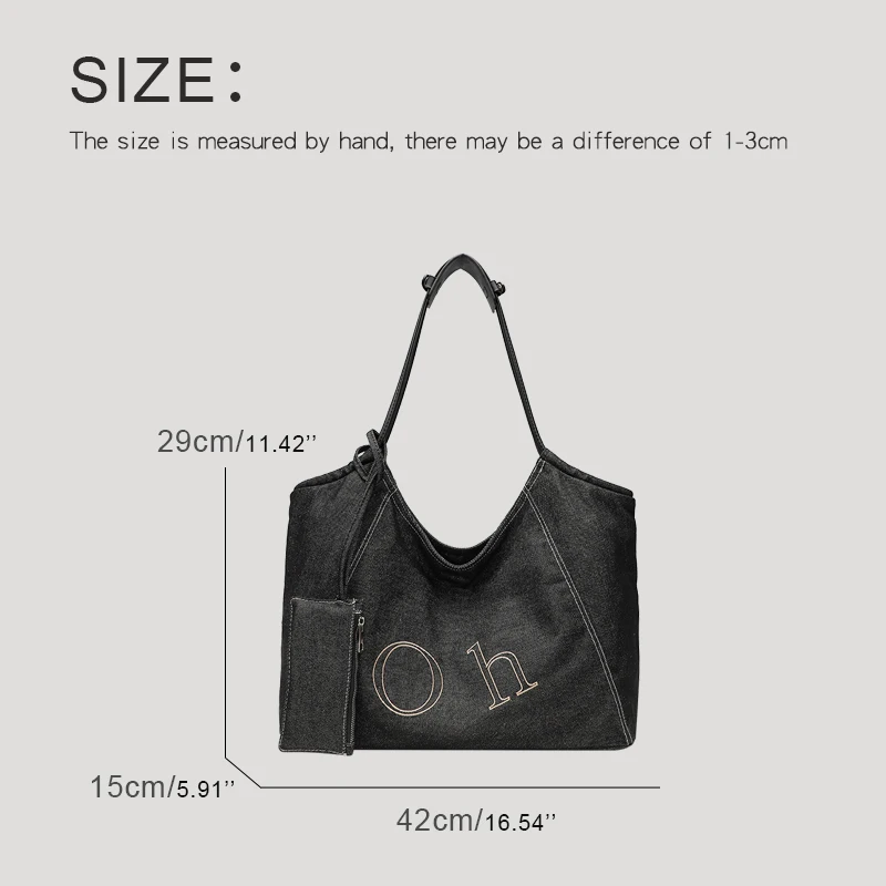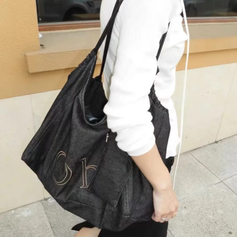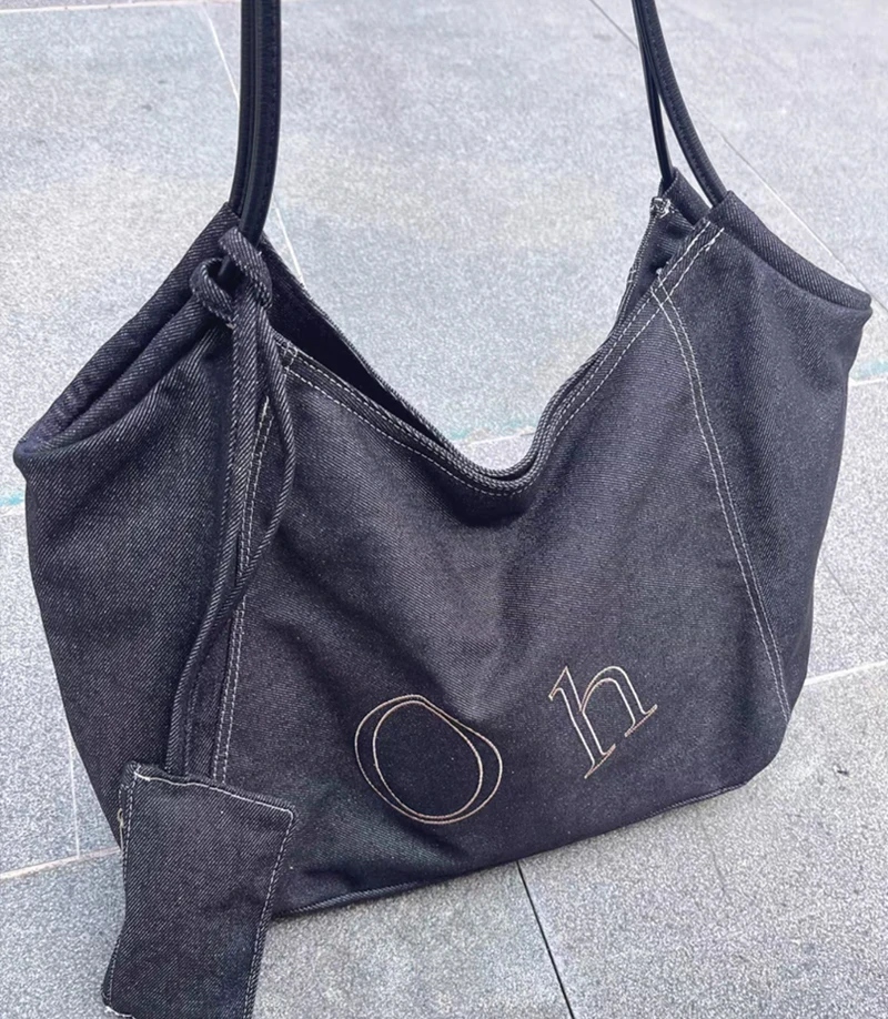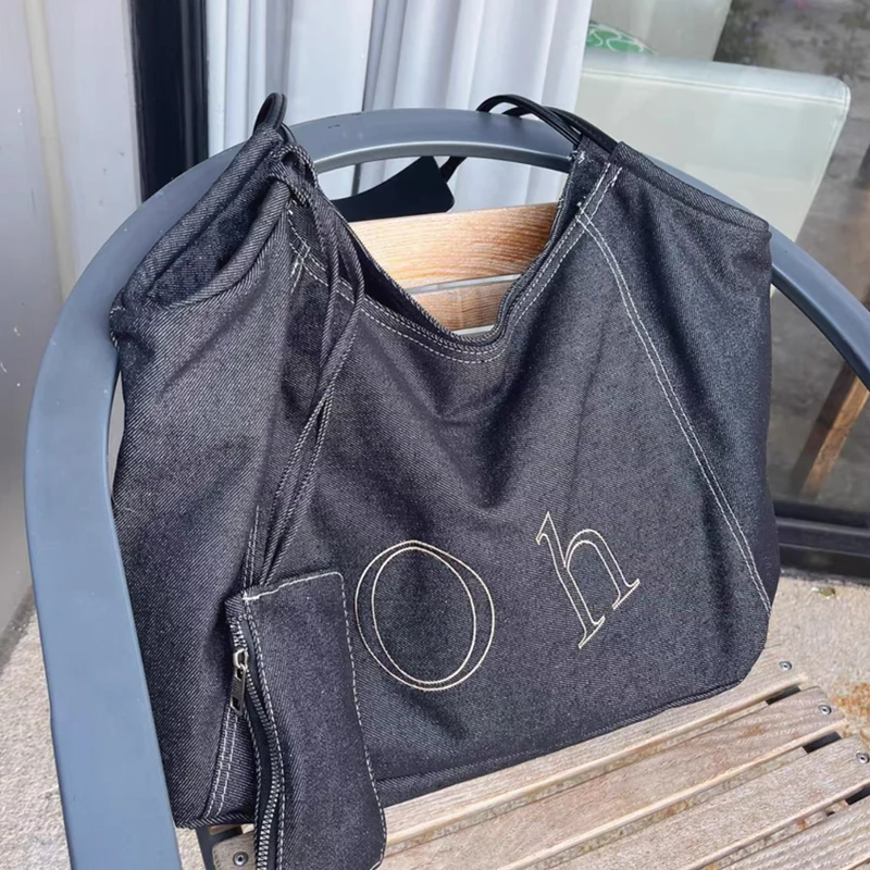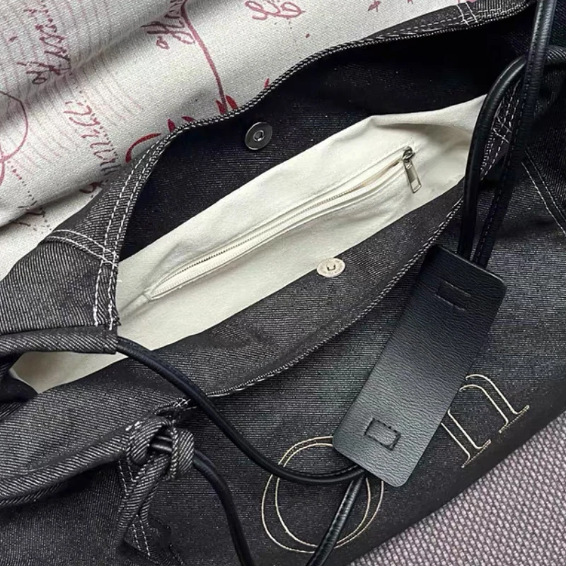 AIDASE - Large Capacity Denim Tote Bags For Women Luxury Designer Handbags Purses 2025 New In Letters With Card Pocket Underarm Shoulder