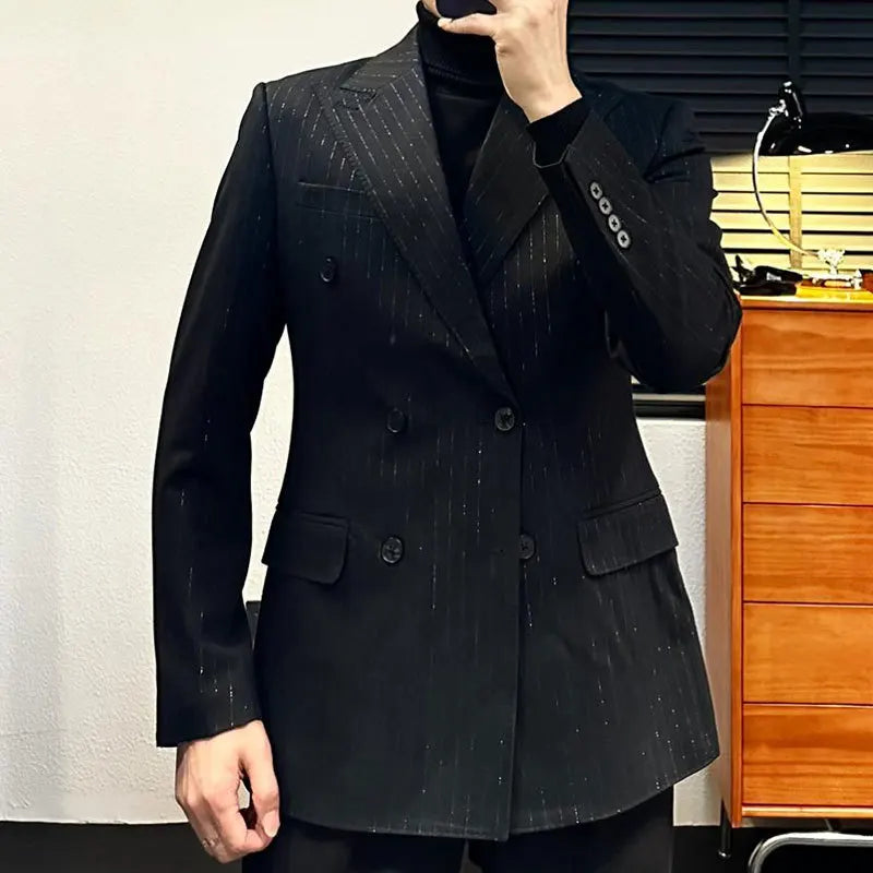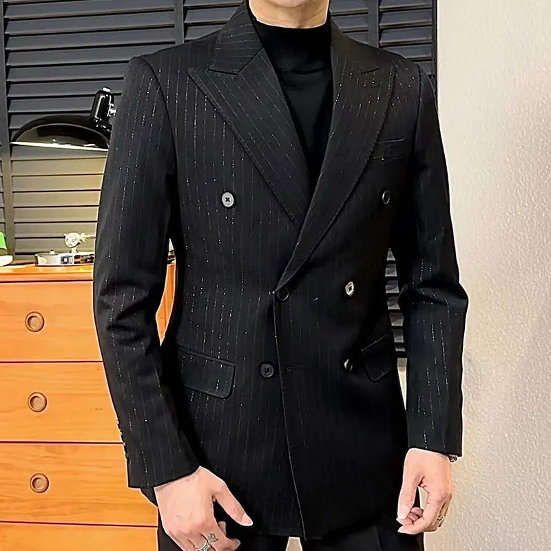 Aidase Lurex Yarn Casual Double Breasted Stripe For Men 2023 Blazer Masculino British Daily Men Blazer Hombre Fashion Shiny Slim Blazer
