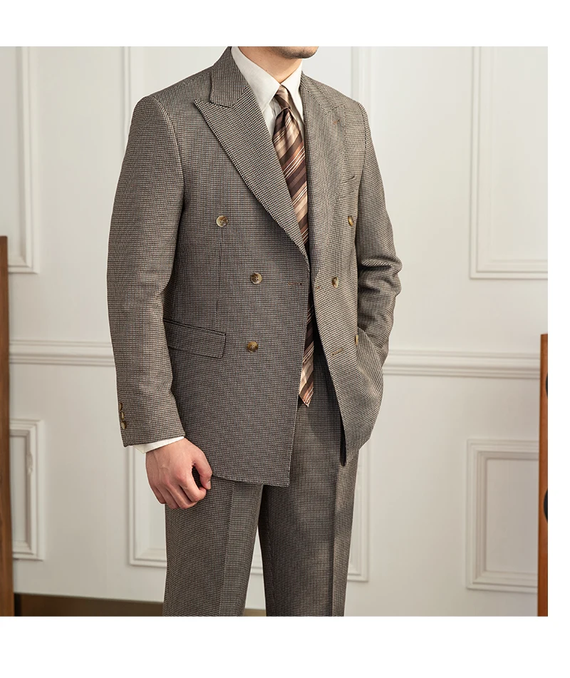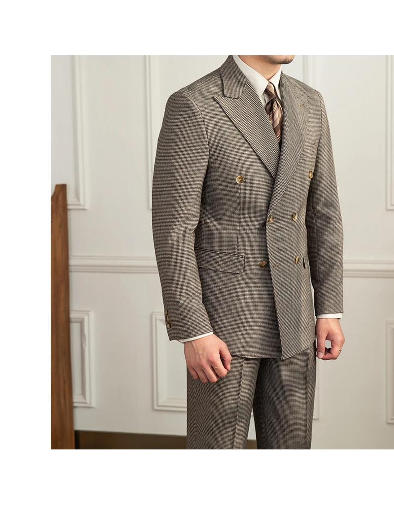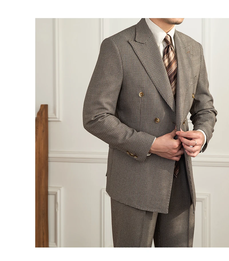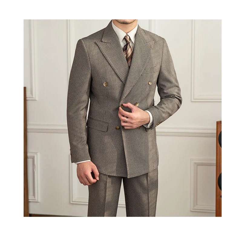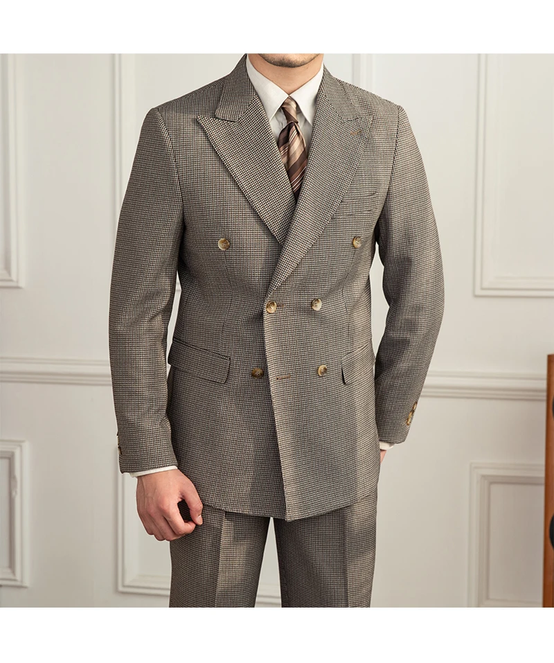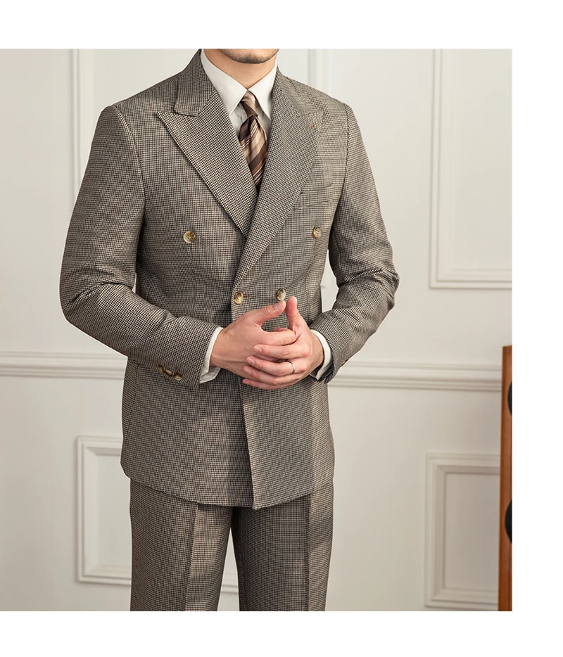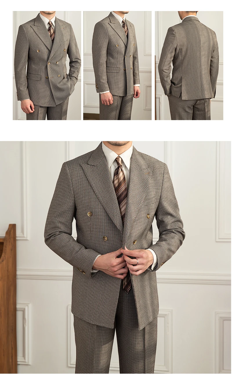 Aidase Luxury Business Suits For Men British Gentleman Double Breasted Formal Casual Dress Suits 2 Pieces Elegant Slim Costume
