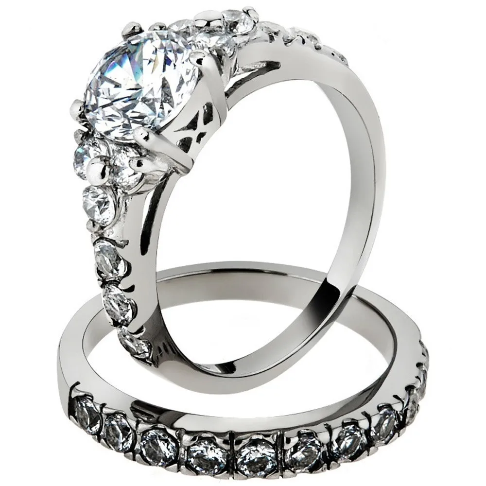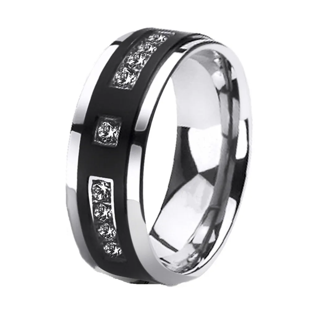 Aidase Men Fashion Stainless Steel Black Ring Ladies Rhinestone Silver Color Rings Couple Ring Jewelry Accessories New Year Gift