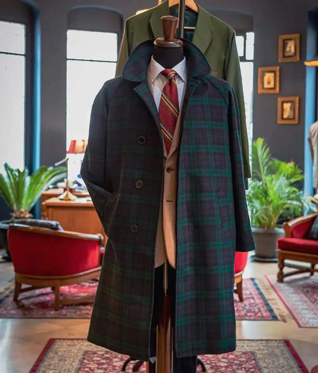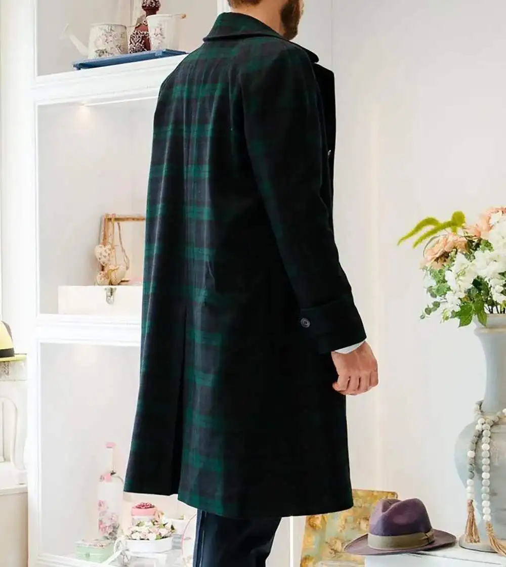 Aidase Men Formal Overcoat Wool Jacket Two Button Plaid Blazer Notched Lapel Tuxedos Coat