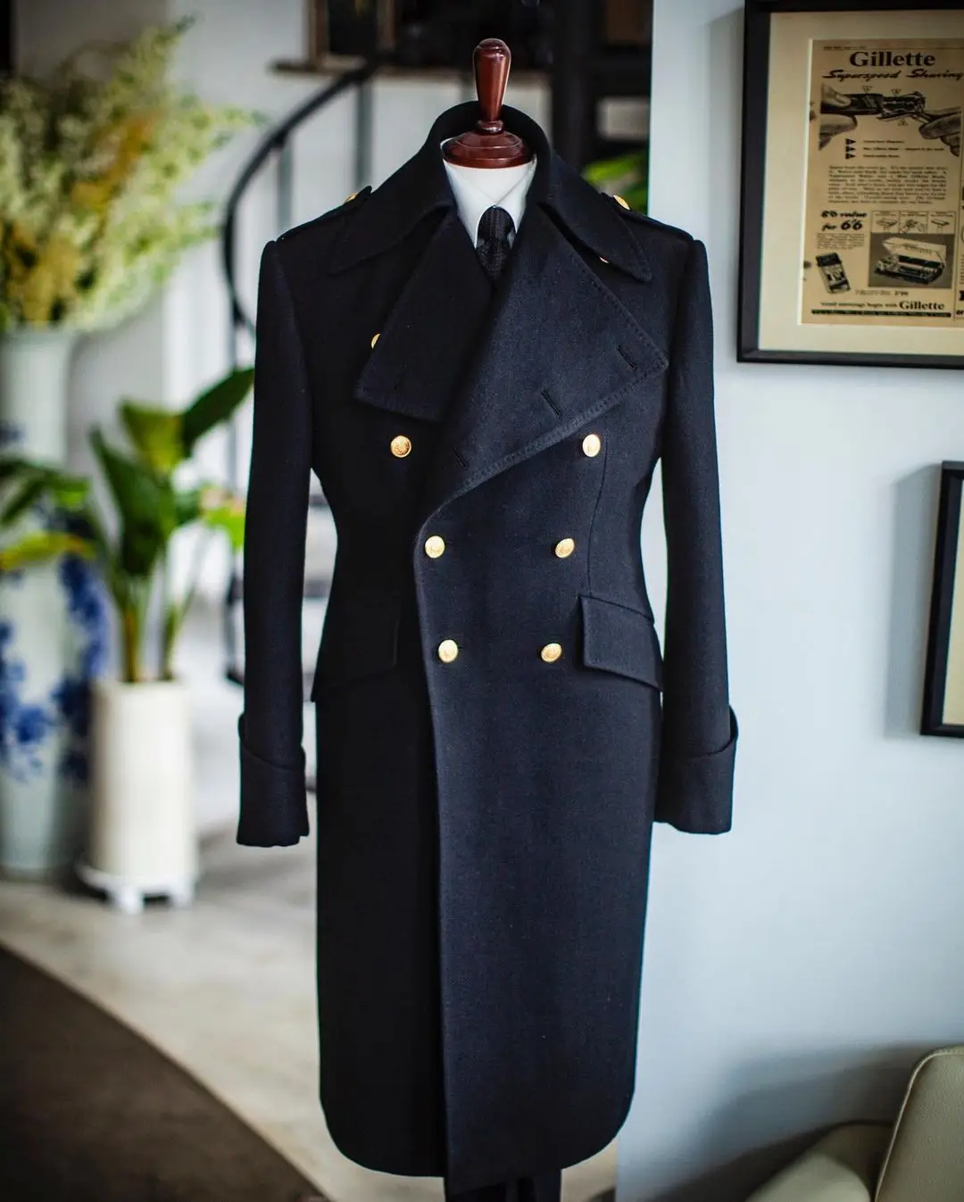 Aidase Men Long Coat Overcoat Double Breasted Woolen Blend Gentlemen Blazer Winter Warm Business Causal Daily Tailored