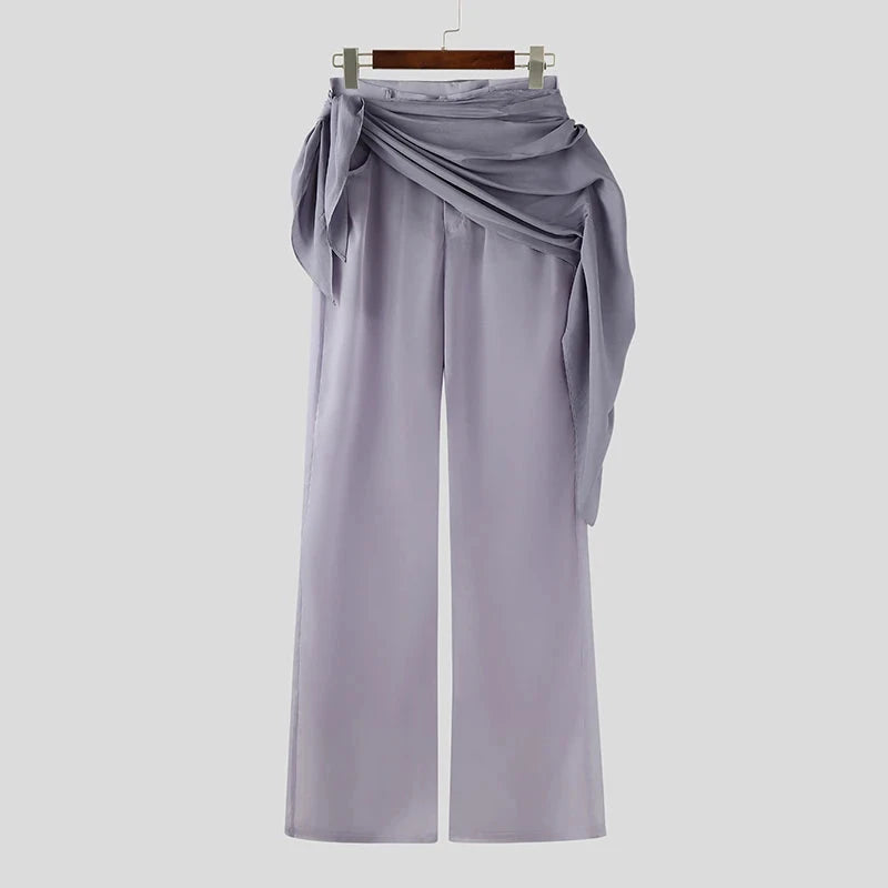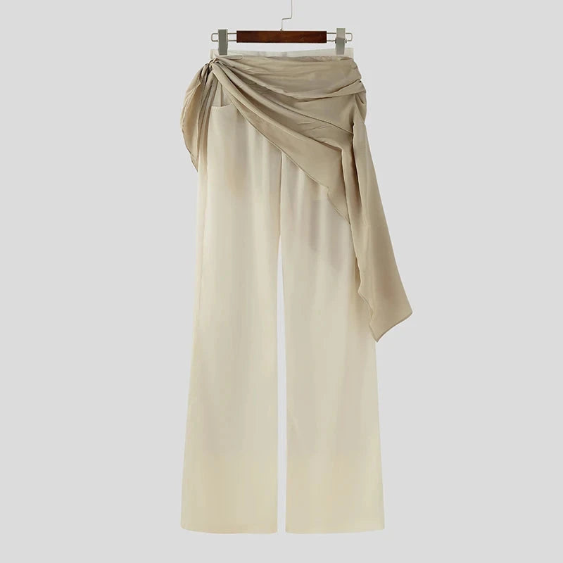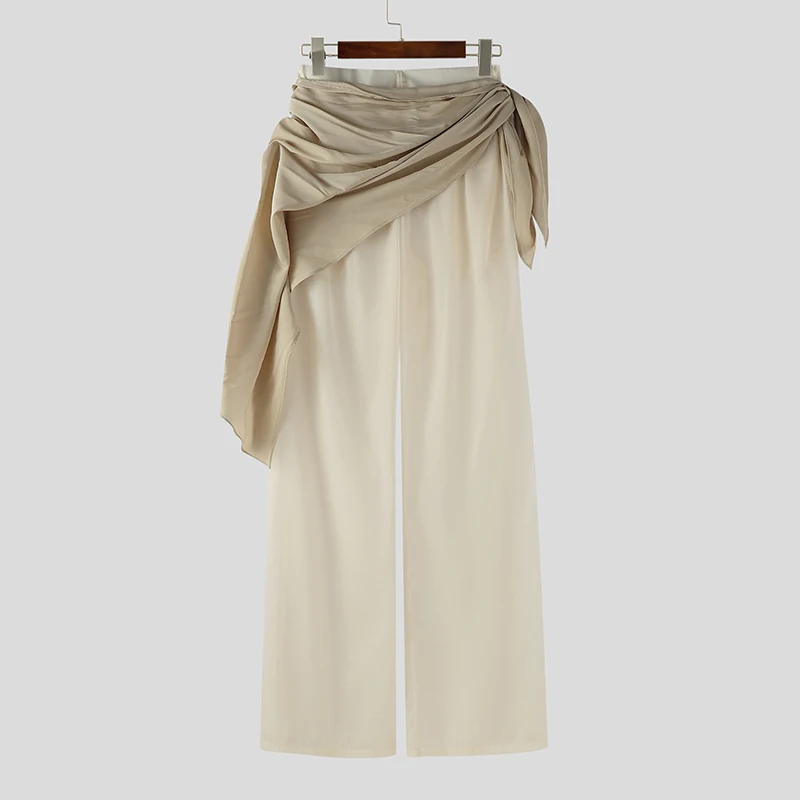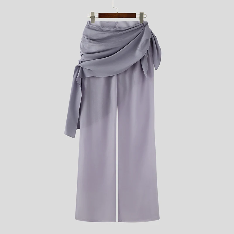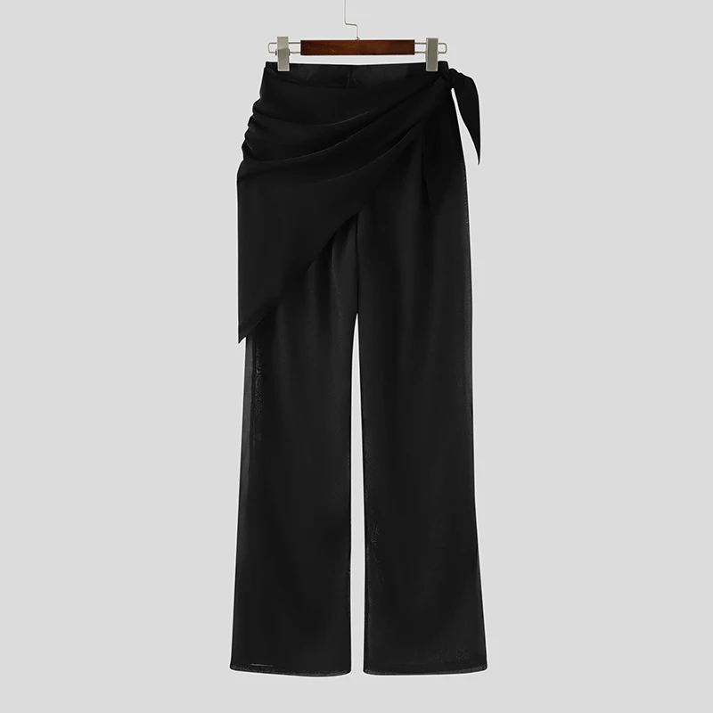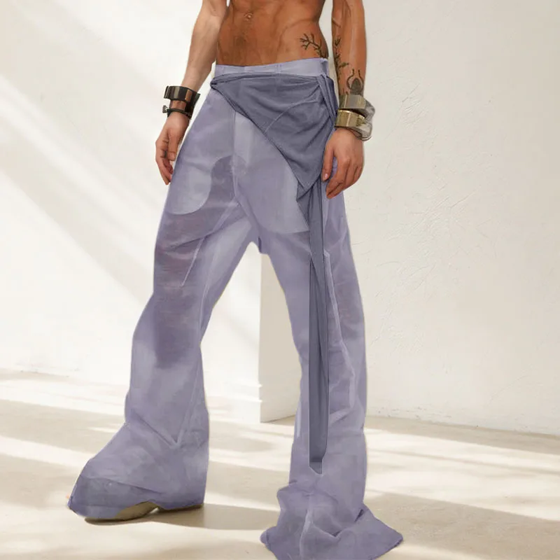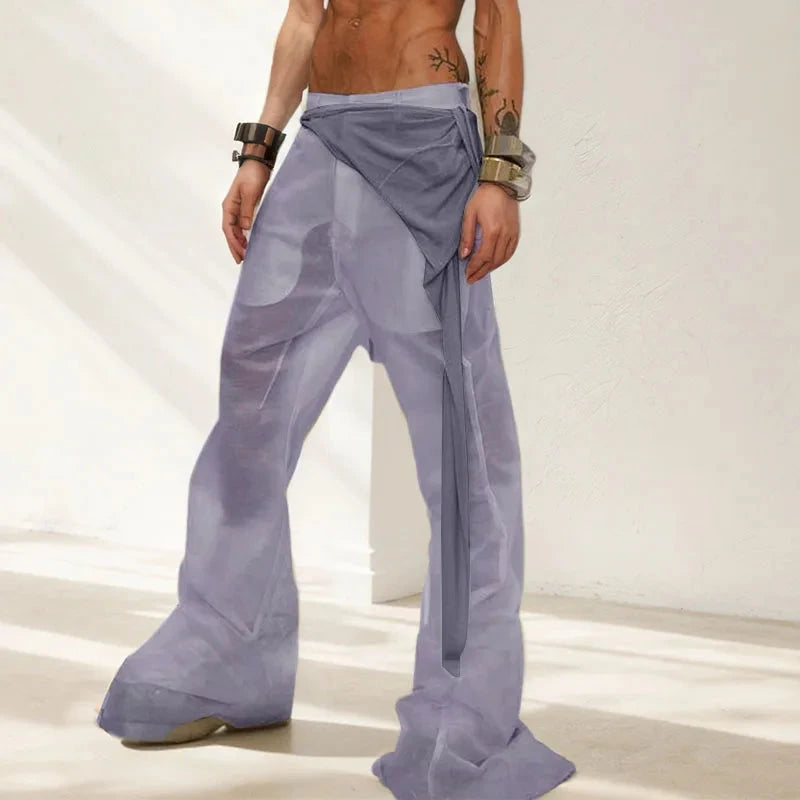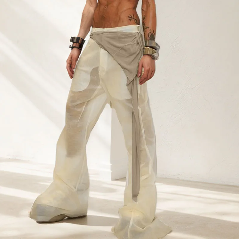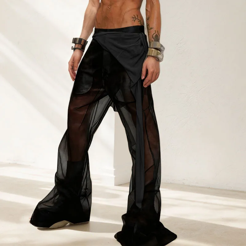 AIDASE - Men Pants Mesh Patchwork See Through Pleated Casual Trousers Men Sexy Loose Streetwear Fashion Unisex Long Pants S-3XL