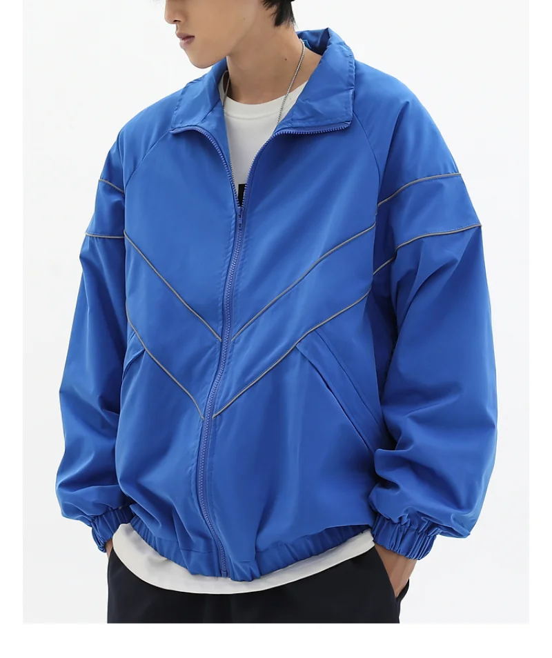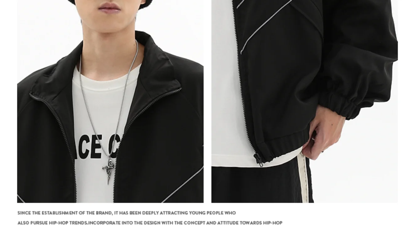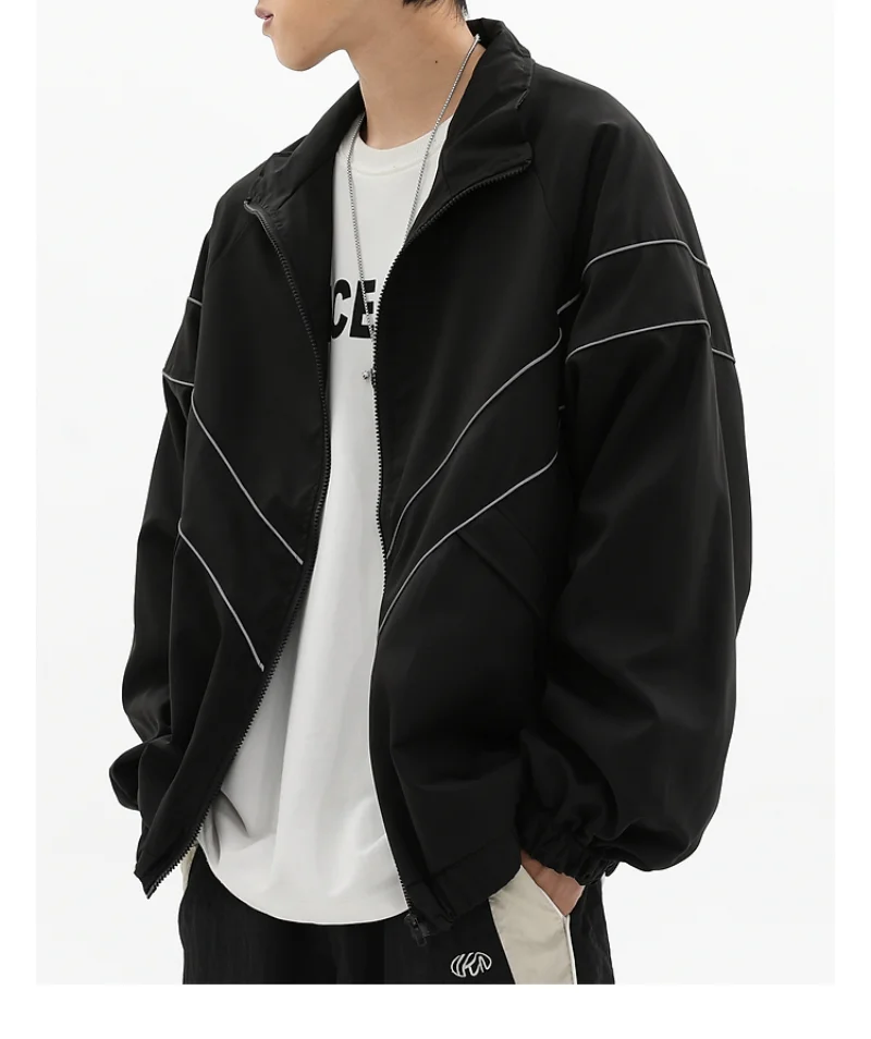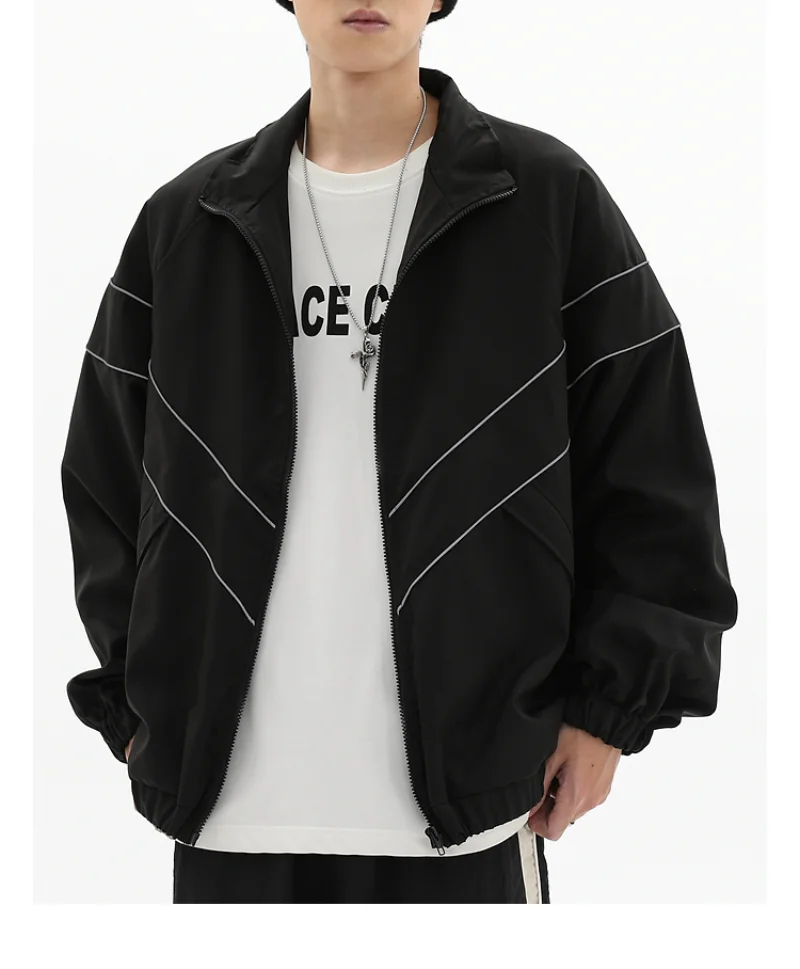 Men Reflective Striped Jacket Zipper Up Varsity Jackets Hip Hop Street Thin Coat Sports Black Loose Windbreaker Spring Autumn