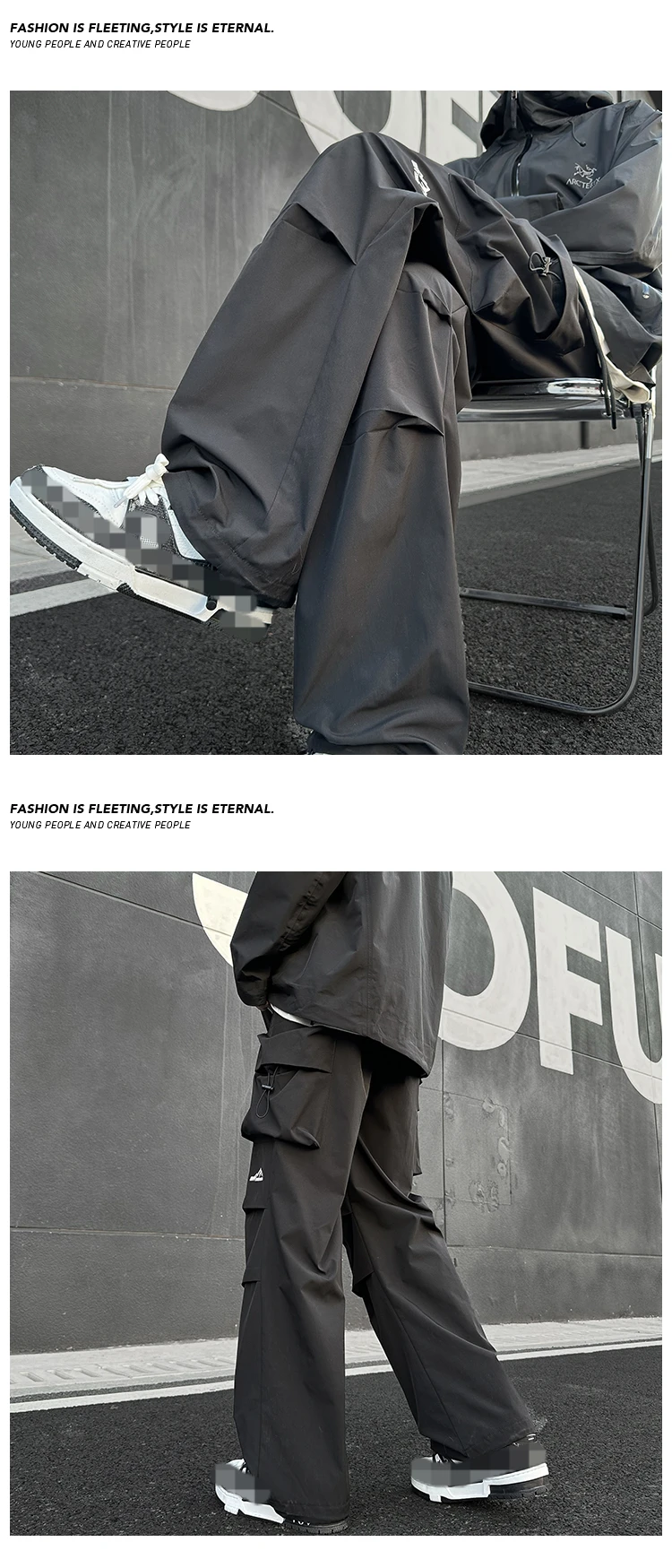 AIDASE - Men’s Soild Street Cargo Pants Summer SportsTrousers Parachute Pants Drawstring Sweatpants Big Pocket Overalls Black Blue