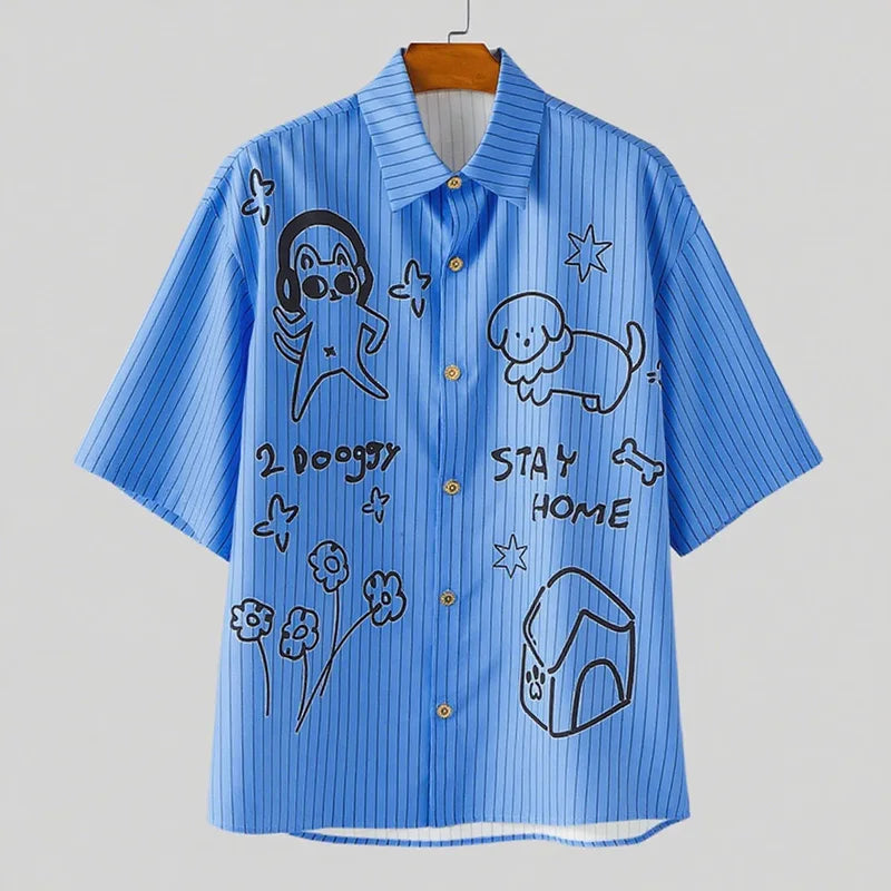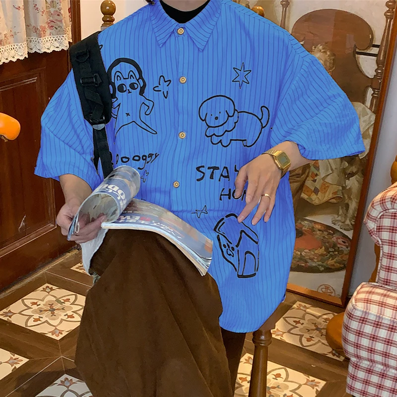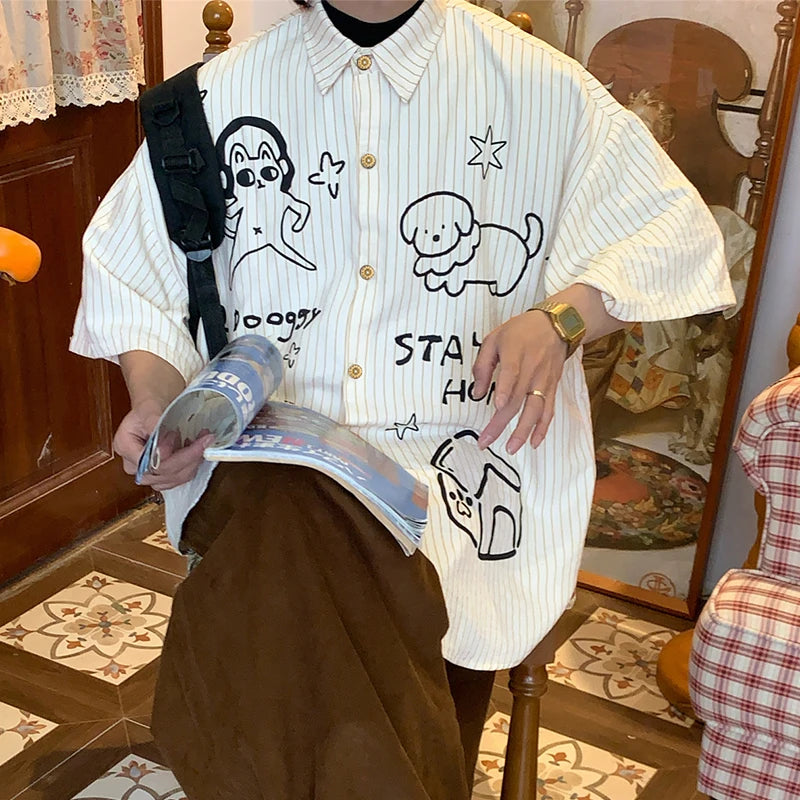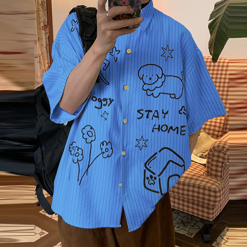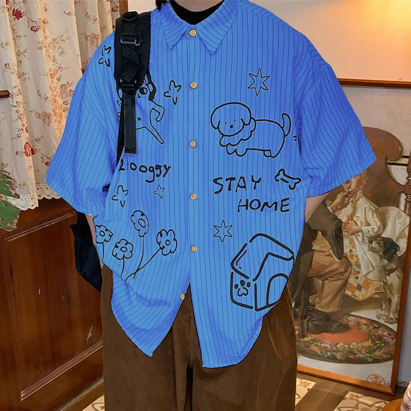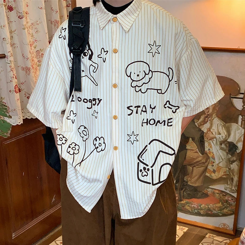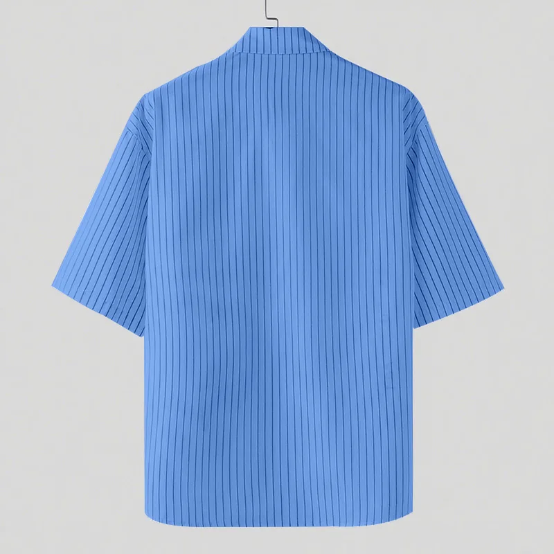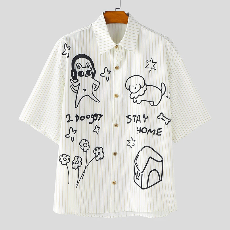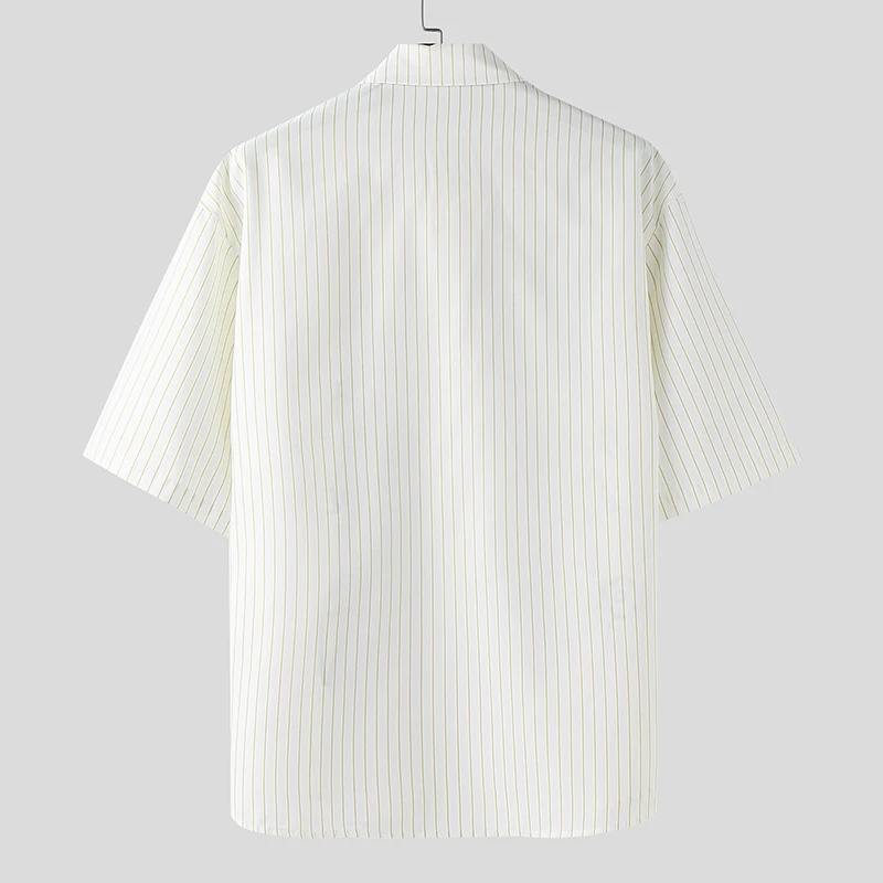 AIDASE - Men Shirt Printing Striped Lapel Short Sleeve Summer Male Tops Streetwear Loose 2025 Shirts Fashion Casual Men Clothing
