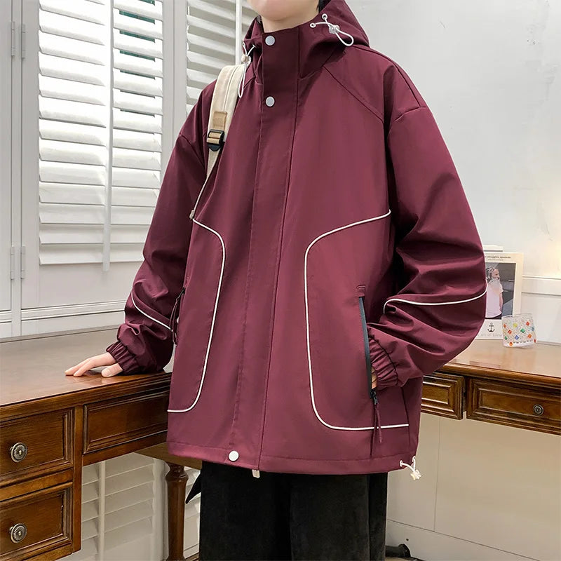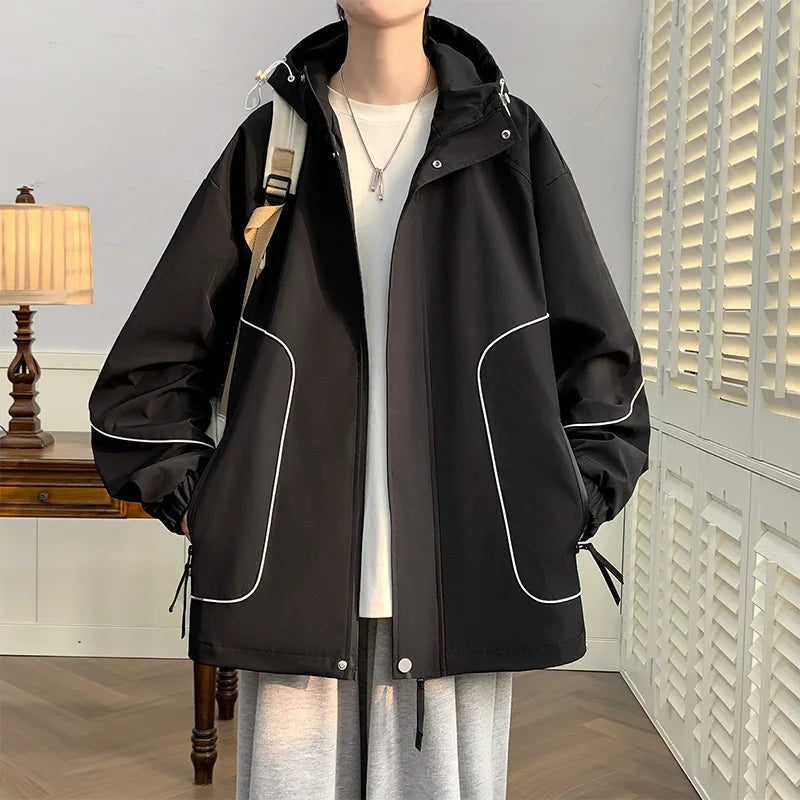 AIDASE - Men Spring Autumn Solid Color Jacket Line Sense Design Version Loose Thin Fashion Trend All-purpose Fabric Breathable Comfort