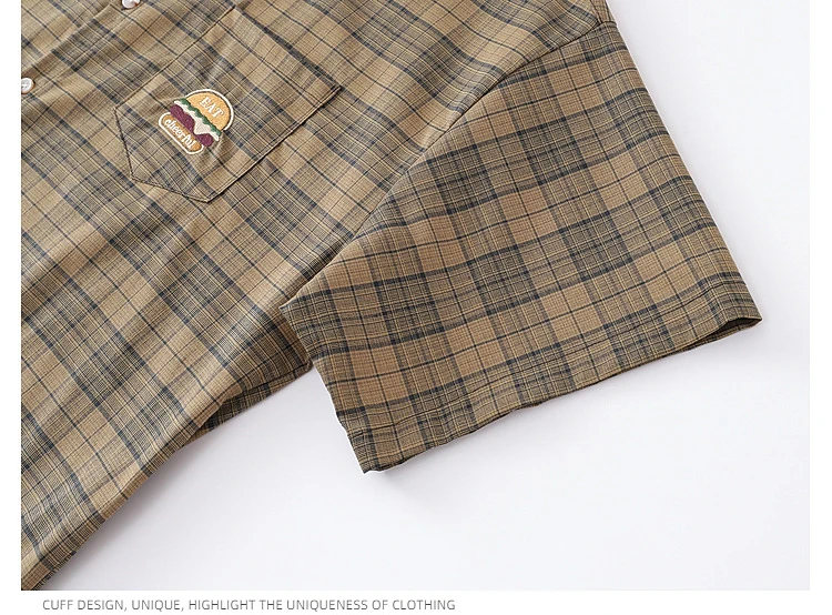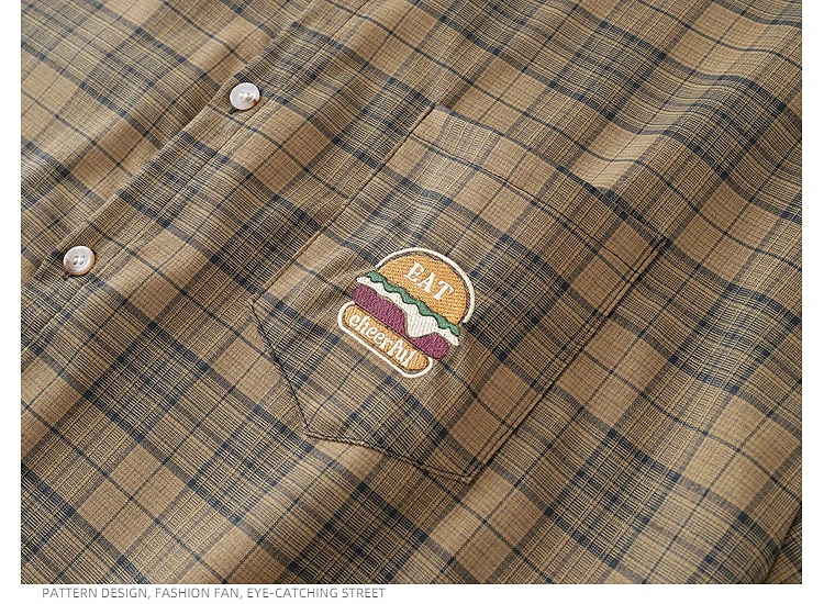Aidase Men Streetwear Harajuku Shirt Retro Burger Embroiderey Plaid Shirt Loose Hip Hop Oversize Beach Shirts Summer Short Sleeve