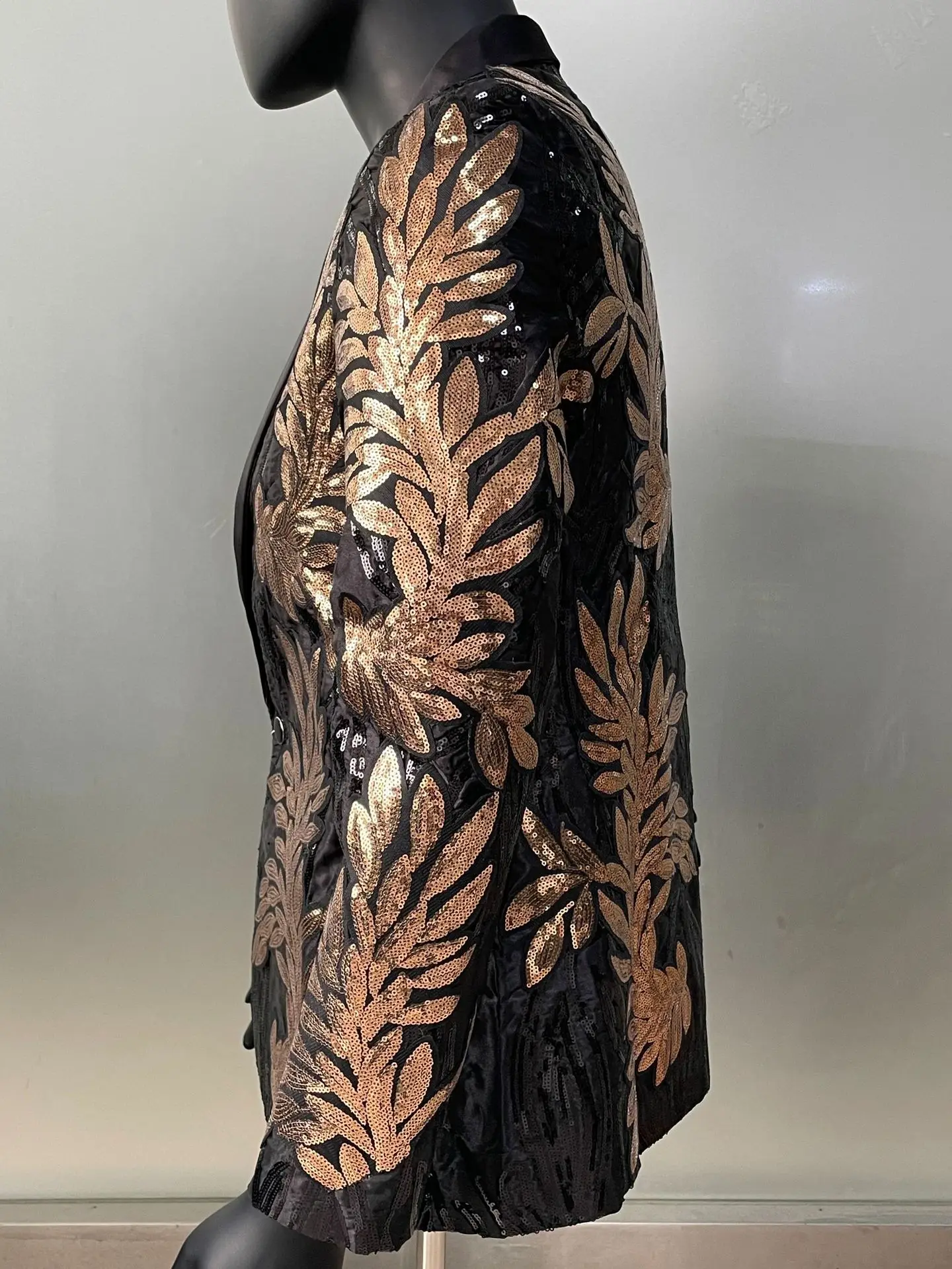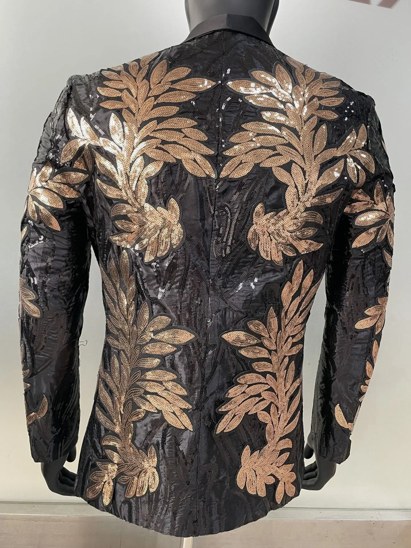 Aidase Men Suits Tailor-Made 2 Pieces High Quality Gold Sequin Applique Suit Casual Suit Jacket Singer Performance Wedding Tailored