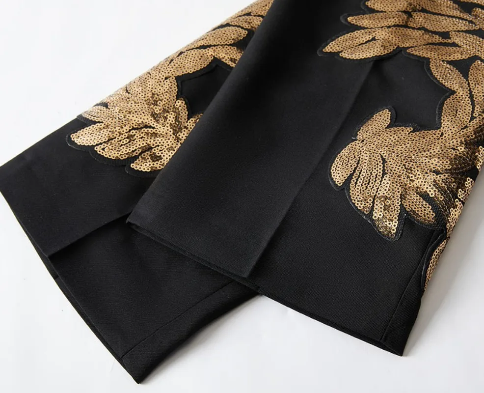 Aidase mens outfits Men Suits Tailor-Made 2 Pieces High Quality Gold Sequin Applique Suit Casual Suit Jacket Singer Performance Wedding Tailored