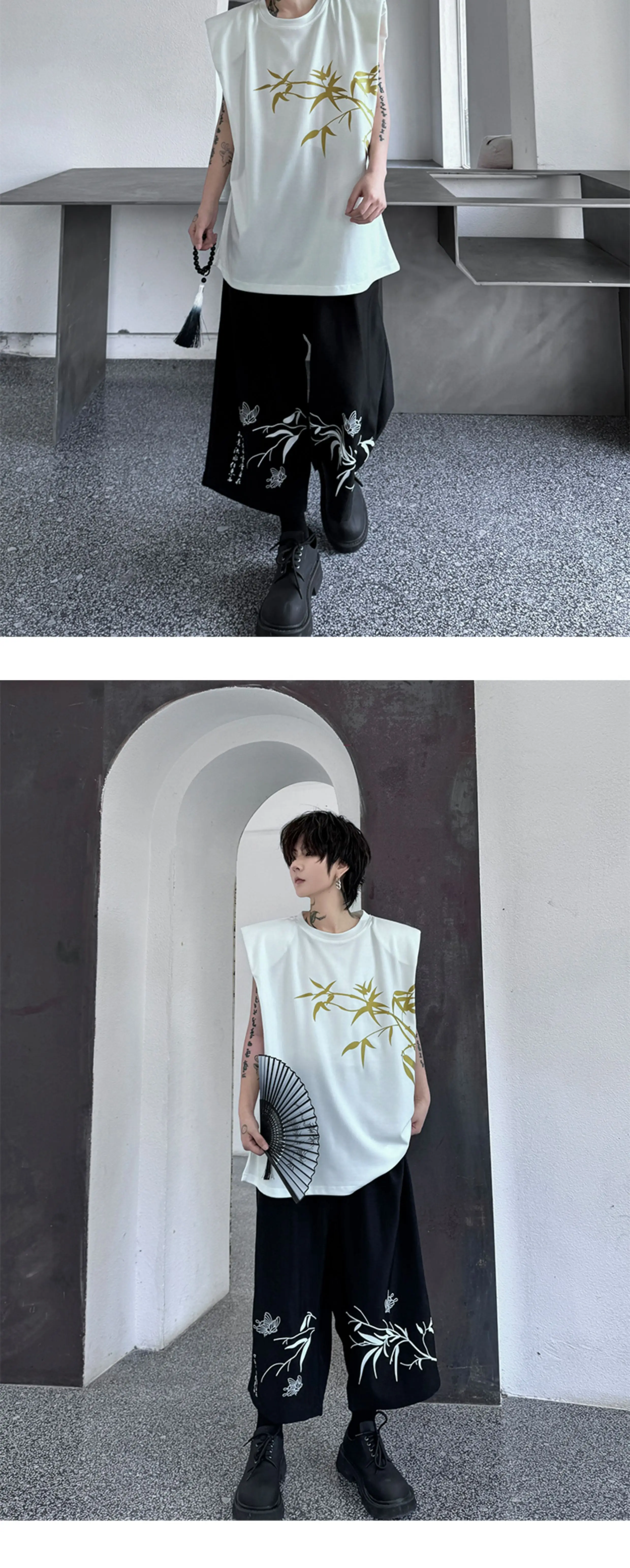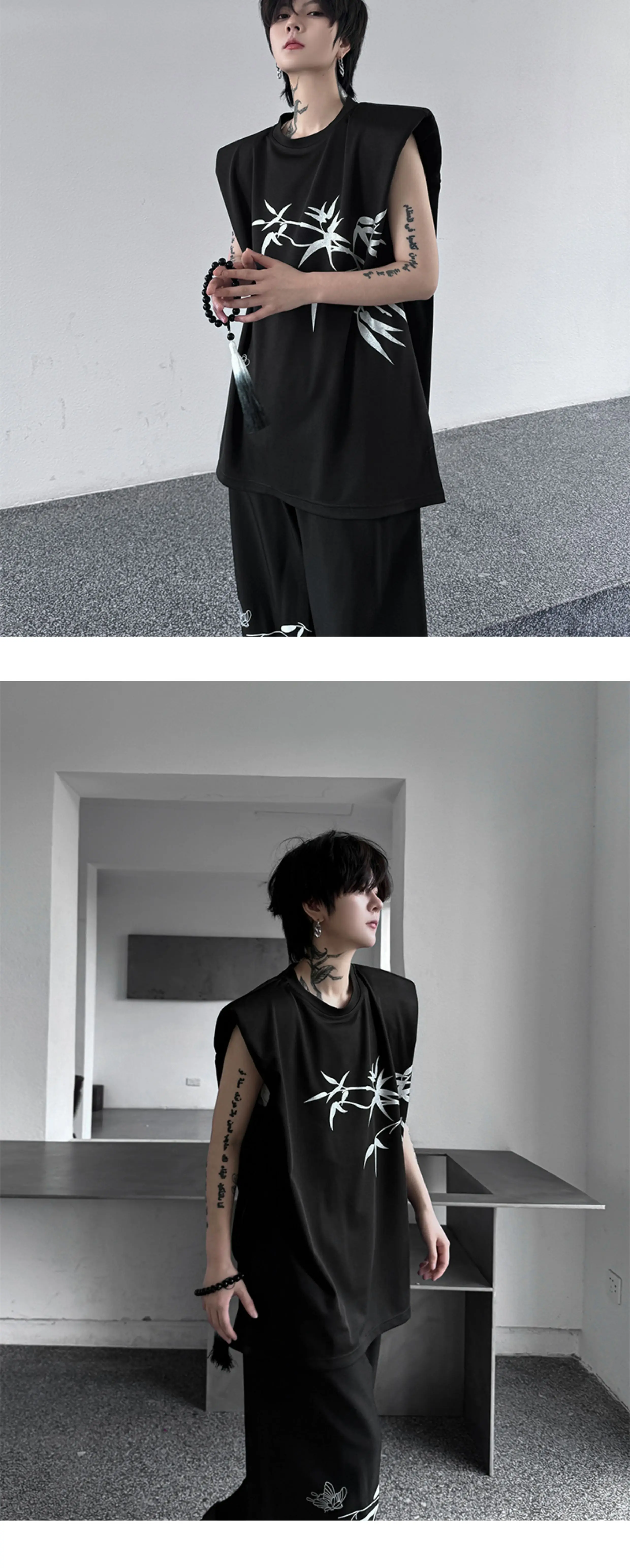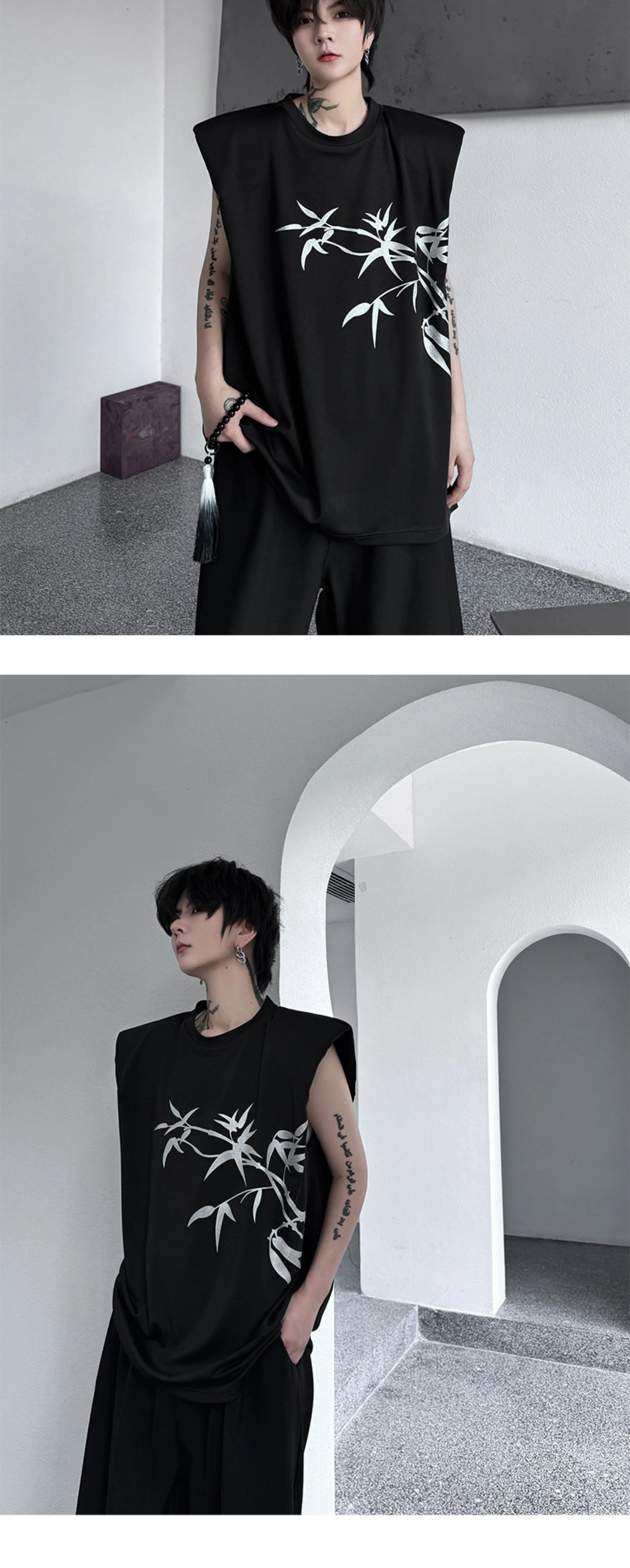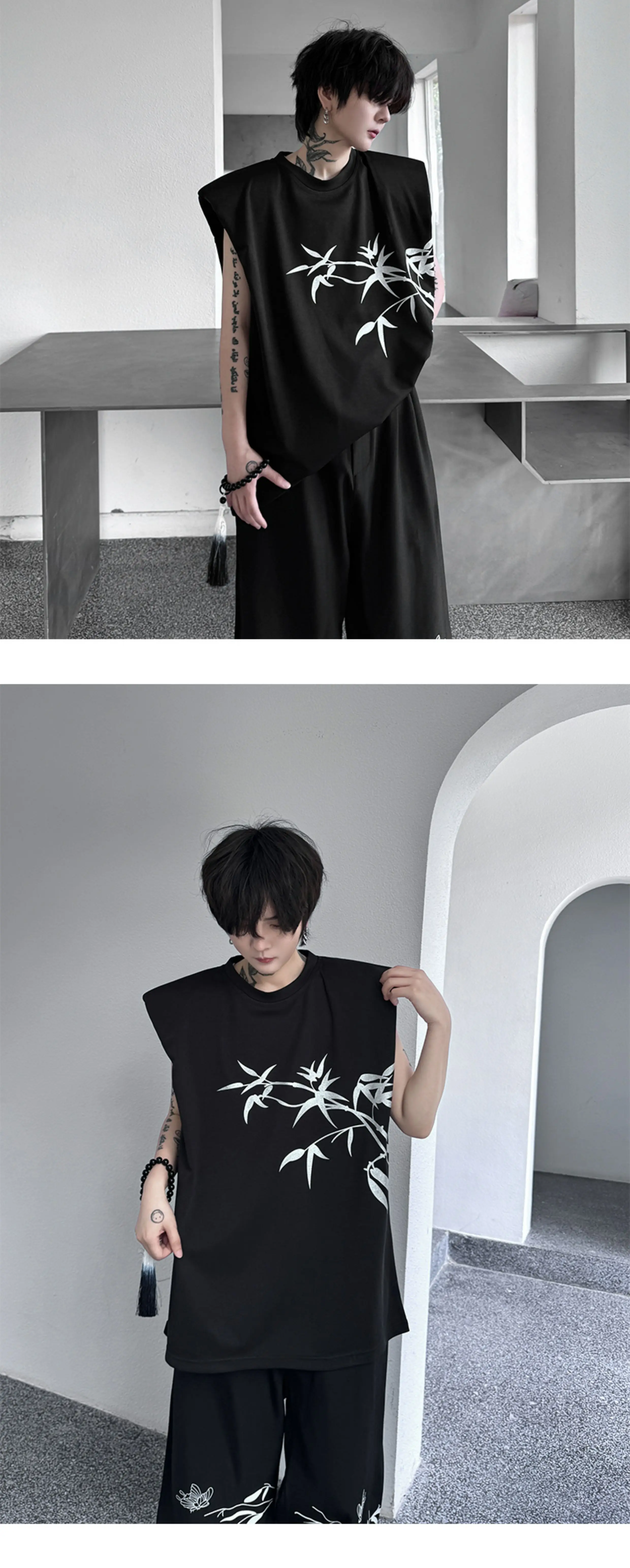 AIDASE - Men Summer Sleeveless Shoulder Pads Streetwear Hip Hop Loose Tank Tees Shirts Chinese Casual Print T-shirt Vest Women
