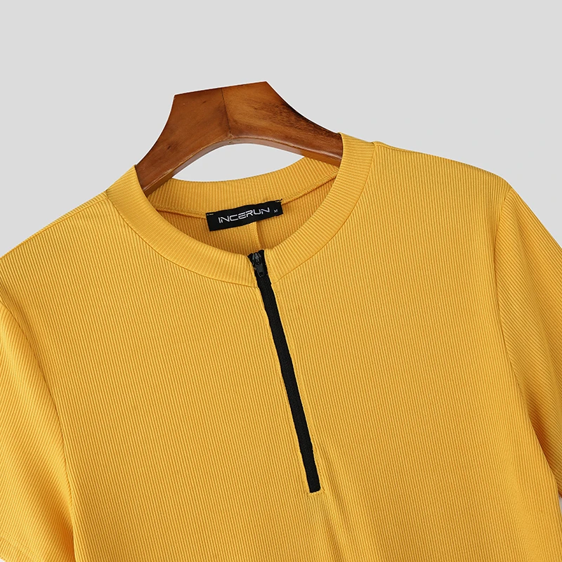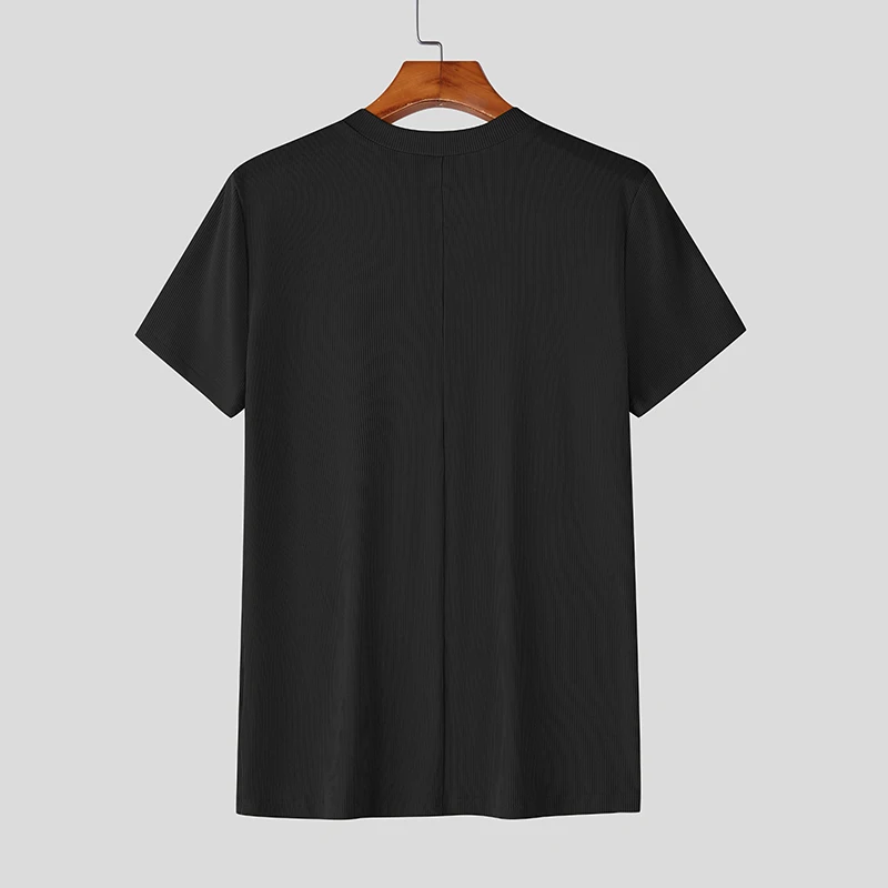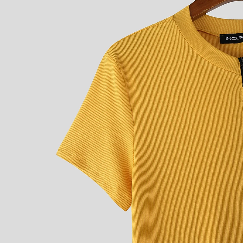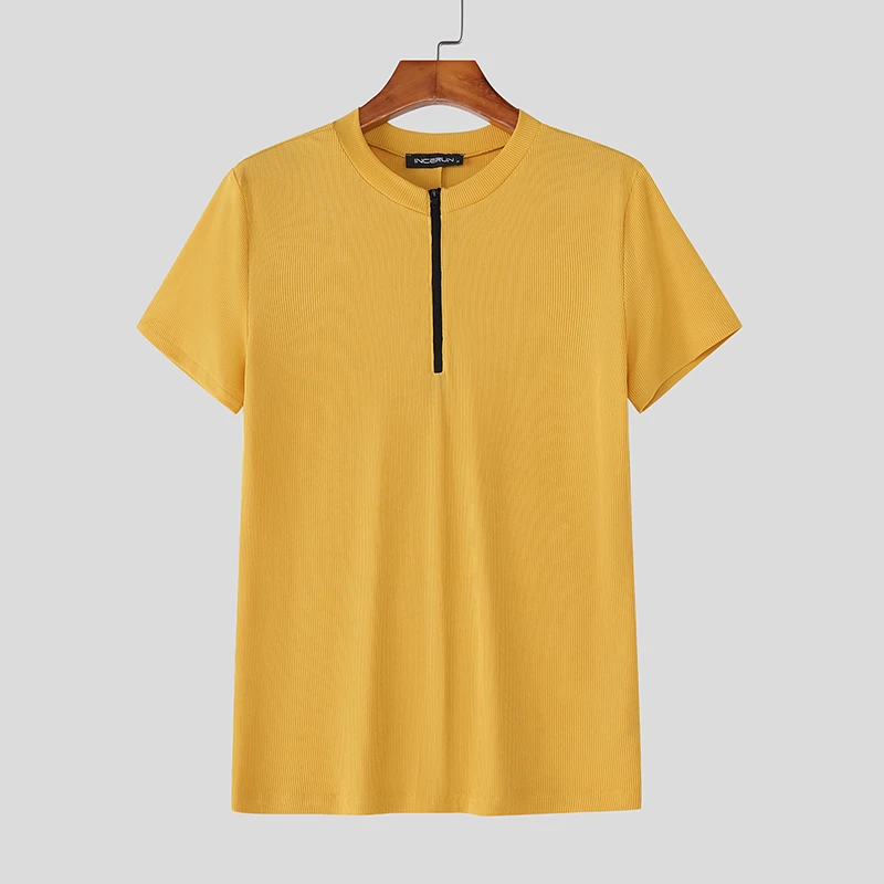 AIDASE - Men T Shirt Knitted Solid Color Zipper O-neck Short Sleeve Male Tee Tops Streetwear 2025 Fashion Casual Men Clothing