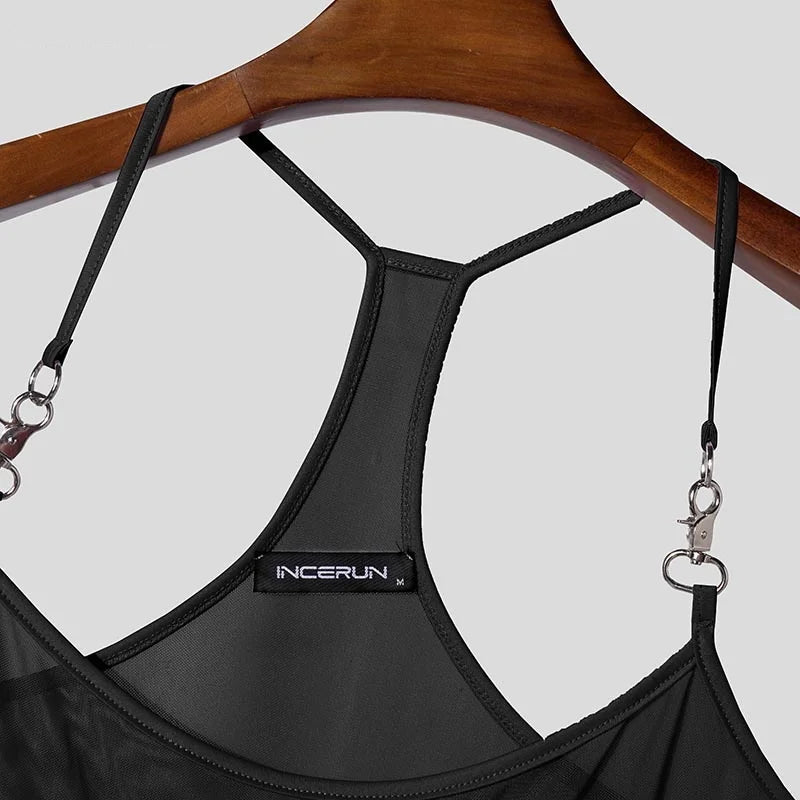 AIDASE - Men Tank Tops Mesh Transparent Solid Color Sexy Sleeveless Male Vests Summer Streetwear 2025 Fashion Men Clothing S-3XL