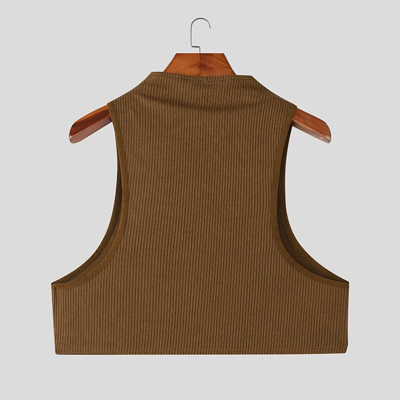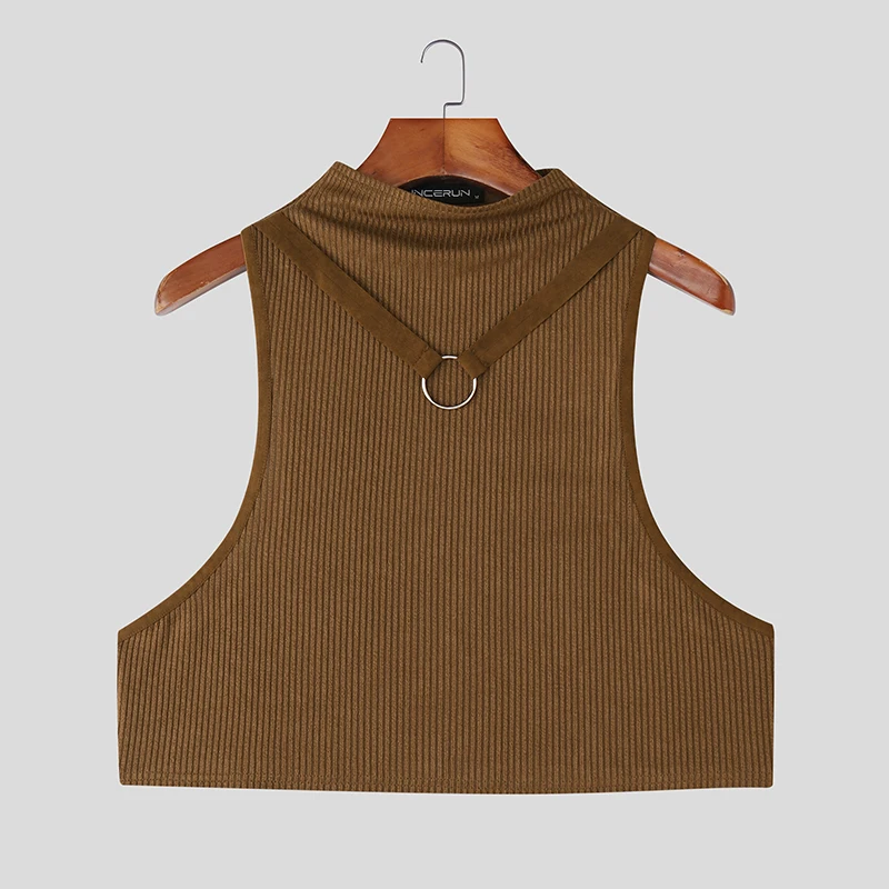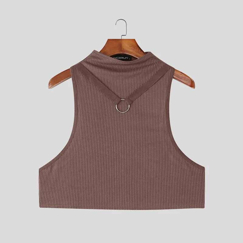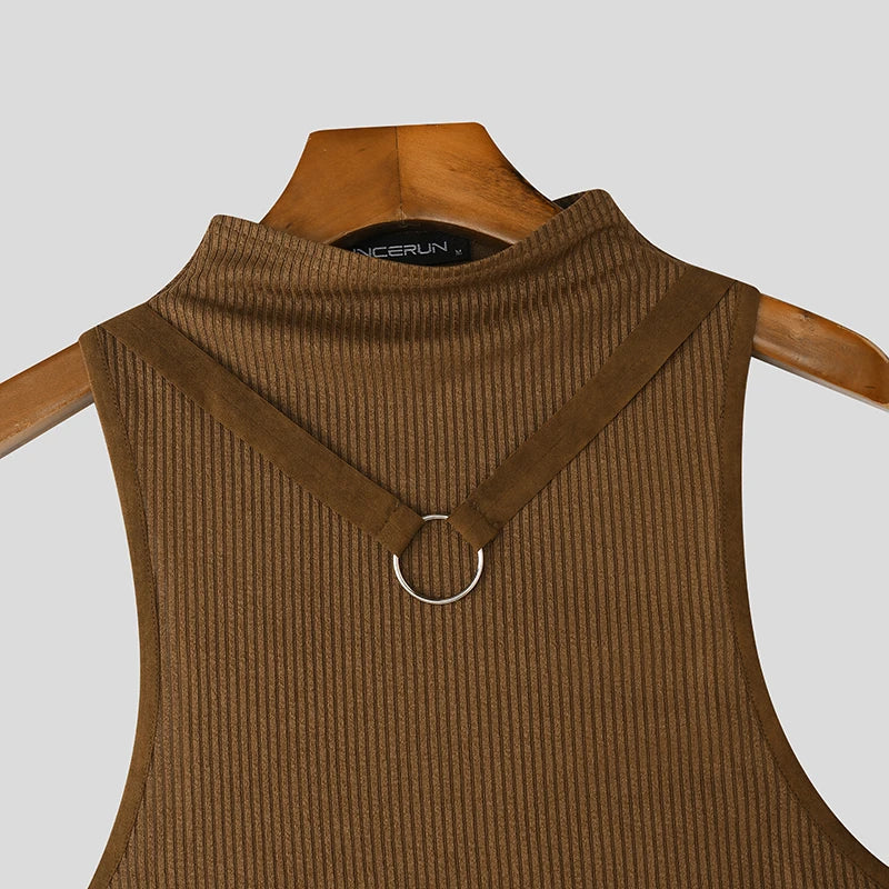 AIDASE - Men Tank Tops Solid Color Turtleneck Sleeveless Sexy Crop Tops Men Summer Streetwear Skinny 2025 Fashion Unisex Vests