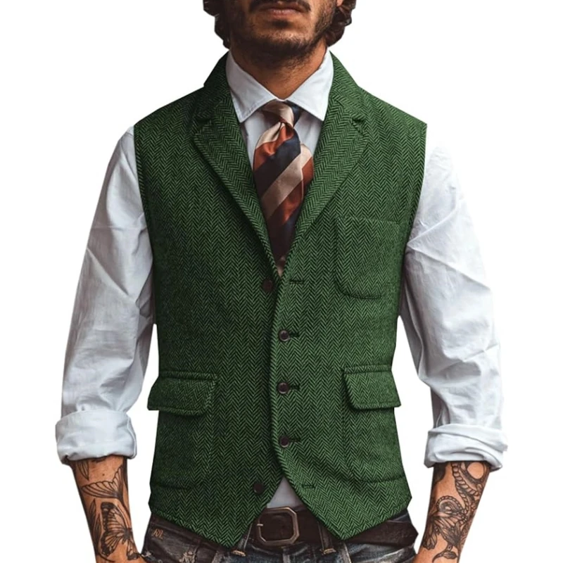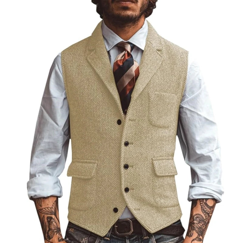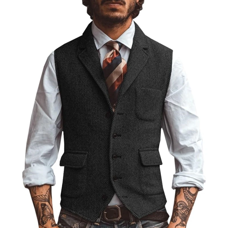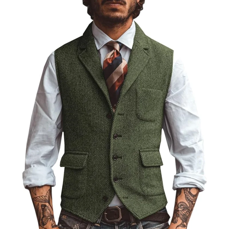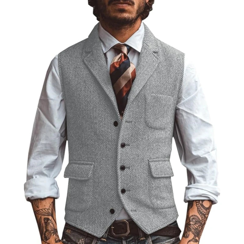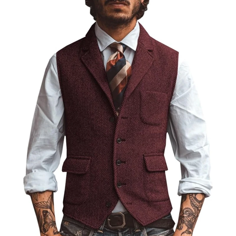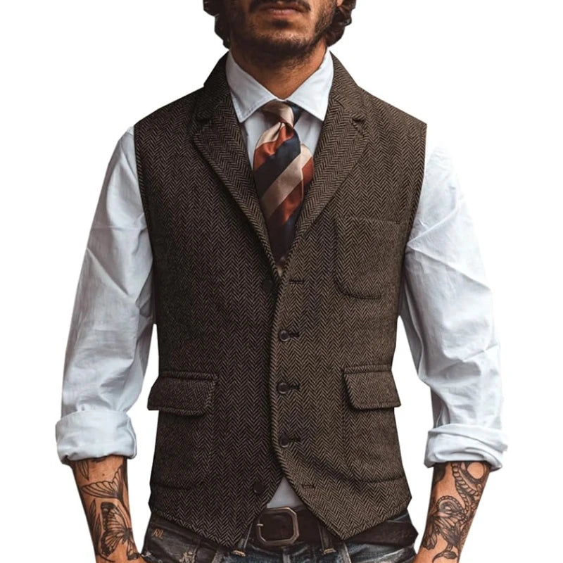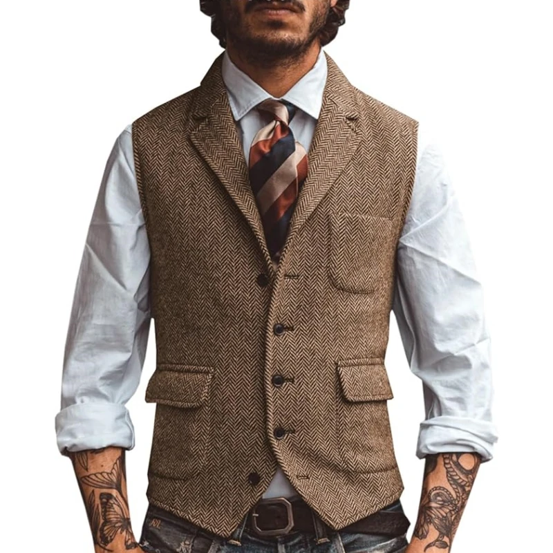 Aidase Men Vest Brown Herringbone Business Waistcoat Jacket Casual Slim For Wedding Groom Banquet Gilet Vest