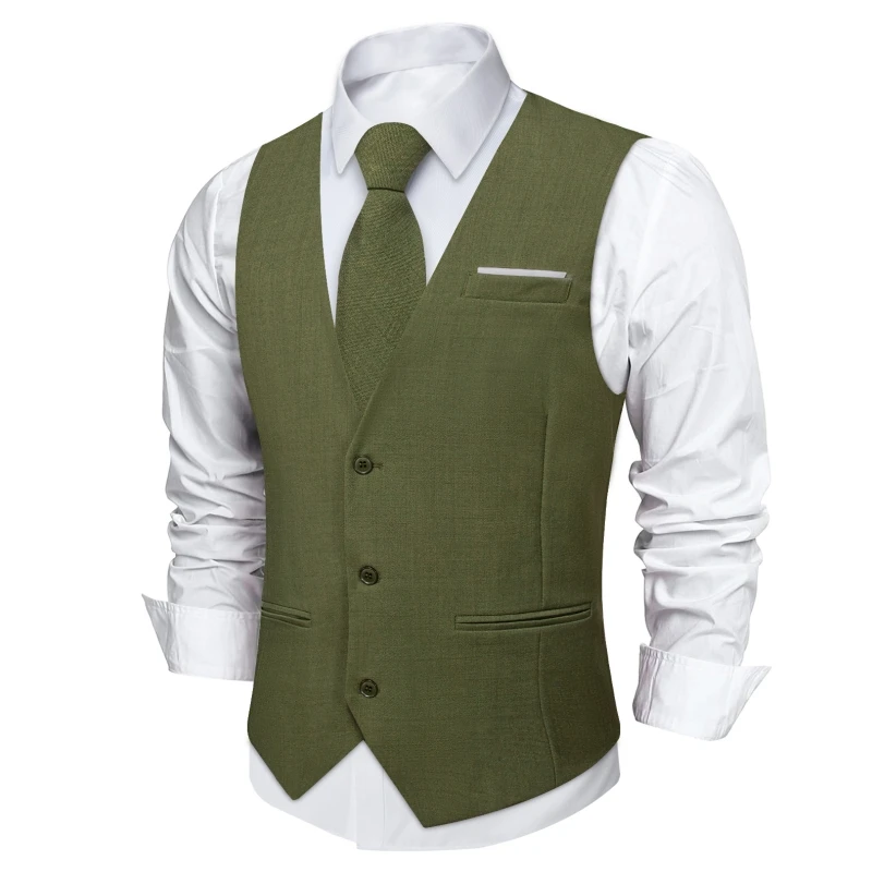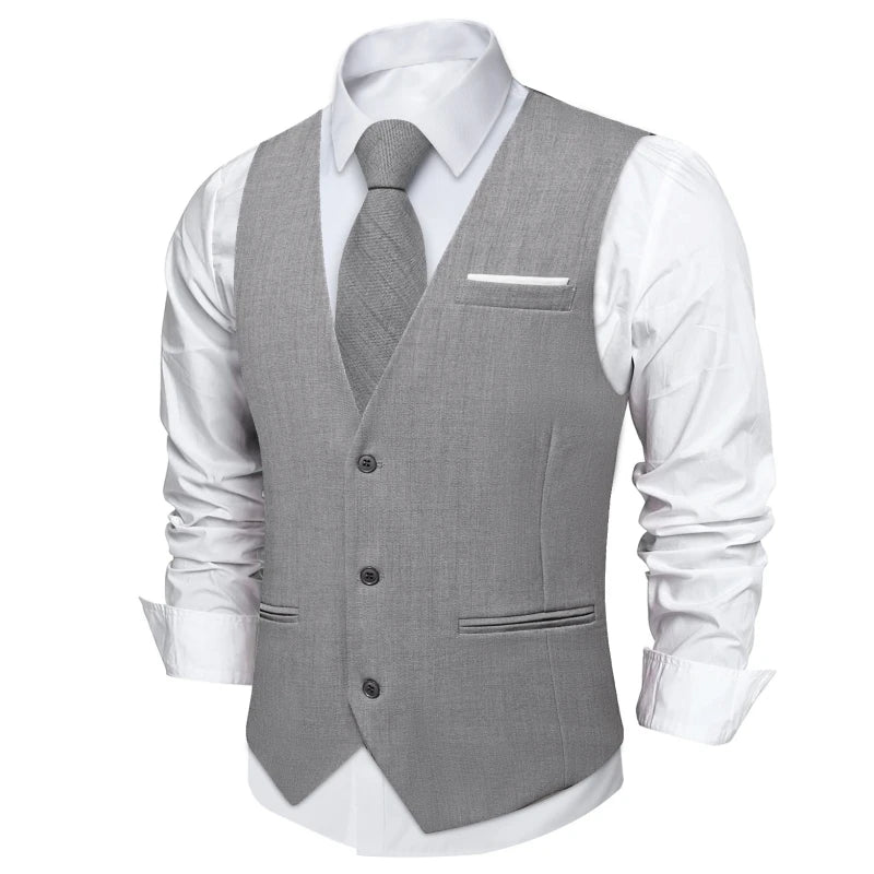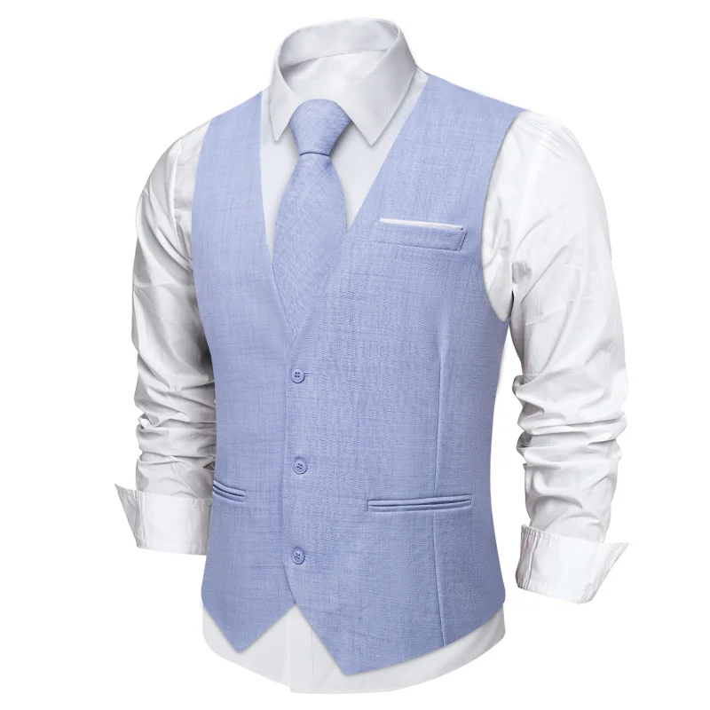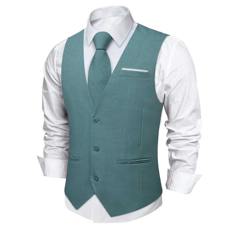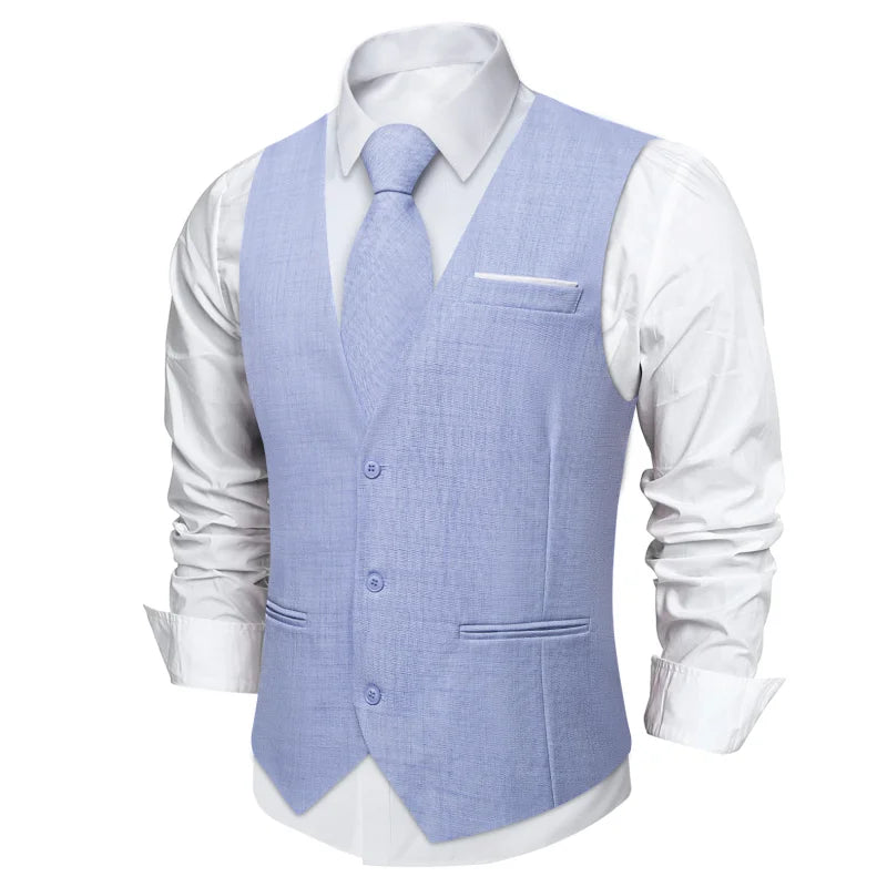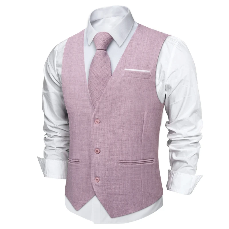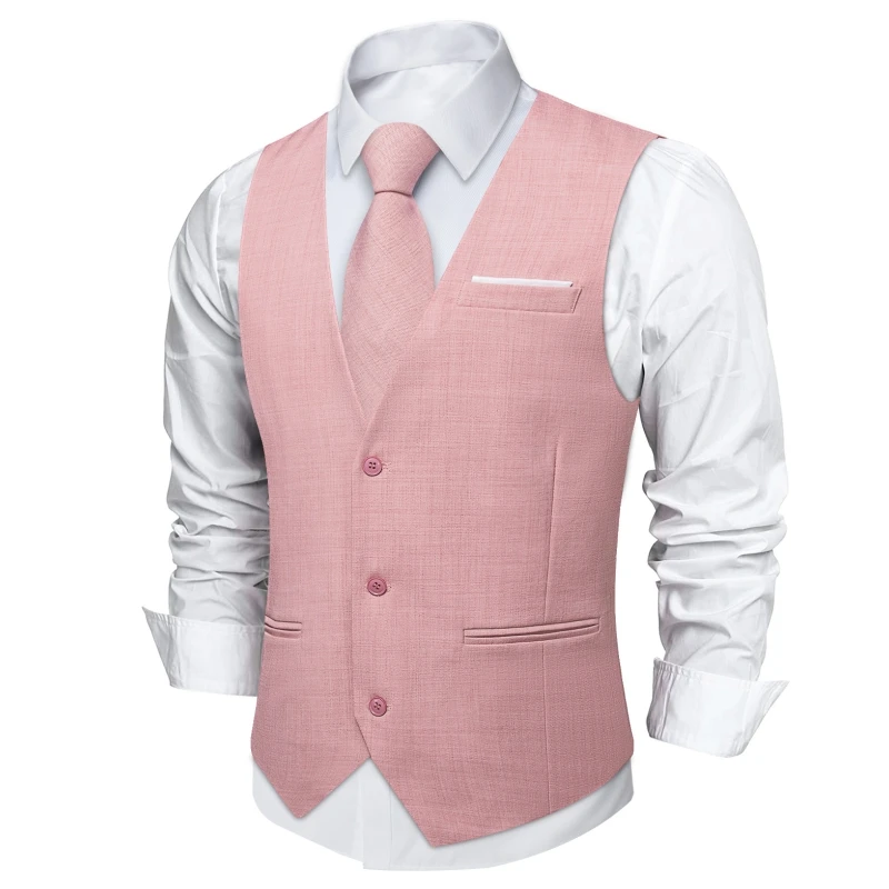 Aidase Men Vest Pink Solid Necktie Pocket Square Cufflinks Set Wedding Party Business Men's Waistcoat